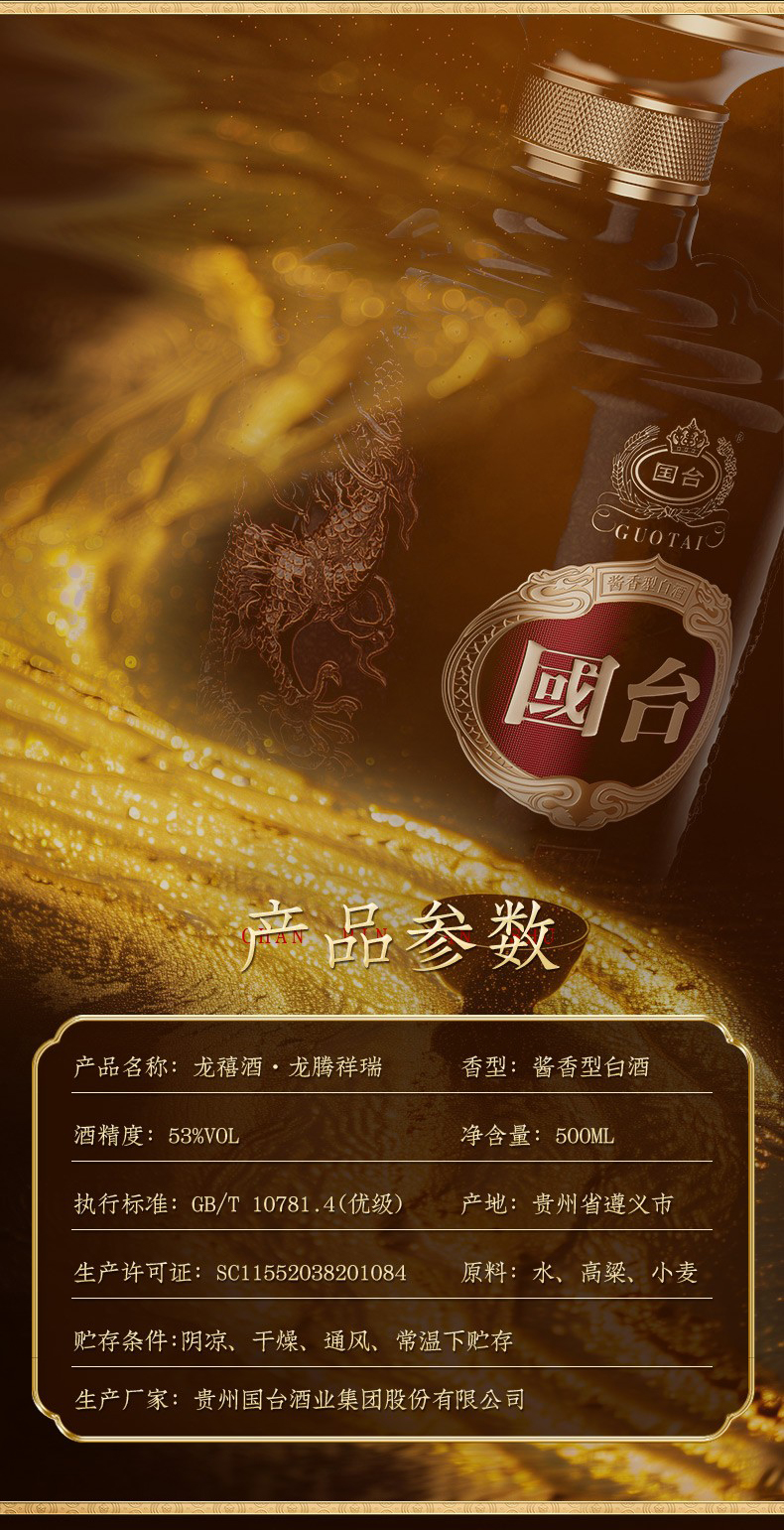 【预售】53度国台龙禧酒.龙腾祥瑞酱香型白酒500ML*6整箱装