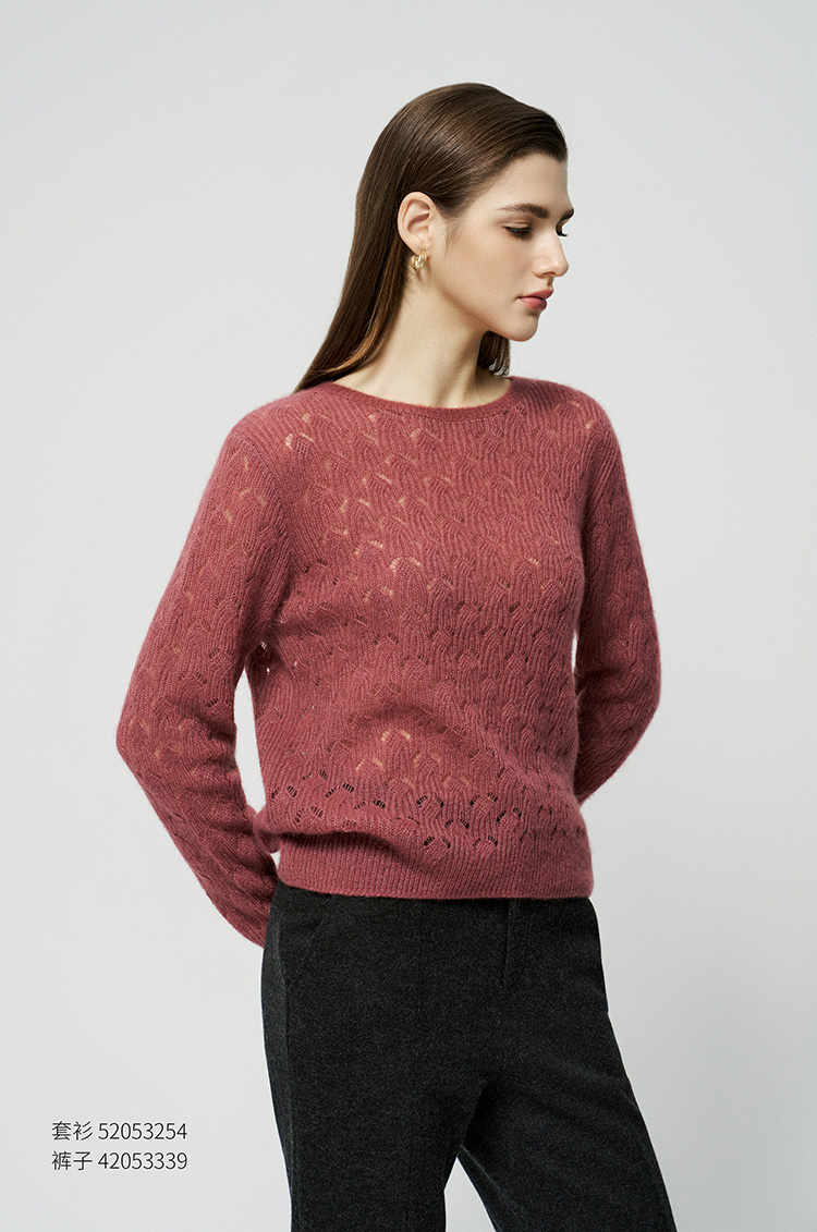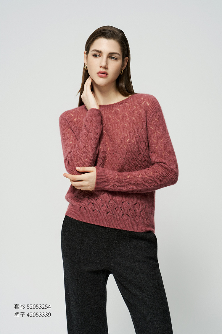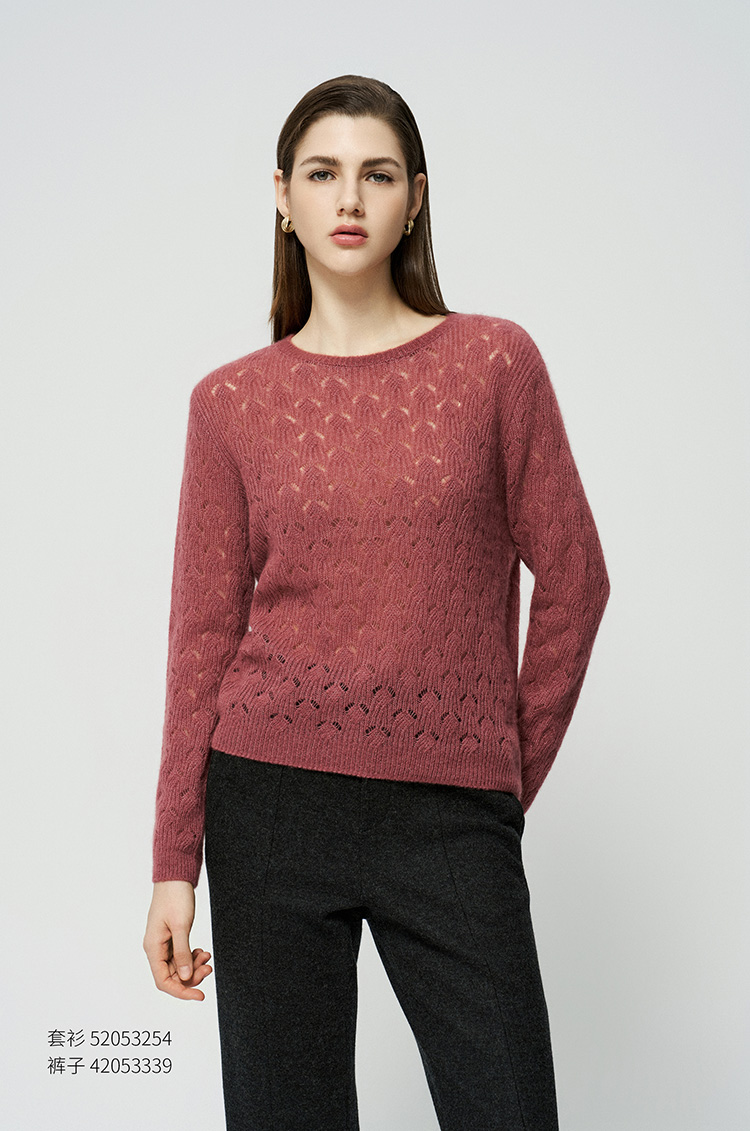 【羊绒+桑蚕丝镂空套衫】羊绒世家25年秋冬新品女士圆领羊绒镂空针织套衫