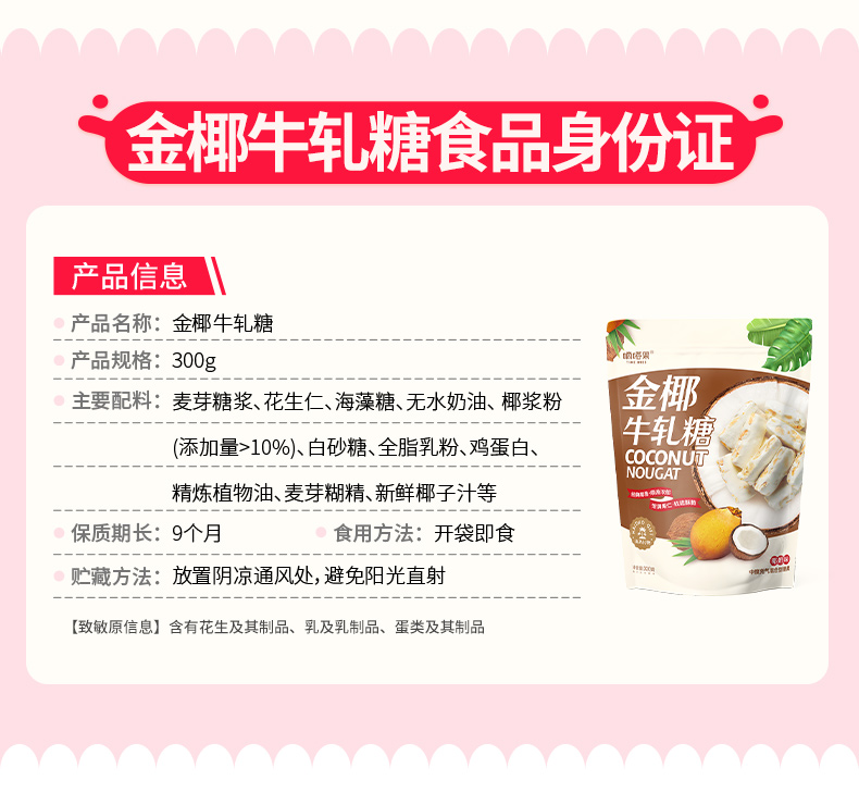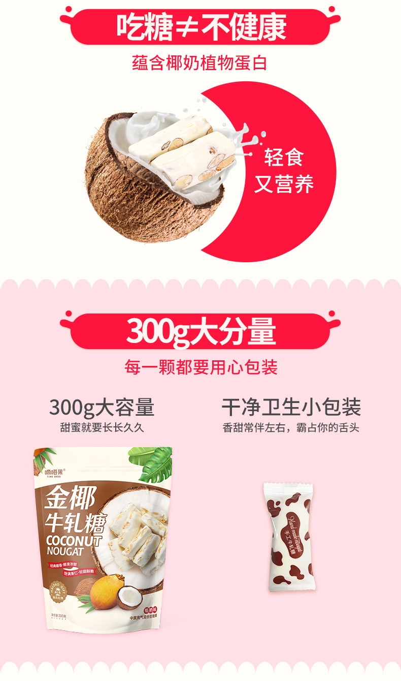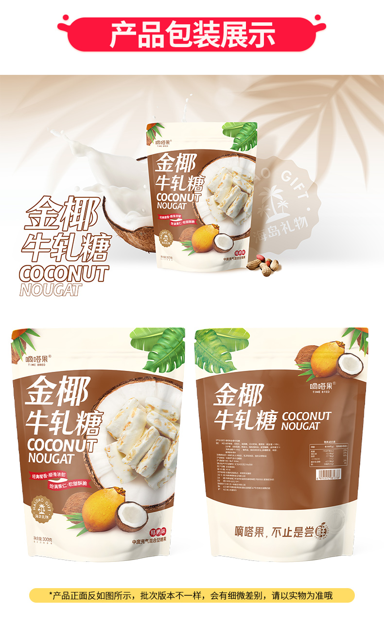 嘀嗒果金椰牛轧糖300g正宗花生牛轧糖果零食喜糖