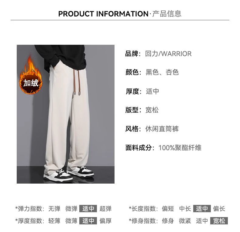 回力卫裤男款加绒秋冬季新款宽松直筒阔腿休闲裤垂感运动长裤子男