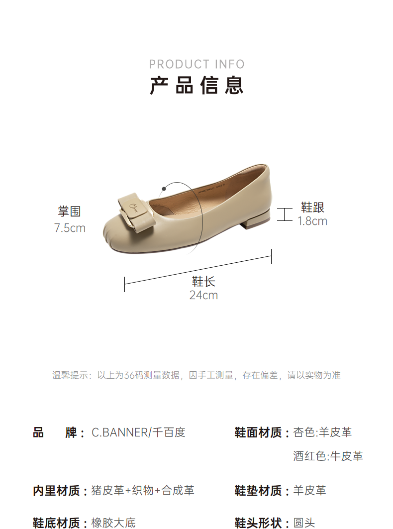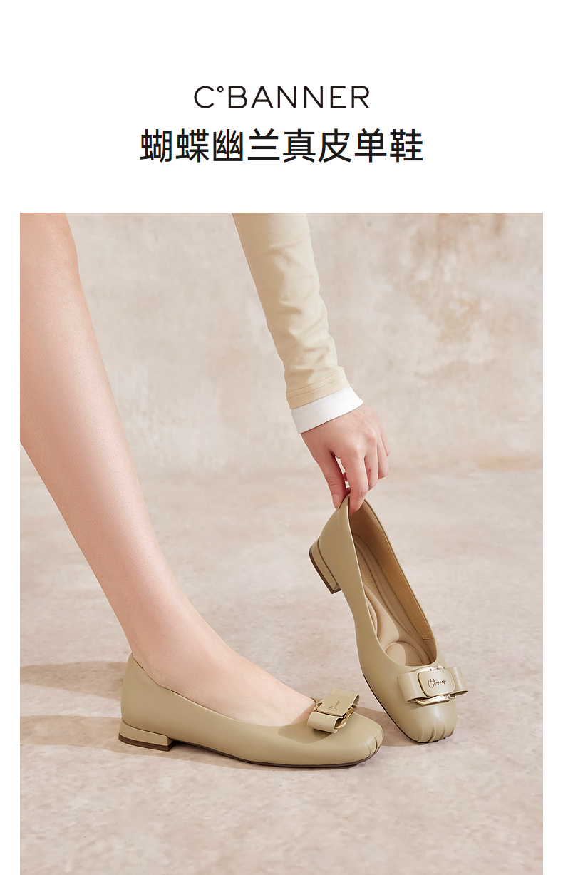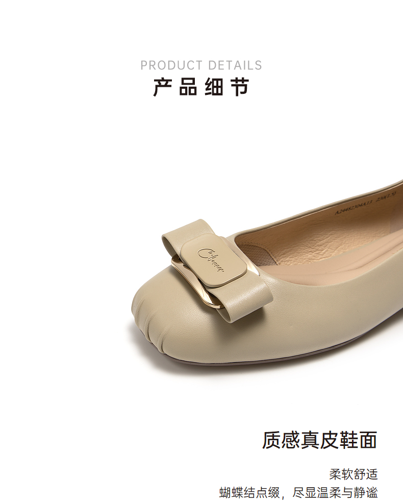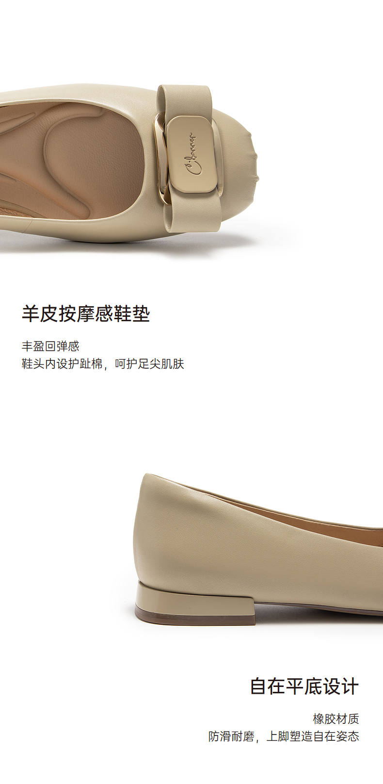 【静音系列】千百度小香风羊皮浅口单鞋女秋季平底晚晚鞋A24482304