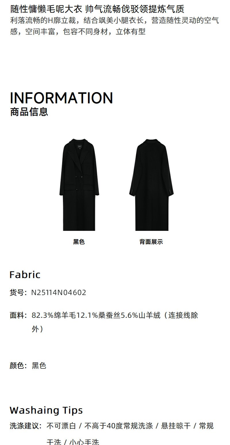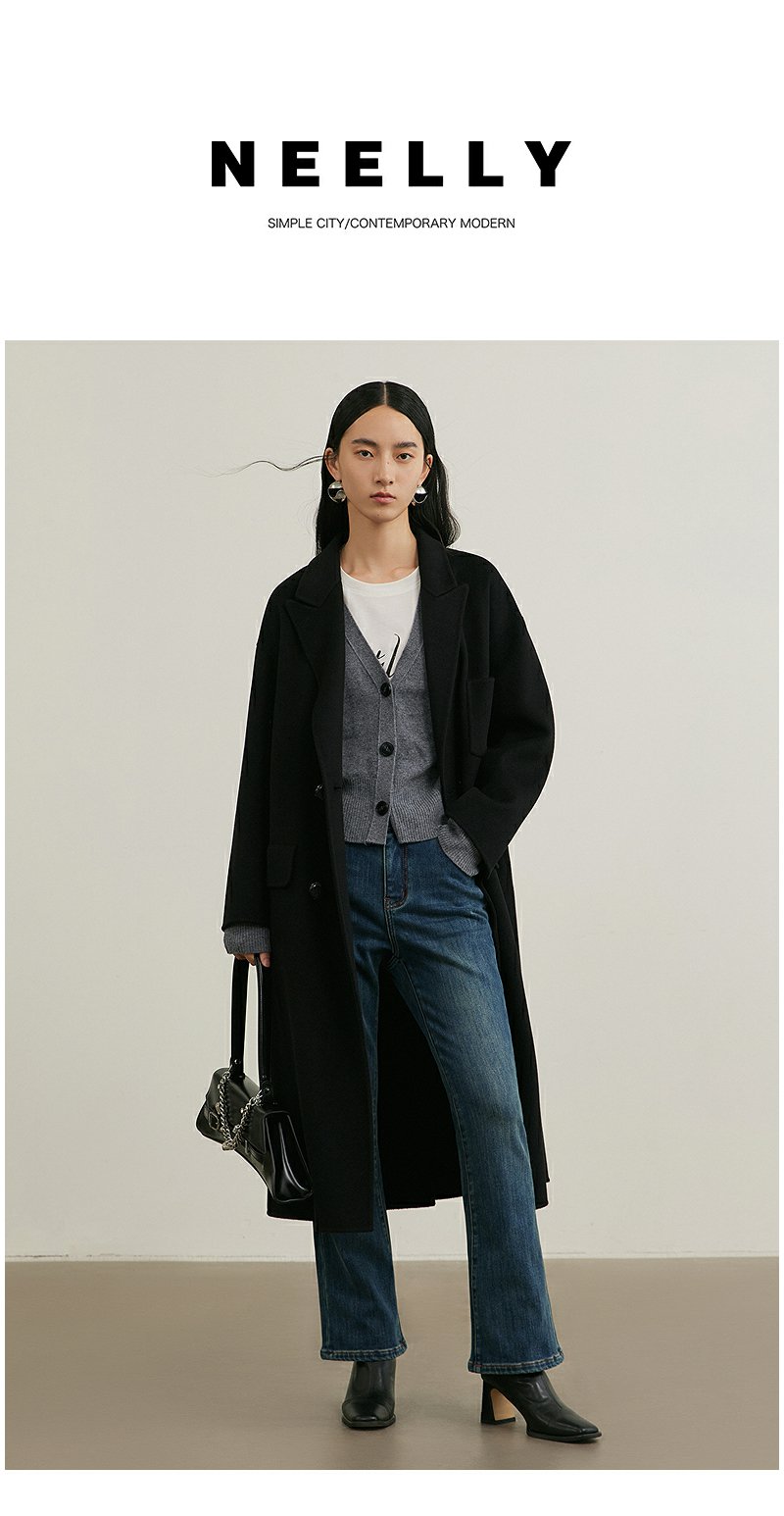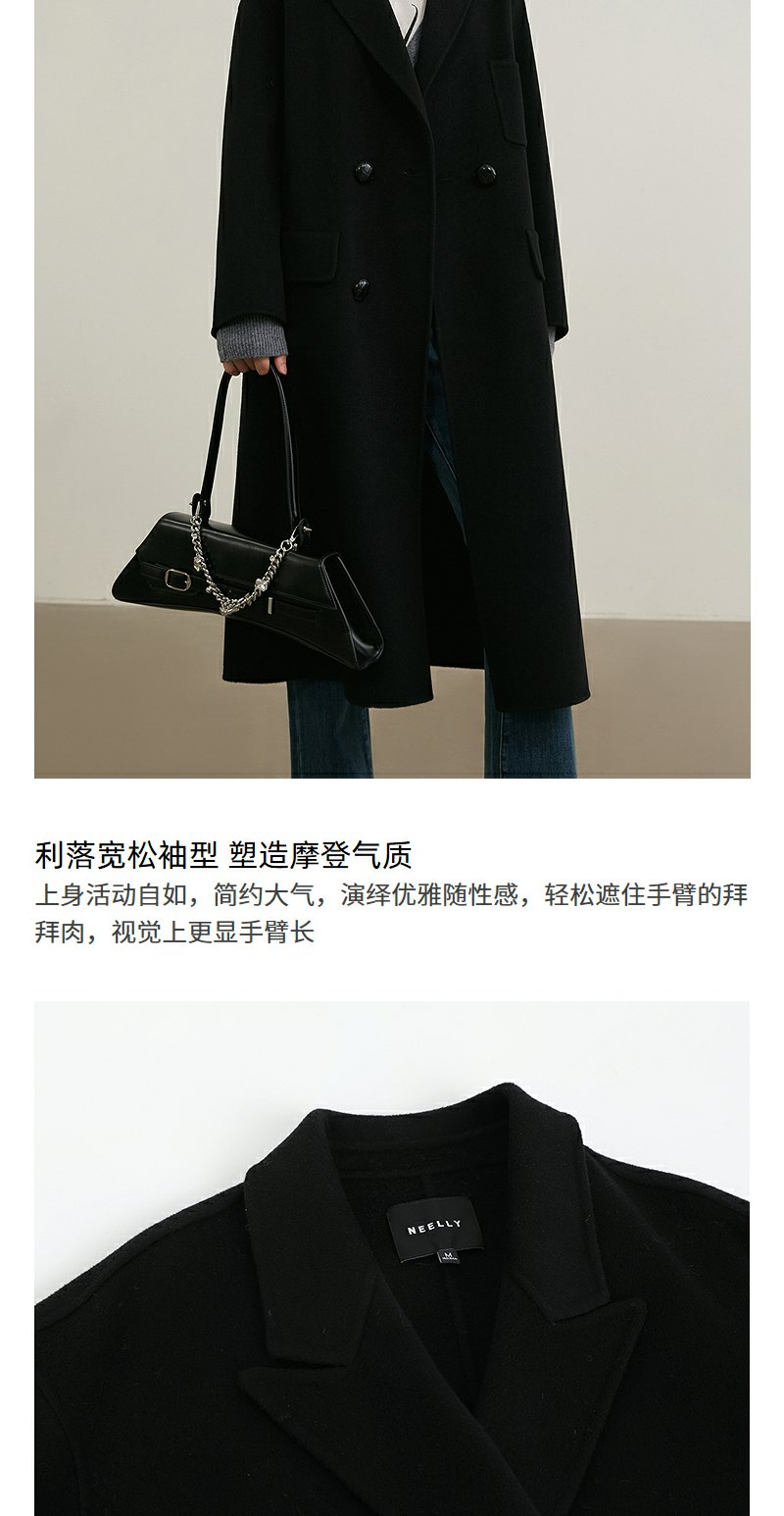 NEELLY纳俪商场同款冬新款绵羊毛长款气质简约大衣女随性慵懒外套N25114N04602