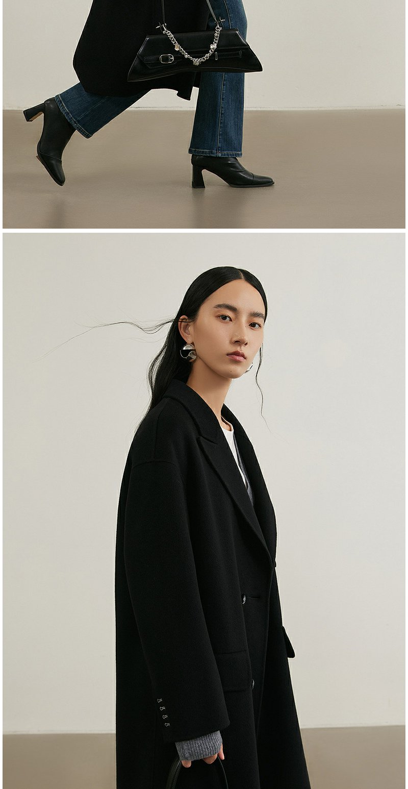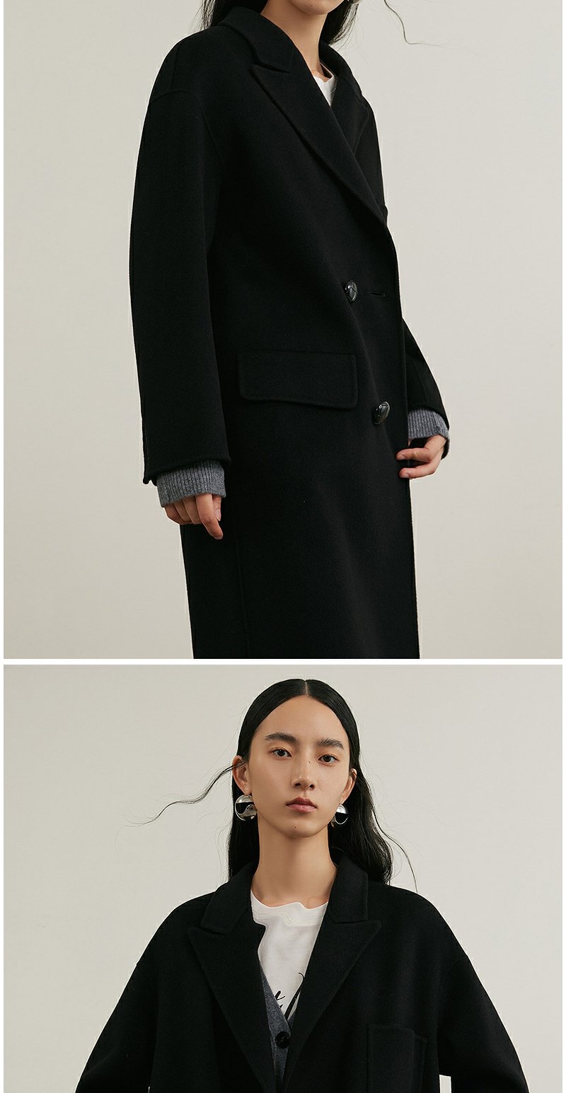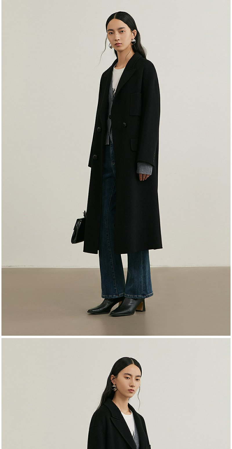 NEELLY纳俪商场同款冬新款绵羊毛长款气质简约大衣女随性慵懒外套N25114N04602