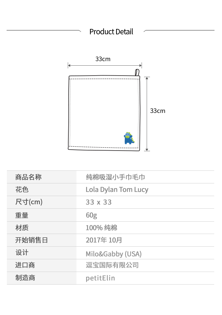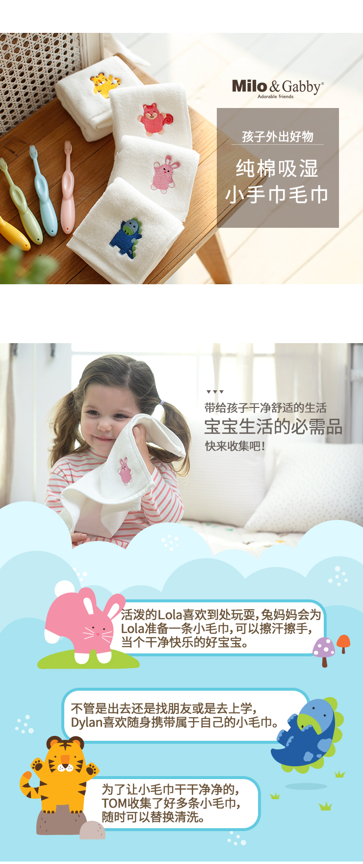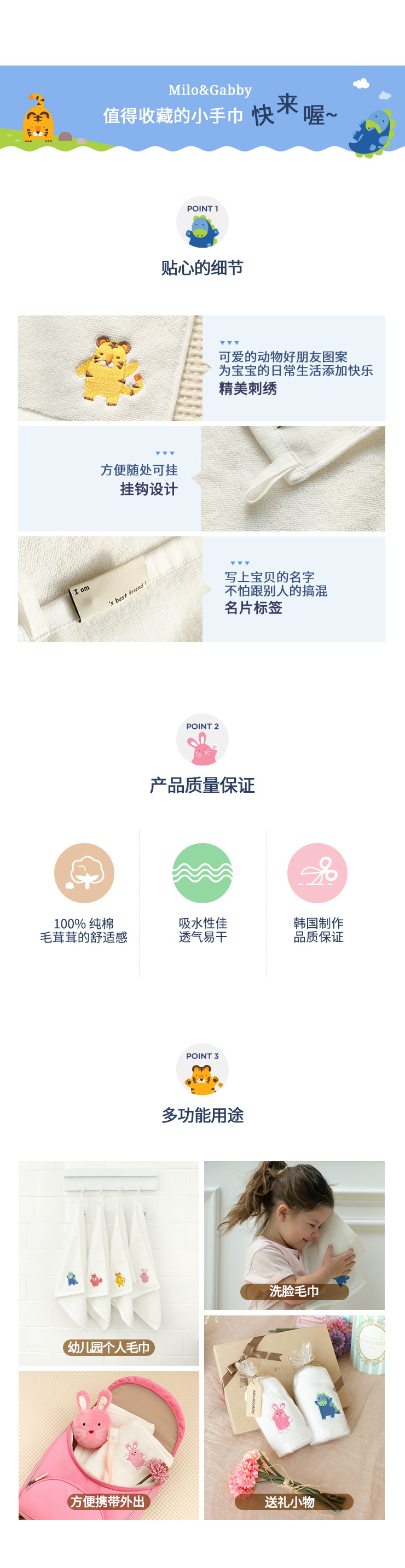 韩国Milo&Gabby儿童毛巾纯棉卡通动物小毛巾
