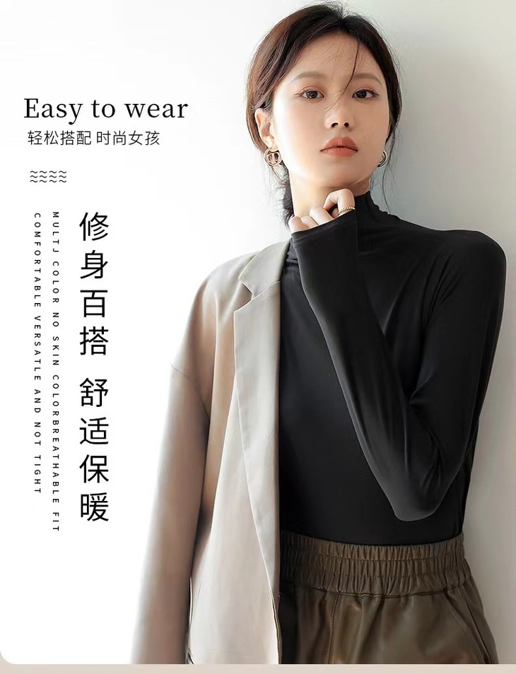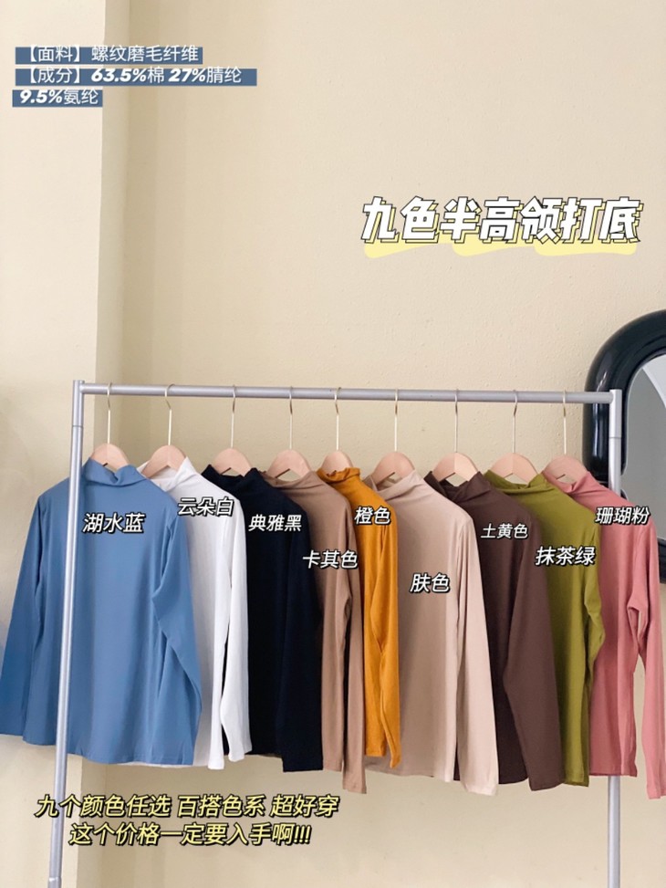 【3件59元!】女款打底衫半高领长袖大方得体 舒服显瘦 亲肤舒适 早秋穿搭 多色可选 舒适保暖 秋冬打底 时尚百搭