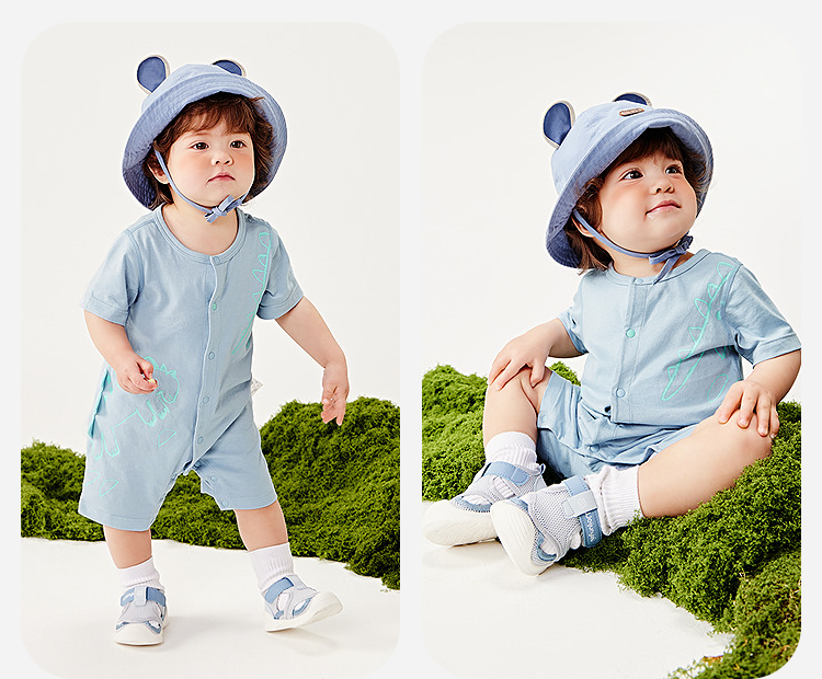 迷你巴拉恐龙连体衣外出爬服纯棉男女童宝宝不易变形萌趣夏季