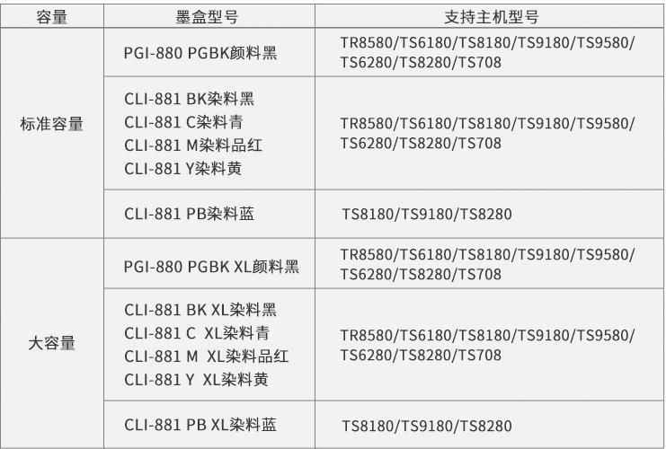 适用佳能TS9580 TS708 TS6280 TS708t TS8280打印机墨盒PGI-880