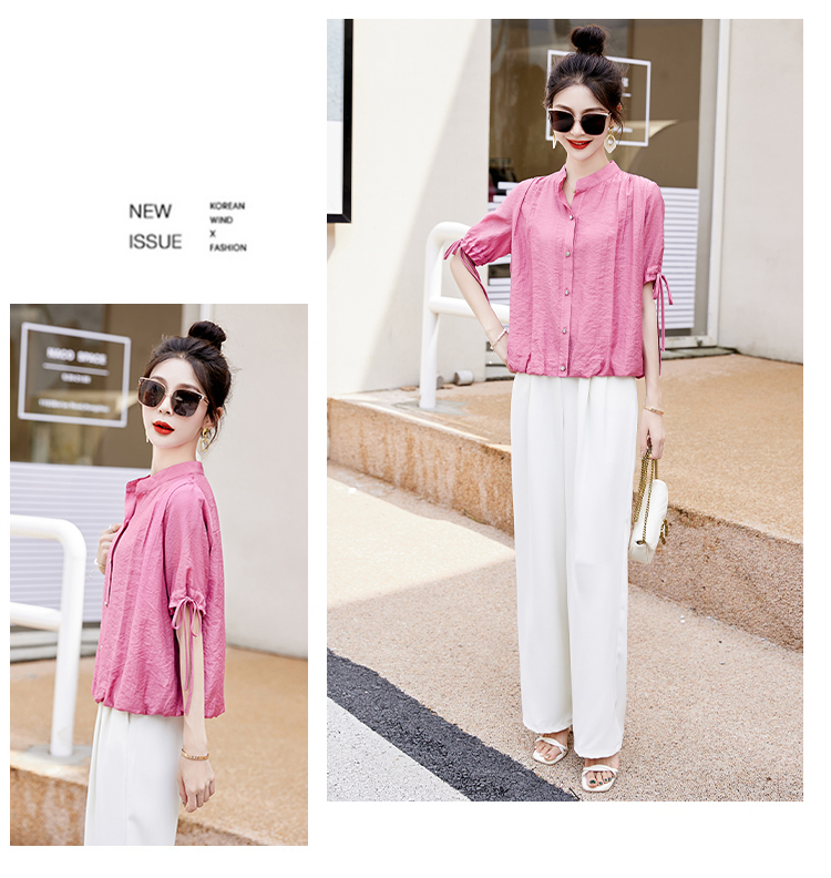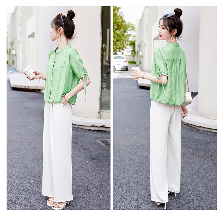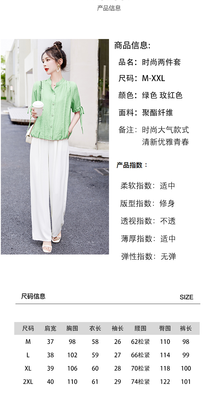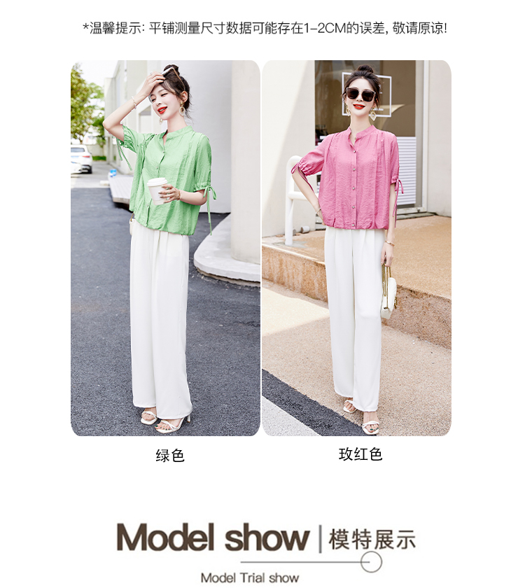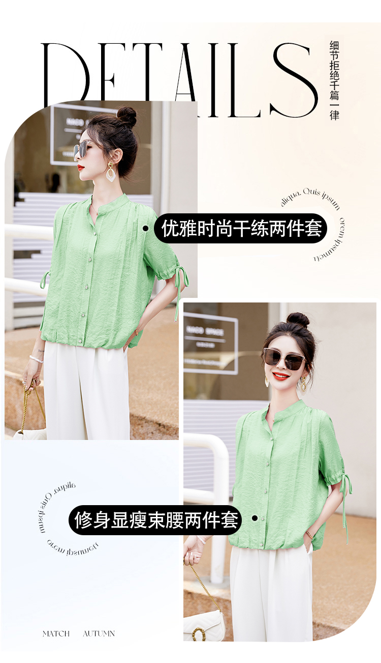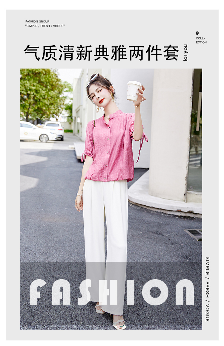 气质清新,短袖上衣阔腿裤两件套裤HR-AQHUI23050-1