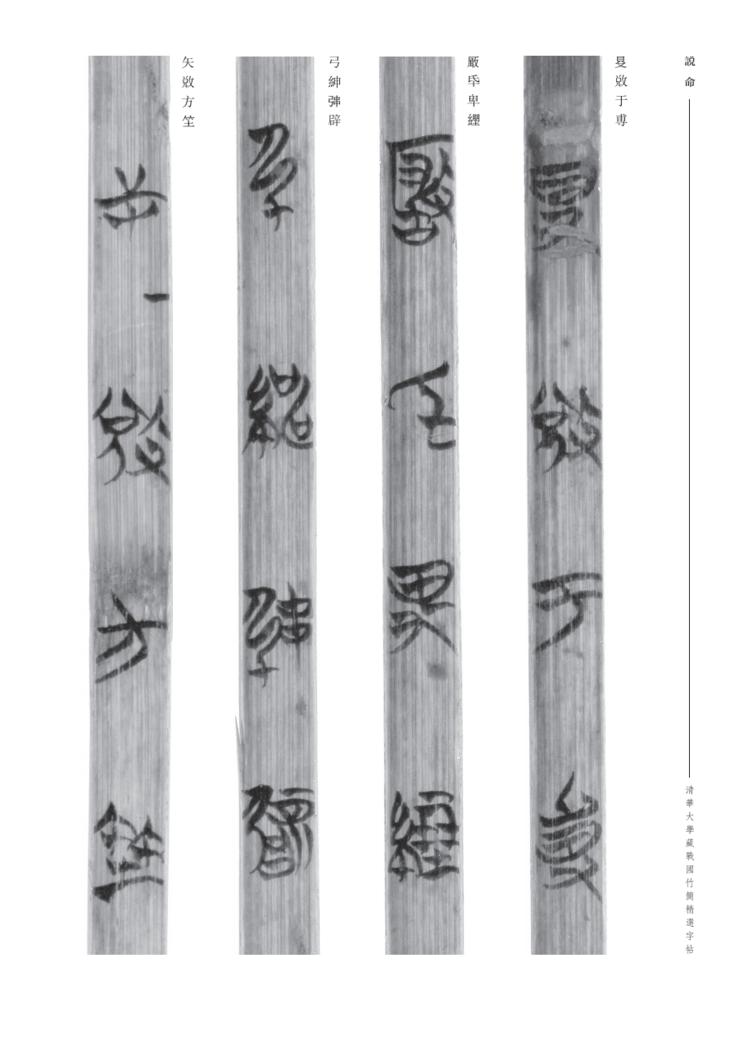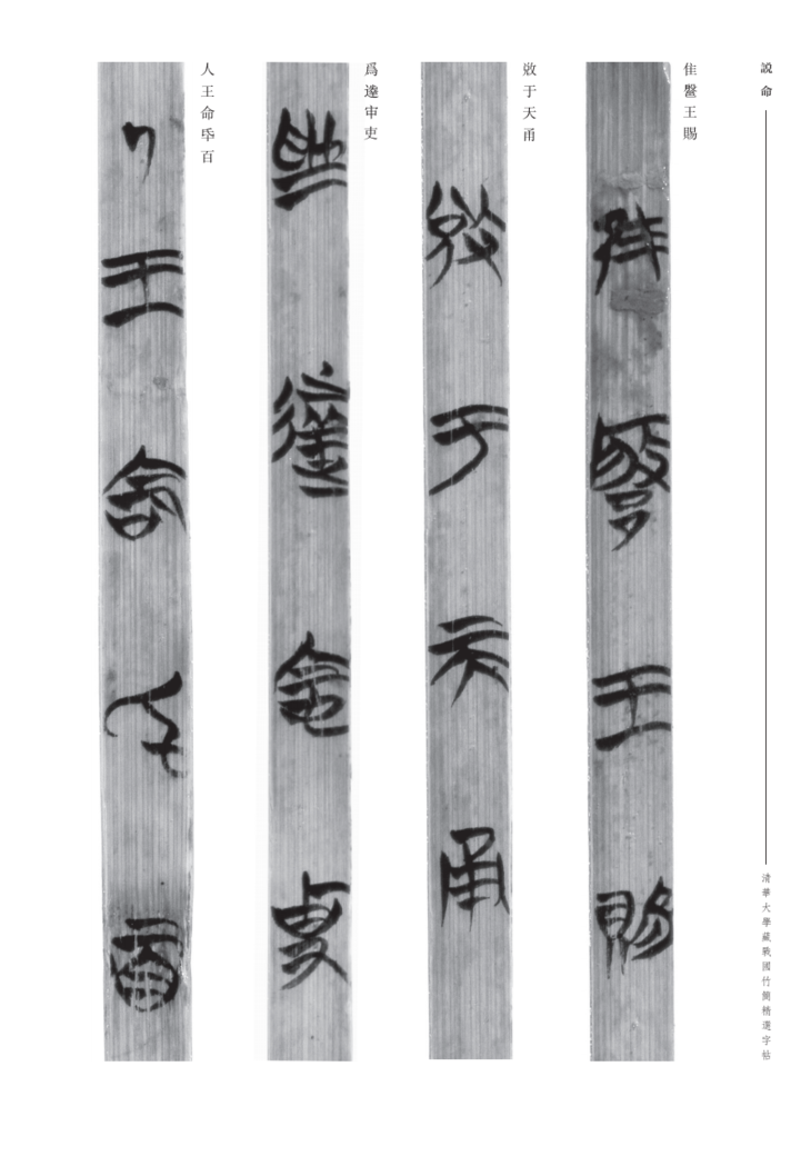 清华简《说命》是失传了近两千年的尚书古本,其字体为战国时期的楚国文字。本篇书手在清华简中抄写了多篇“诗”“书”类的文献,其书风工整而不失优雅,自如而不失规矩,是清华简书法整体面貌的典型代表。