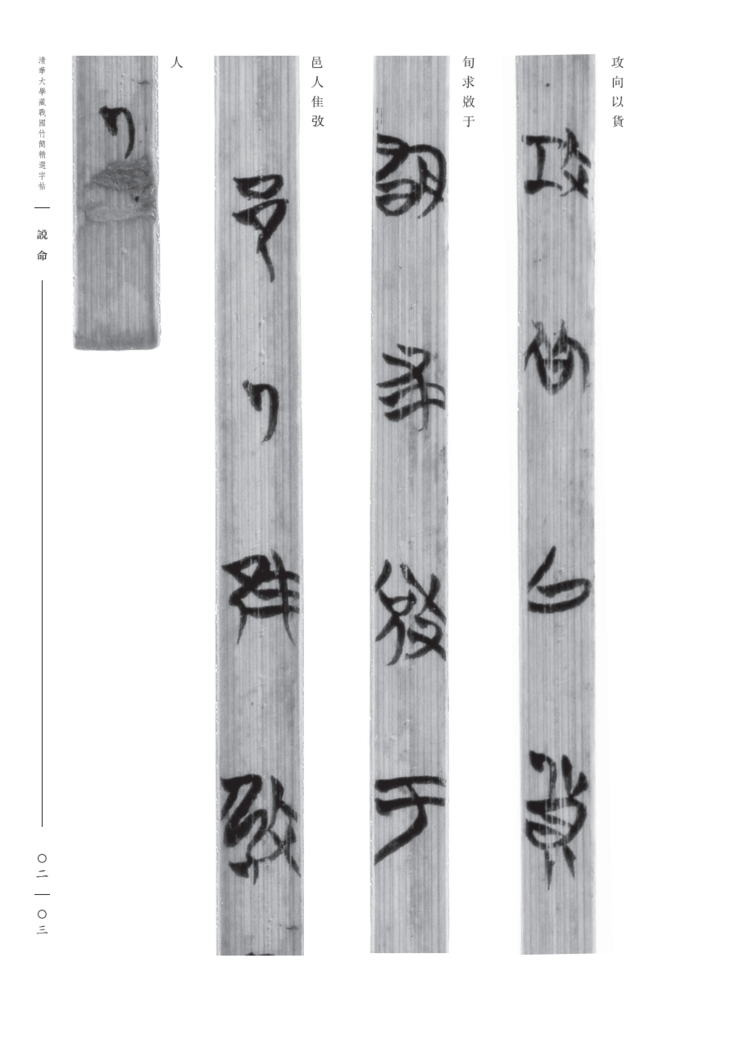 《清华大学藏战国竹简精选字帖》辑选清华简中内容较为完整的篇章,将简依次放大编排(附释文),并有简要介绍、整简照片和释文,方便读者临摹、研习。