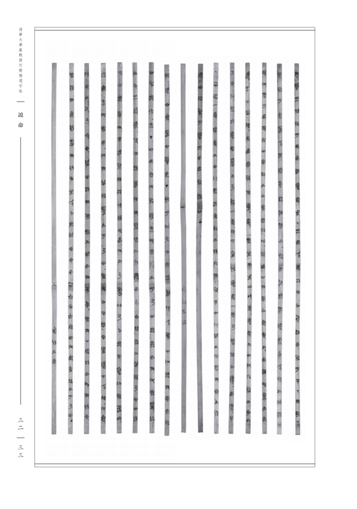 清华大学于二〇〇八年七月收藏的战国中晚期竹简,被称为“清华简”。清华简共约有二五〇〇枚(包括少量残断简),是迄今发现的战国竹简中为数较多的一批。清华简在秦之前就被埋入地下,未经“焚书坑儒”影响,所以能够最大限度地展现先秦古籍的原貌。清华简大多使用的是较为典型的楚文字,书手书写娴熟,工整而不失优雅,自如而不失规矩,是楚文字书写的典型范例。
