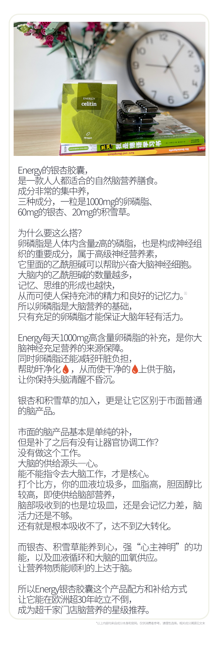 养脑/提高记忆力!捷克ENERGY安能聚银杏胶囊90粒 补脑/ 预防痴dai/ 改善建忘和认知功能!3岁以上全家适用~