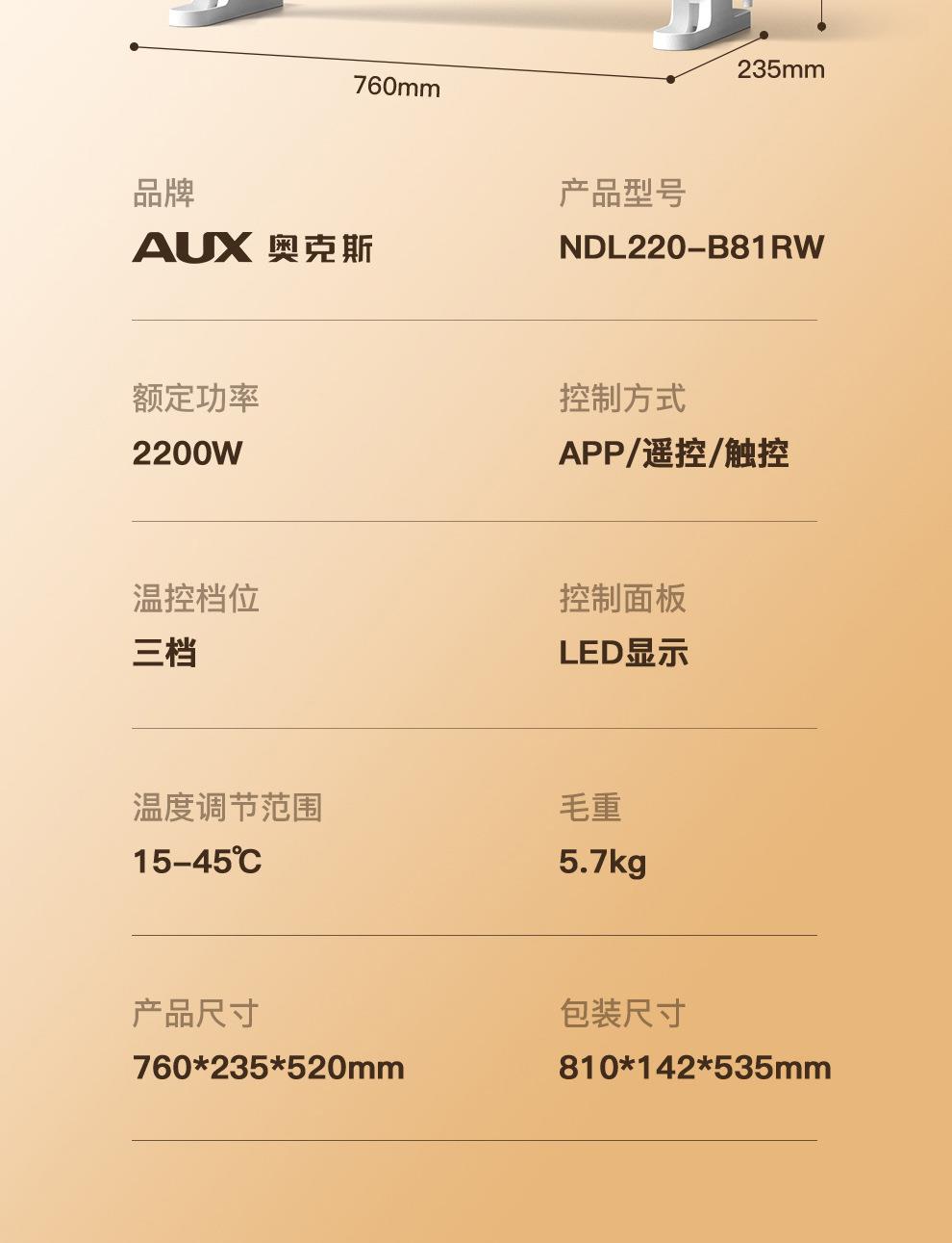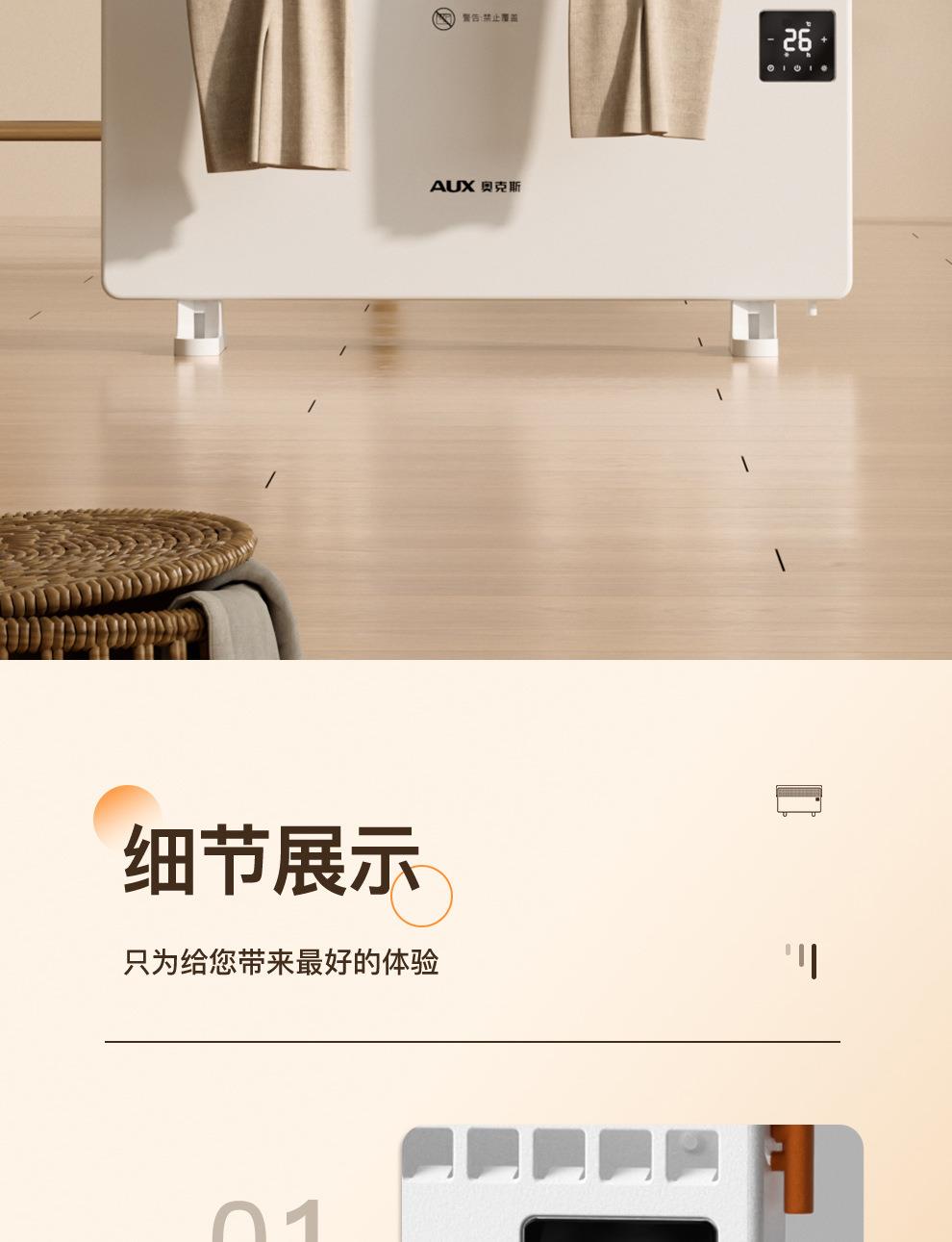 奥克斯家用取暖器暖风机电暖气省电速热对流式静音卧室电暖器