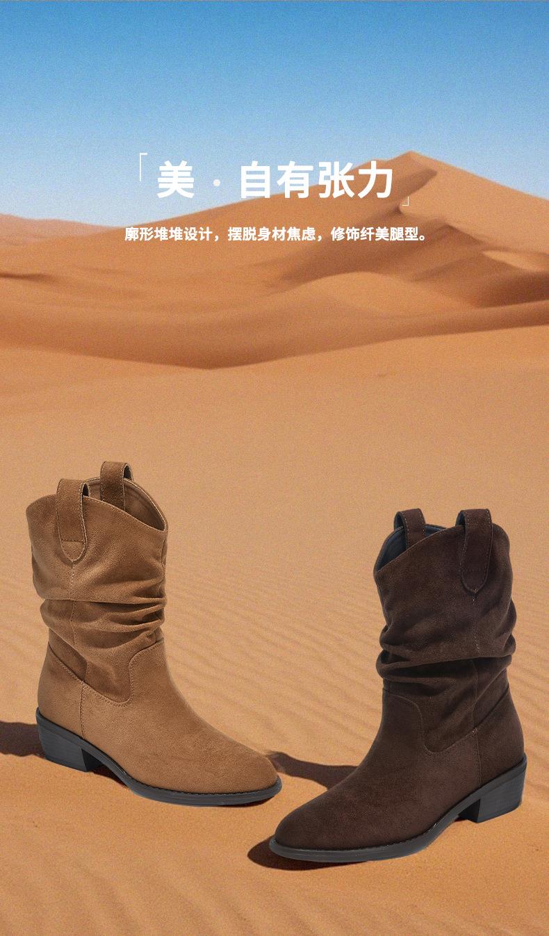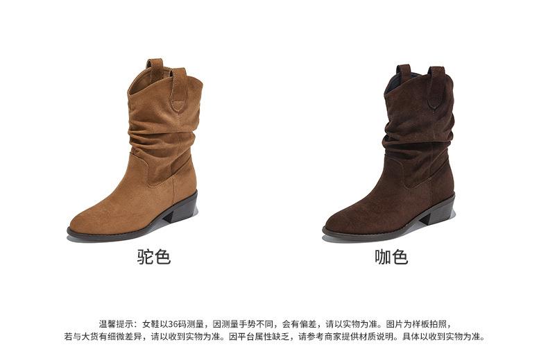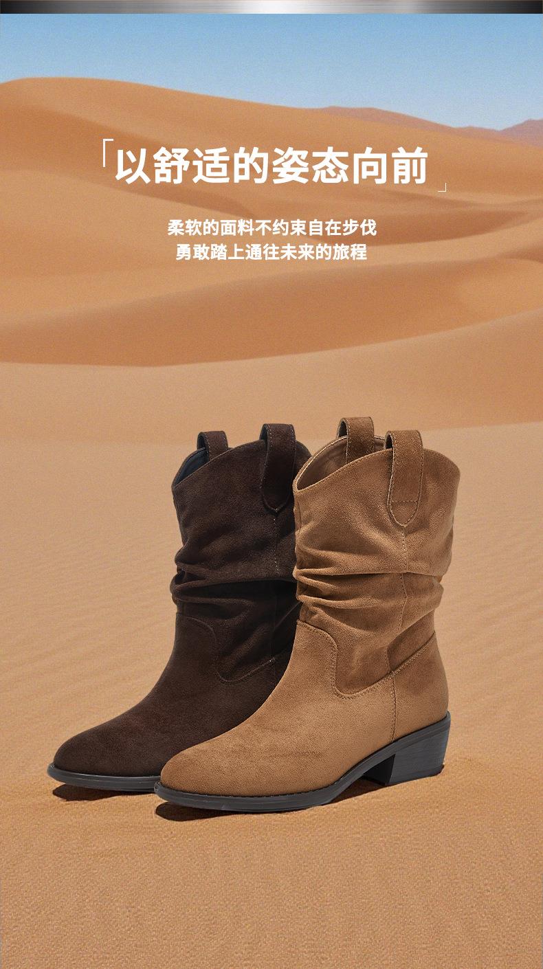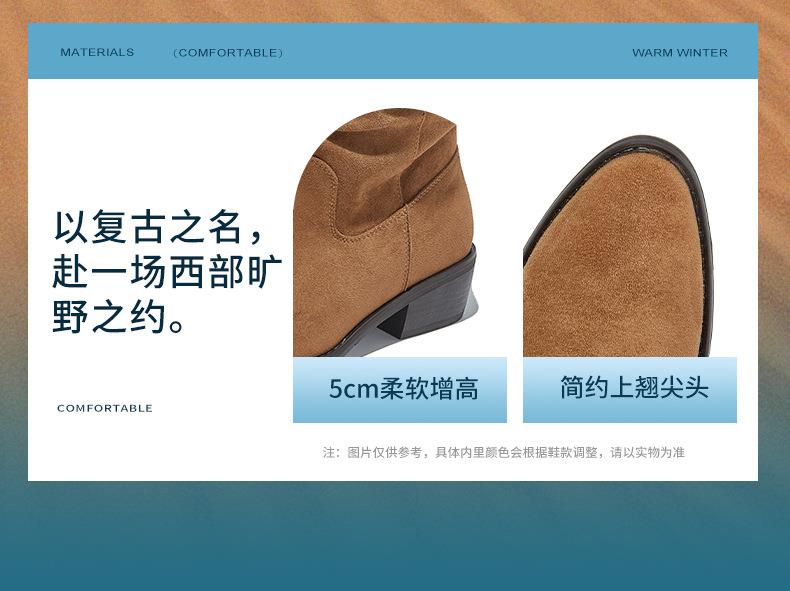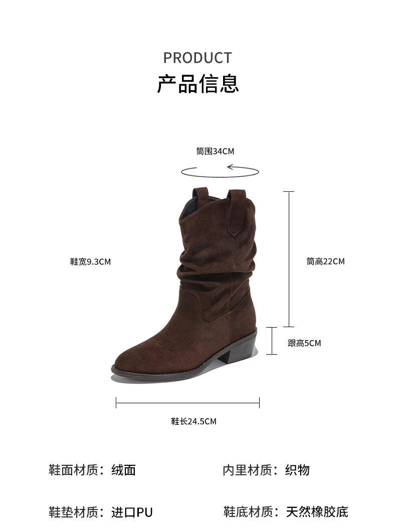 复古尖头西部牛仔靴2025秋冬新款英伦风休闲百搭短靴美拉德靴子女