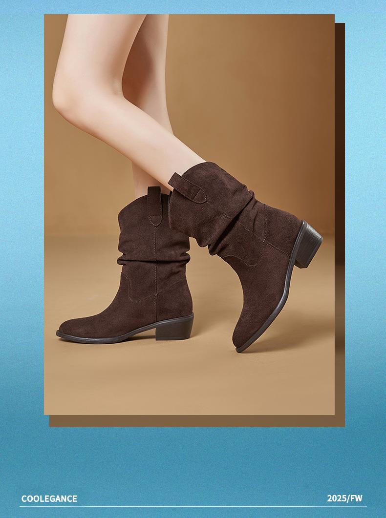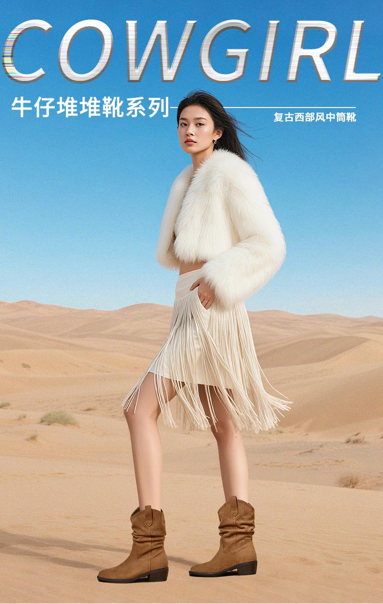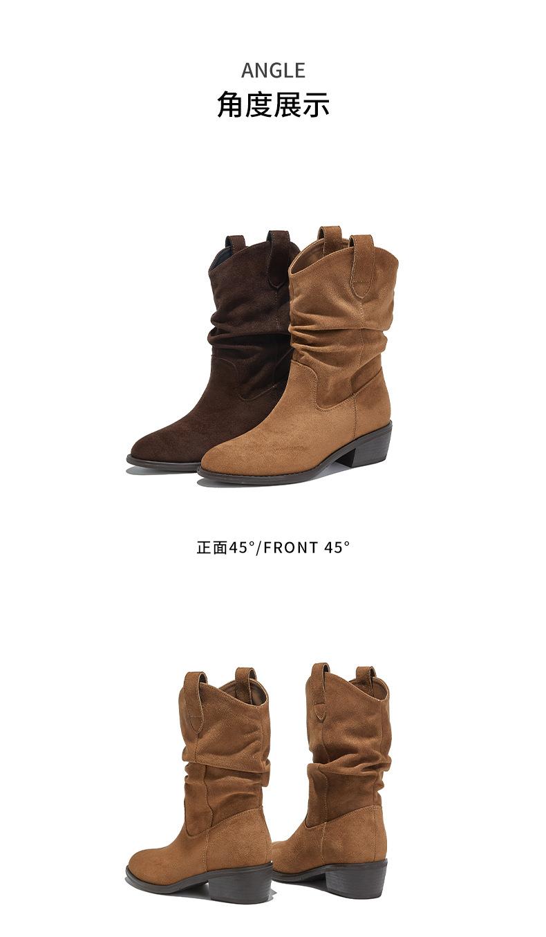 复古尖头西部牛仔靴2025秋冬新款英伦风休闲百搭短靴美拉德靴子女