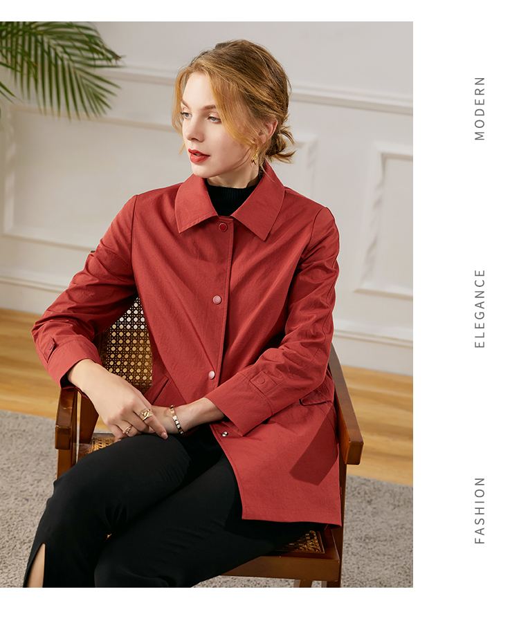 佐尔美2021秋季新款气质短款百搭风衣E13FD01