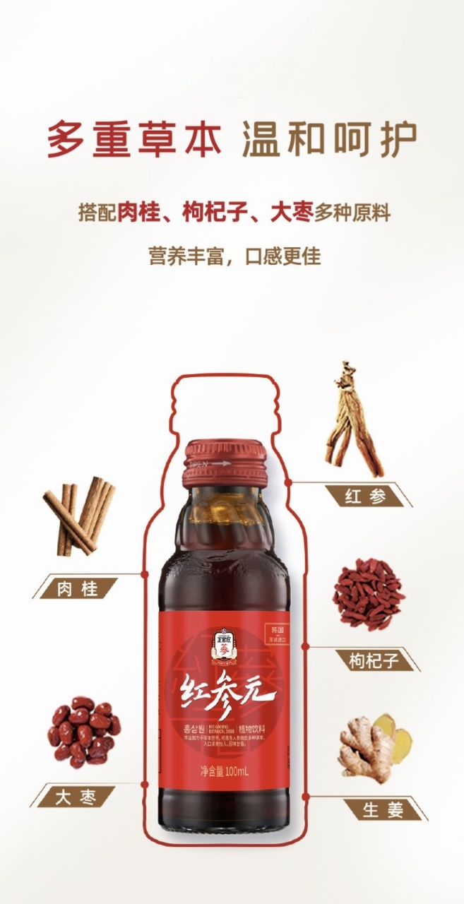 ✅红参搭配大枣、生姜、肉桂、枸杞等滋补原料