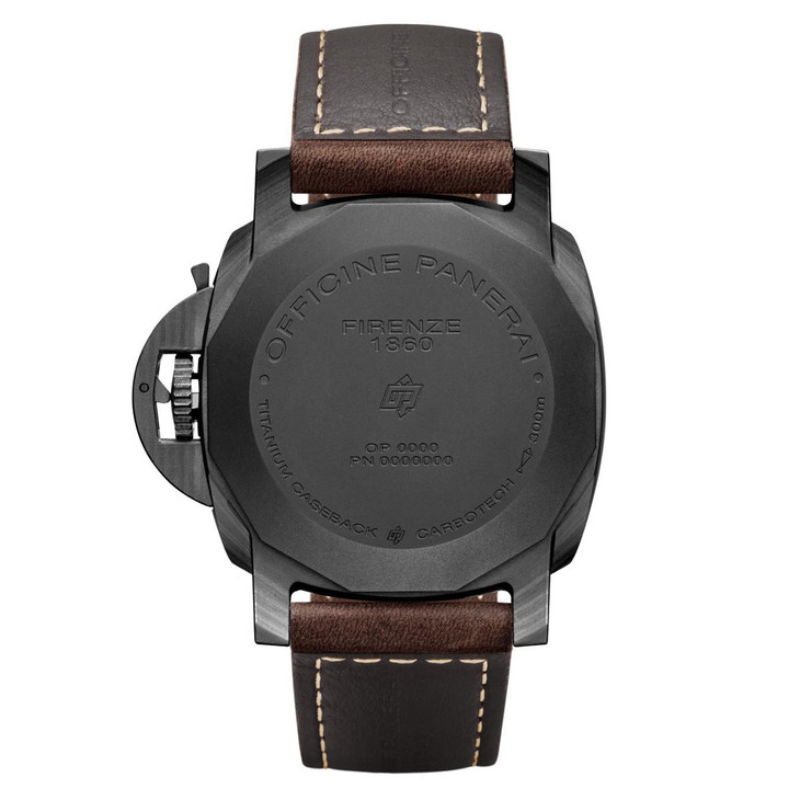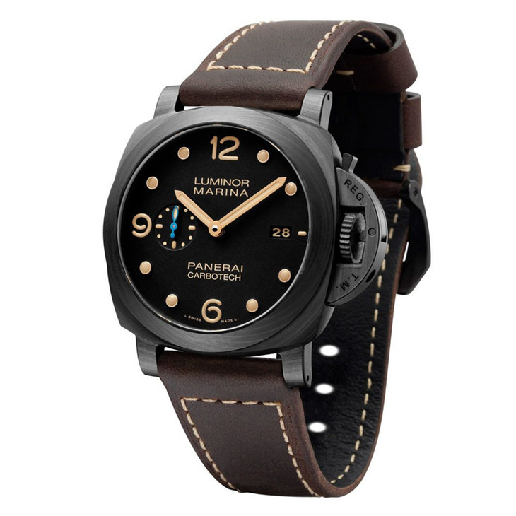 镜面材质 | 蓝宝石水晶玻璃 | 表盘 | 黑色碳纤维表壳 黑色表盘,附阿拉伯数字及夜光圆点时标。3点钟位置设日期显示,9点钟位置设小秒盘。 磨砂表冠护桥(沛纳海专利) 密底 |