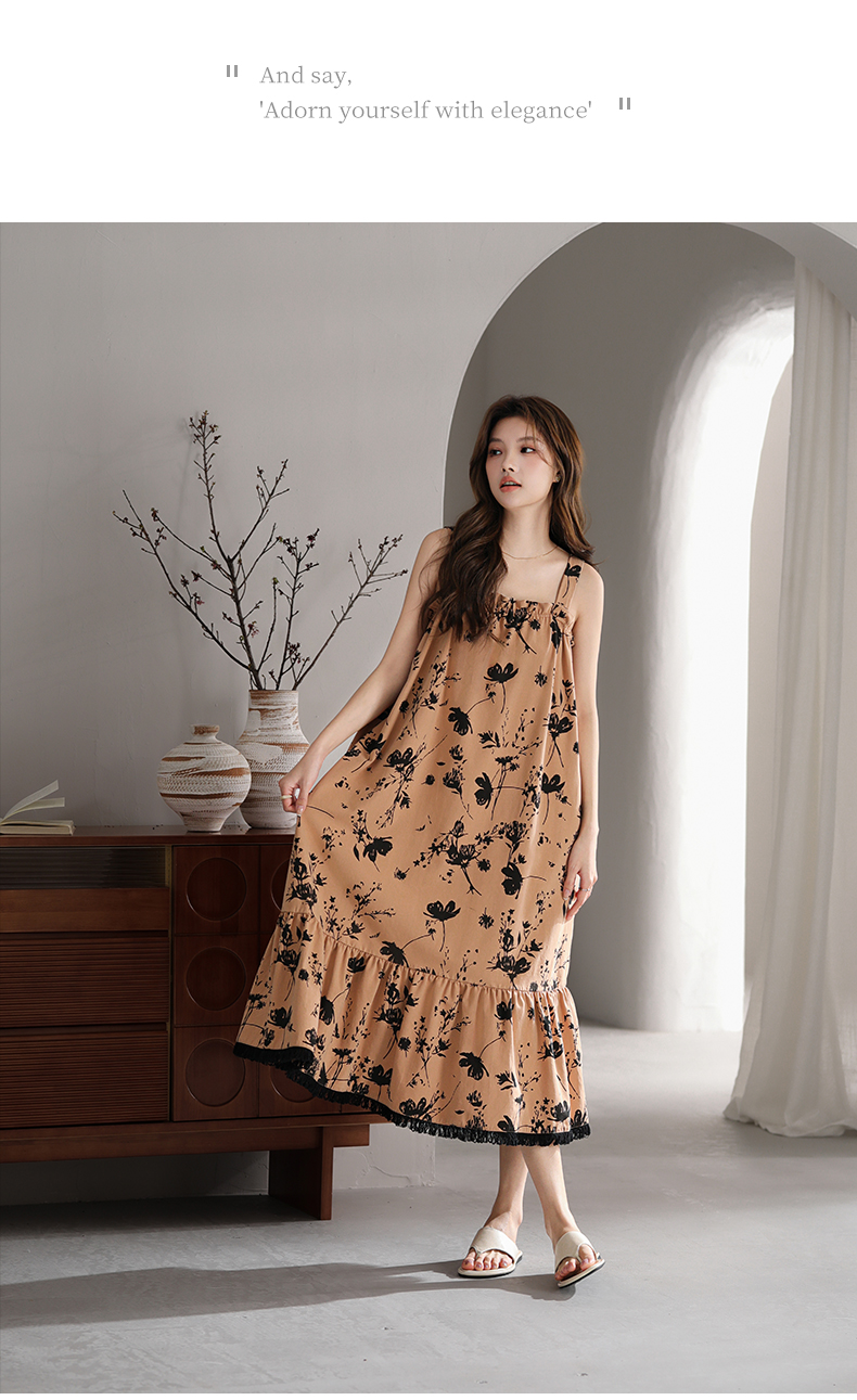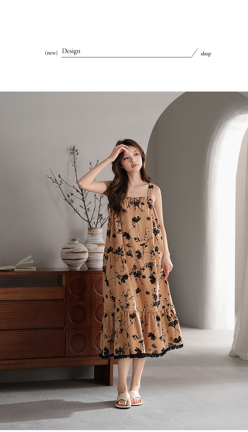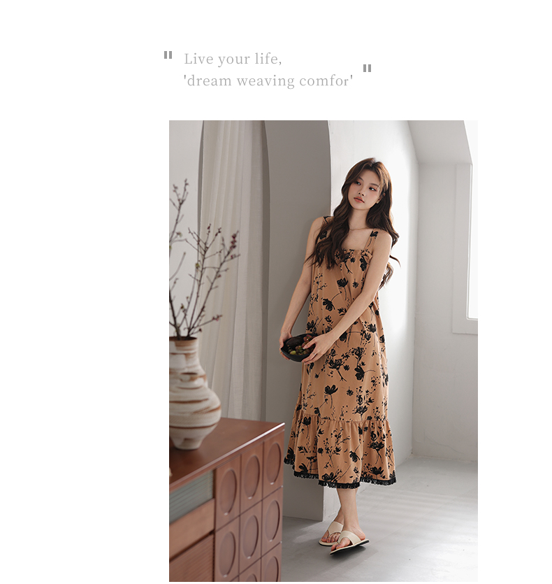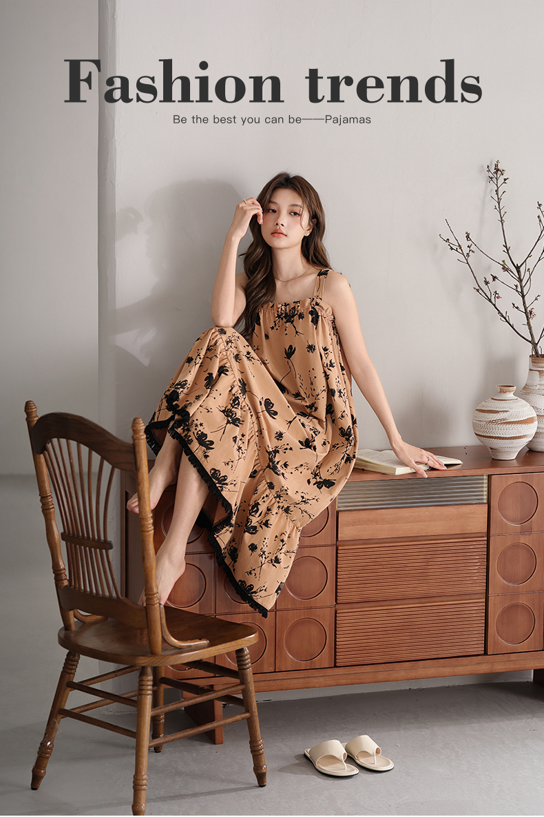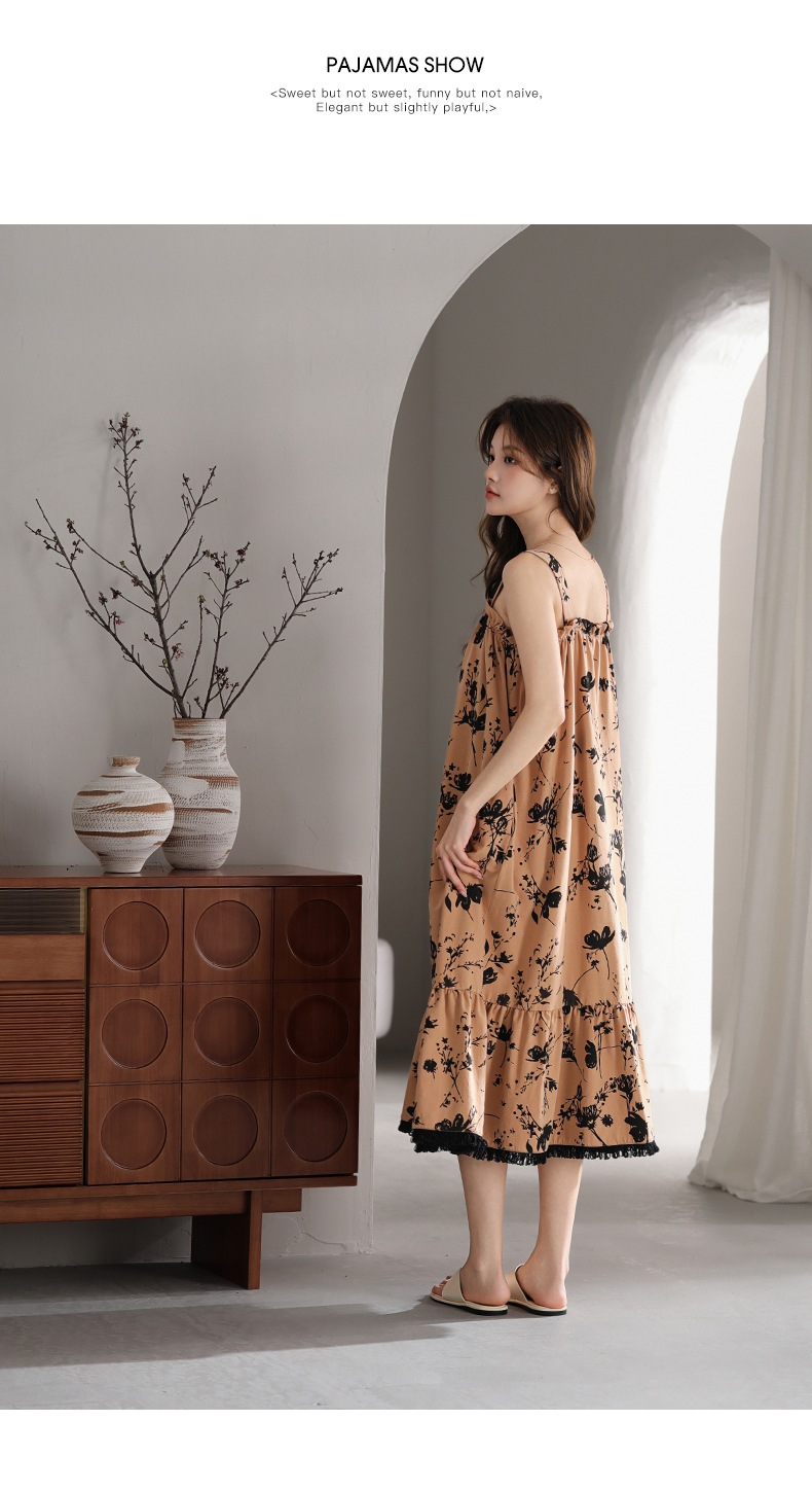 可人儿小众设计师新款奥力绵女士睡衣夏季吊带少女睡裙可外穿家居