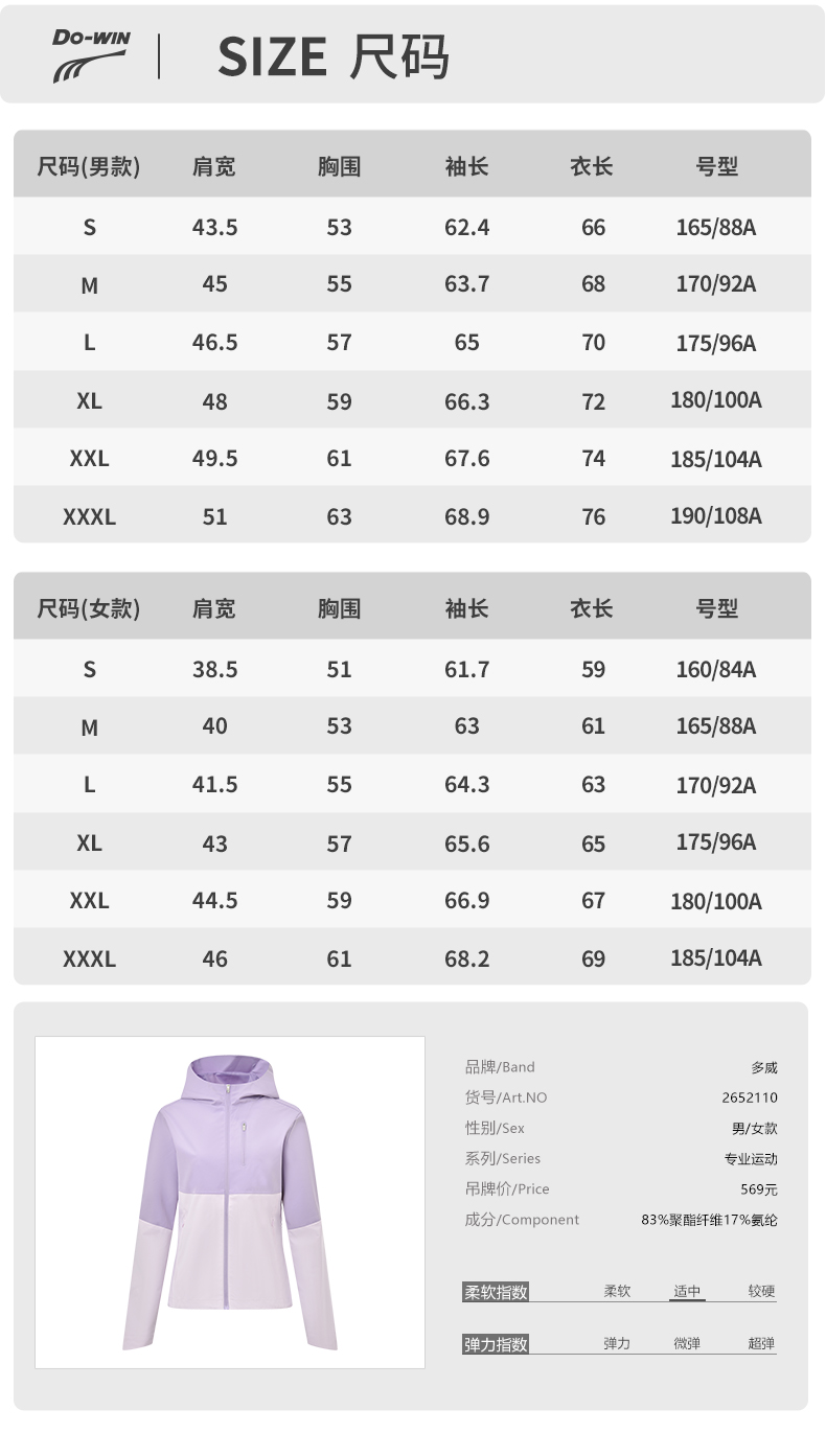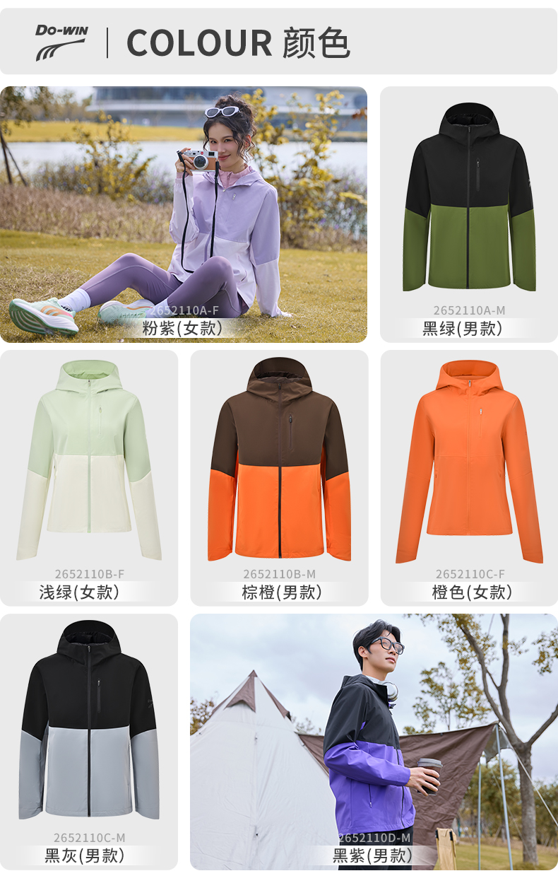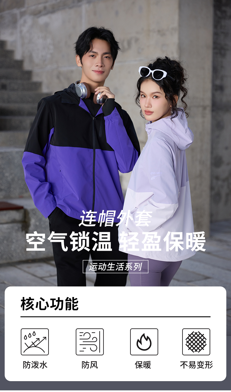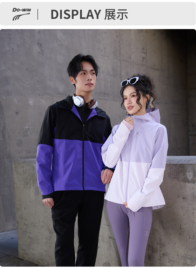 多威连帽外套男新款防风防水上衣女拉链款运动装2652110