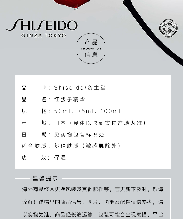 资生堂(SHISEIDO)红腰子精华液红全新四代妍肌活精华面部紧致保湿 全新四代 红腰子50ml/75ml/100ml