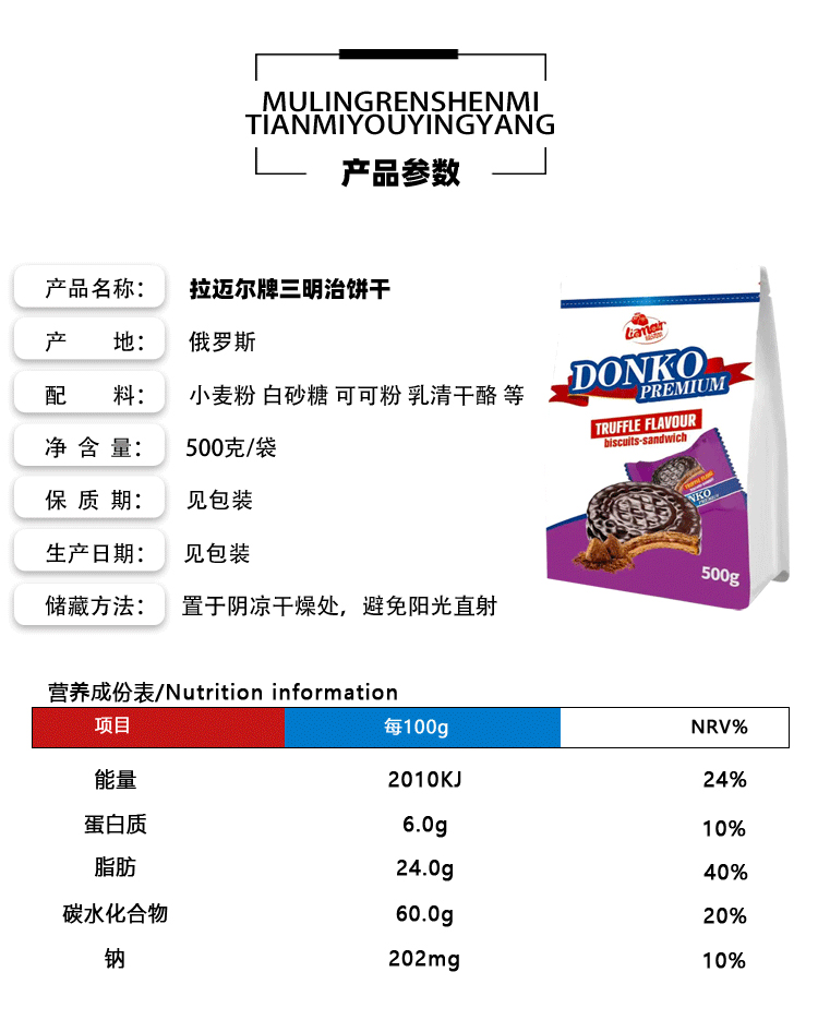 【中欧班列精选】俄罗斯三明治 俄罗斯原装进口三明治饼干 拉迈尔牌巧克力味饼干500g/袋