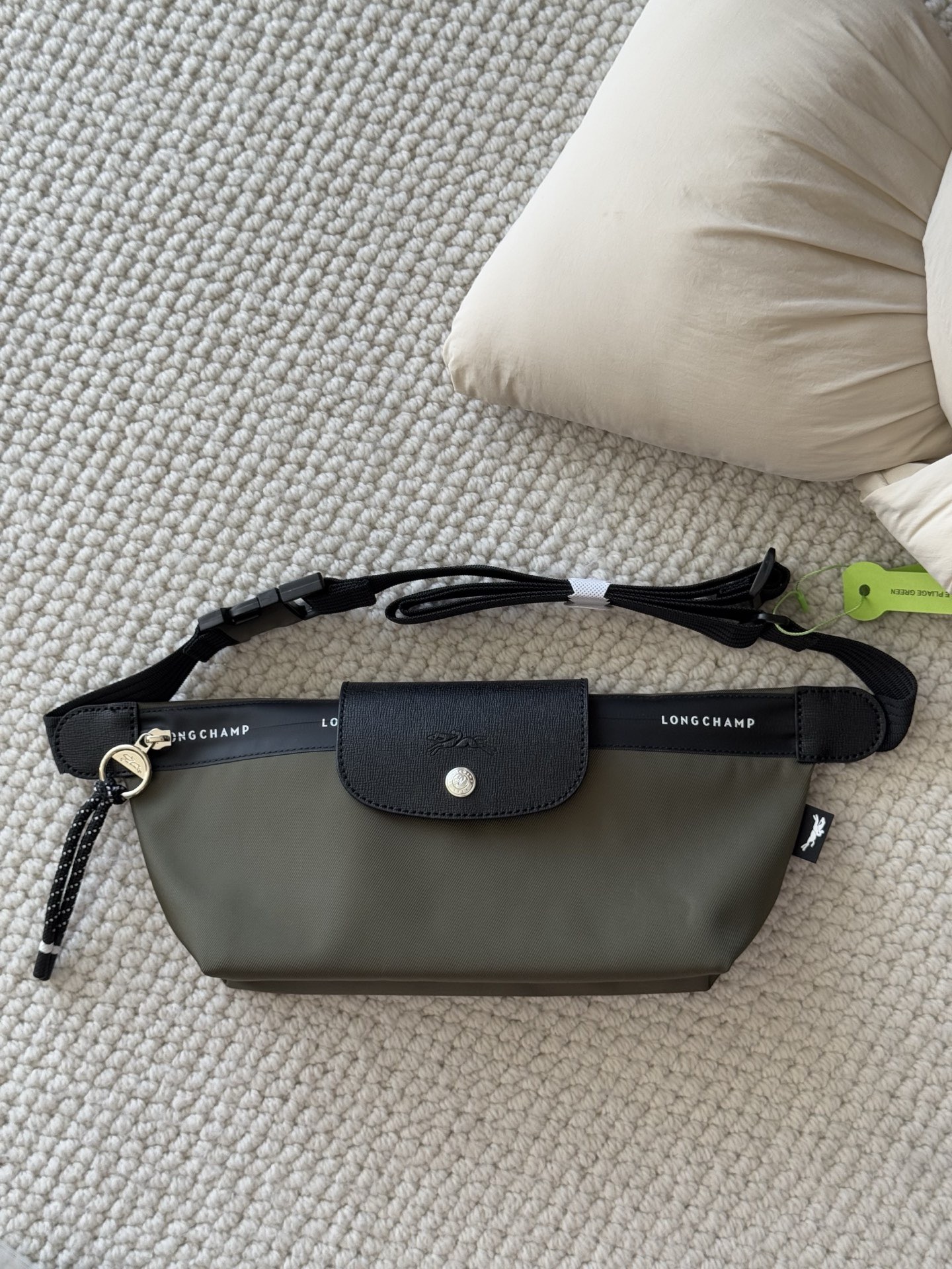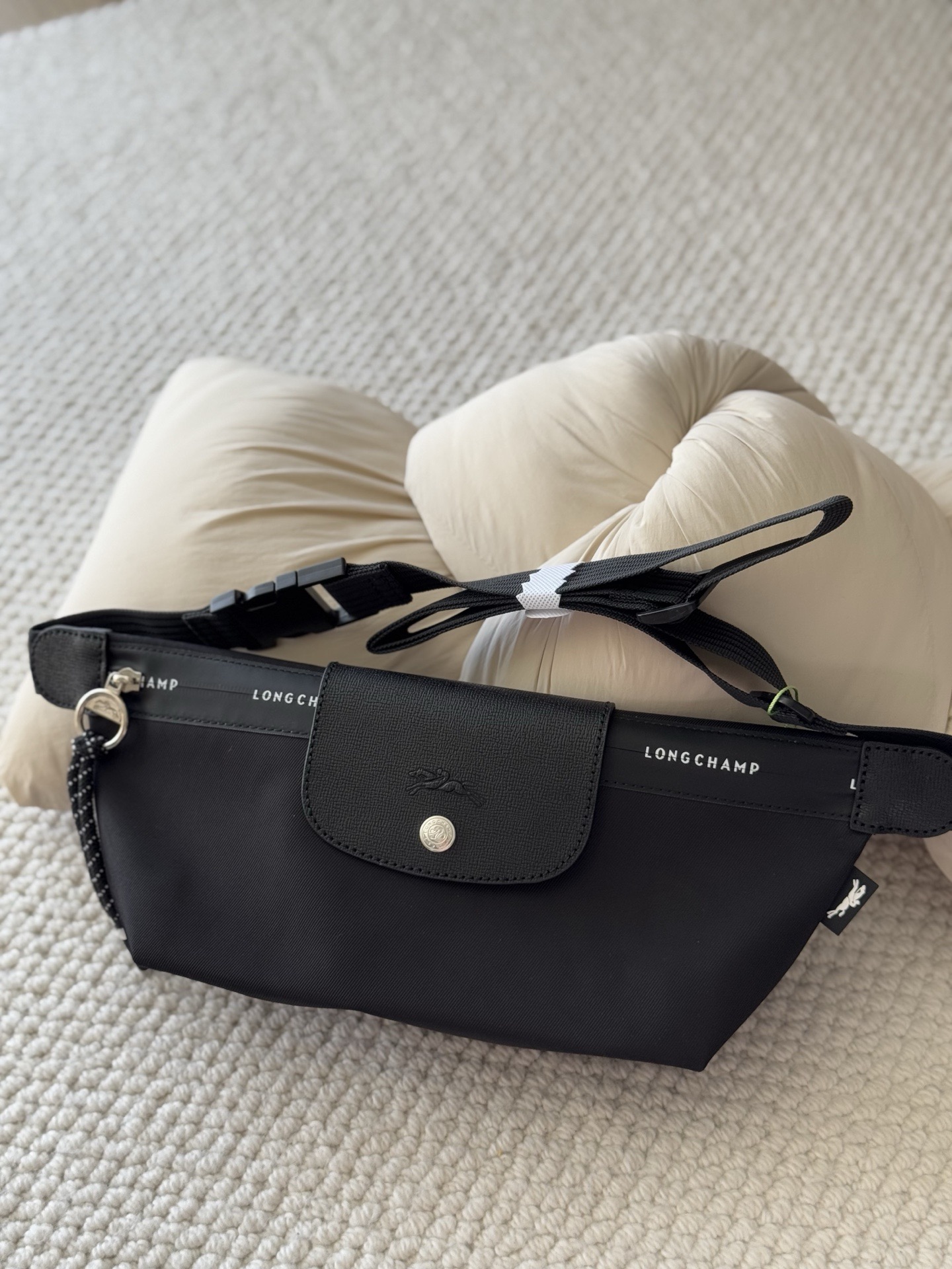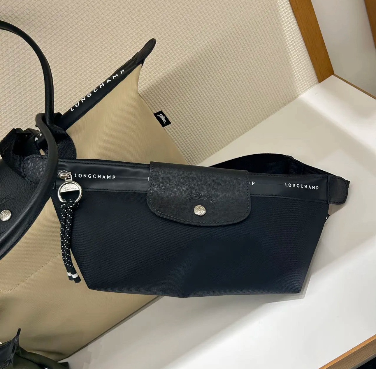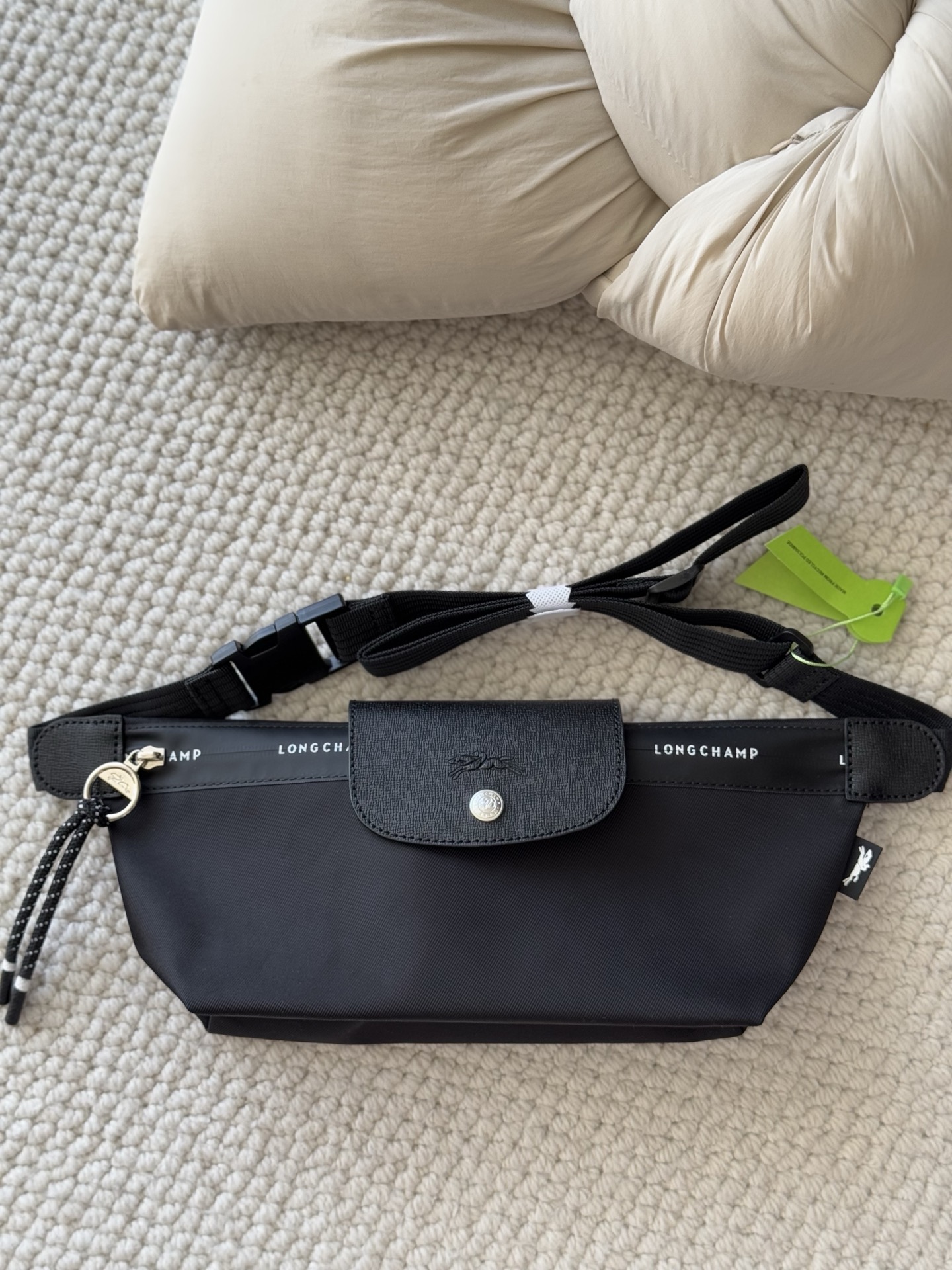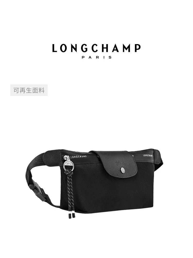 全新腰包𝐄𝐧𝐞𝐫𝐠𝐲,纯色的包身和带有longchamp waist bag 标志的隐形拉链,还有黑白再生绳等细节形成鲜明对比,运动感十足的Longchamp Le Pliage Energy,最新款腰包,男女同款!