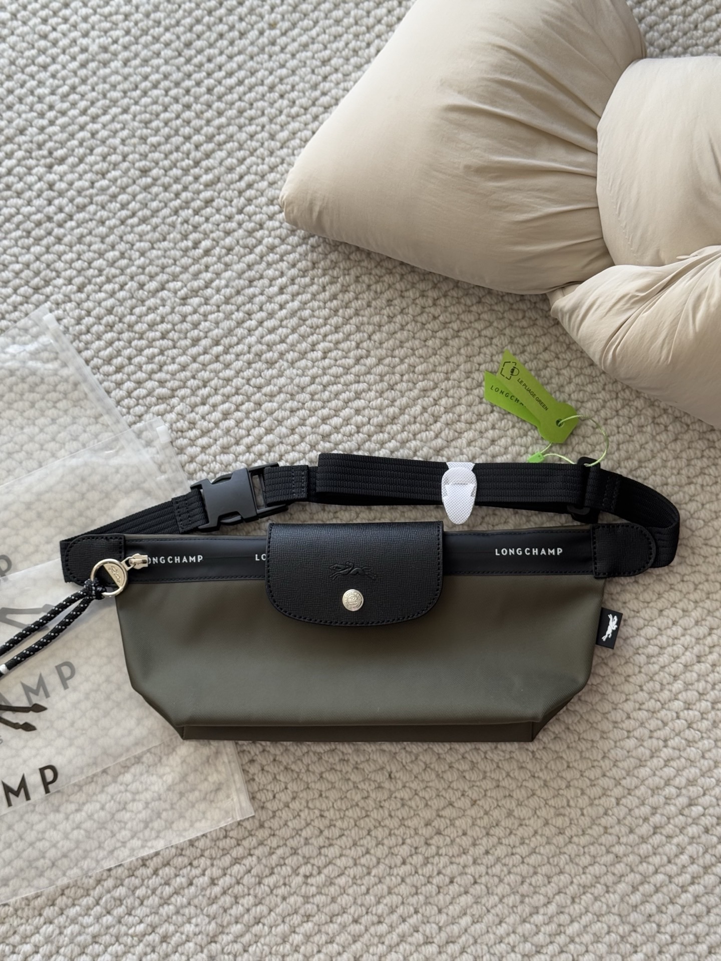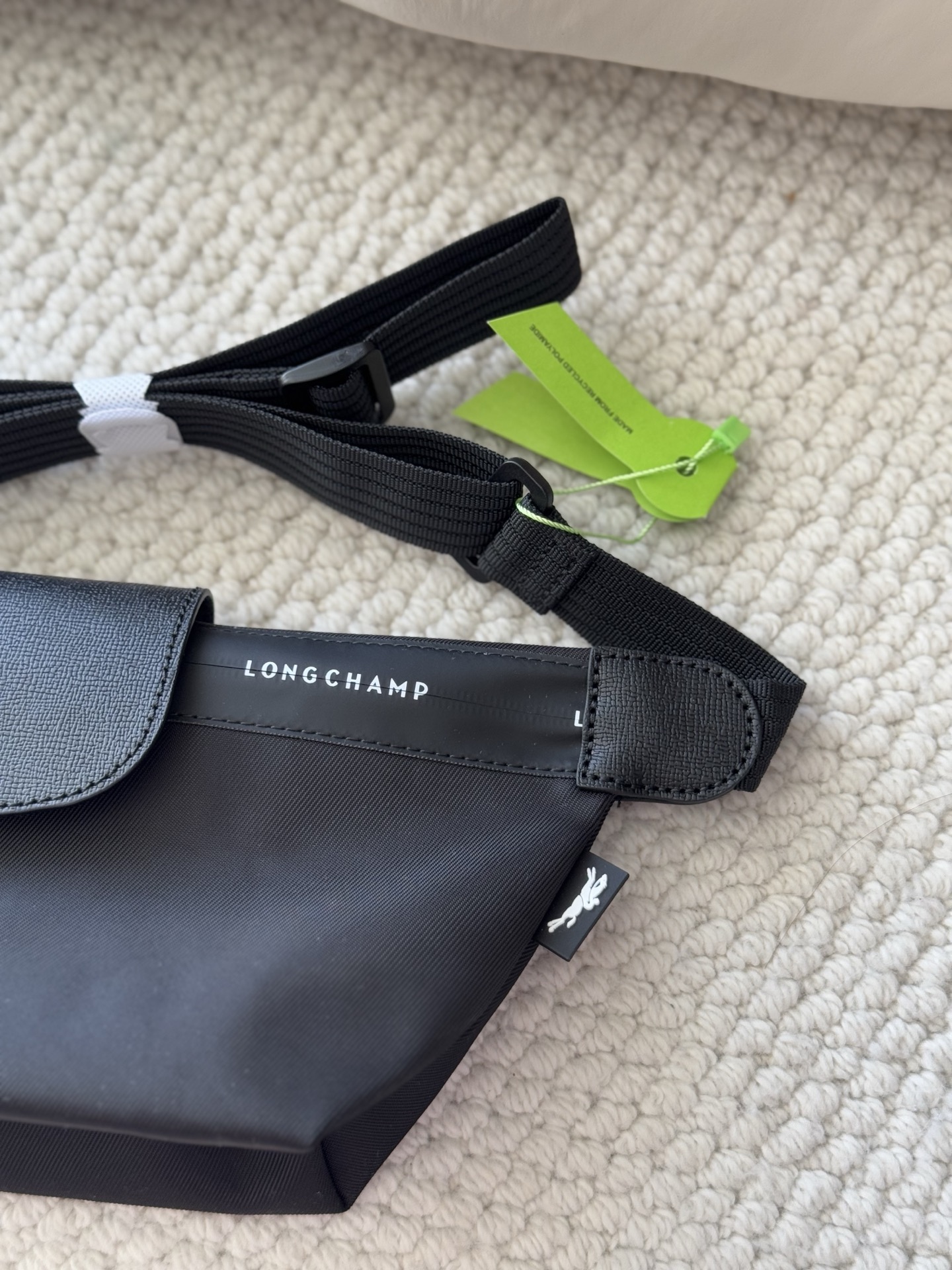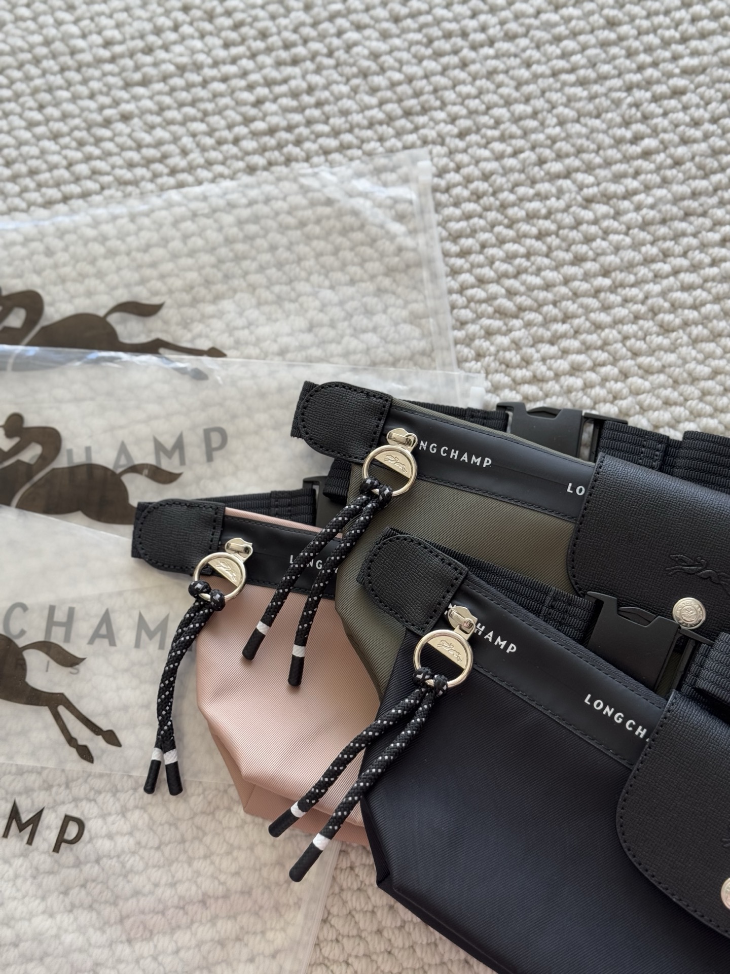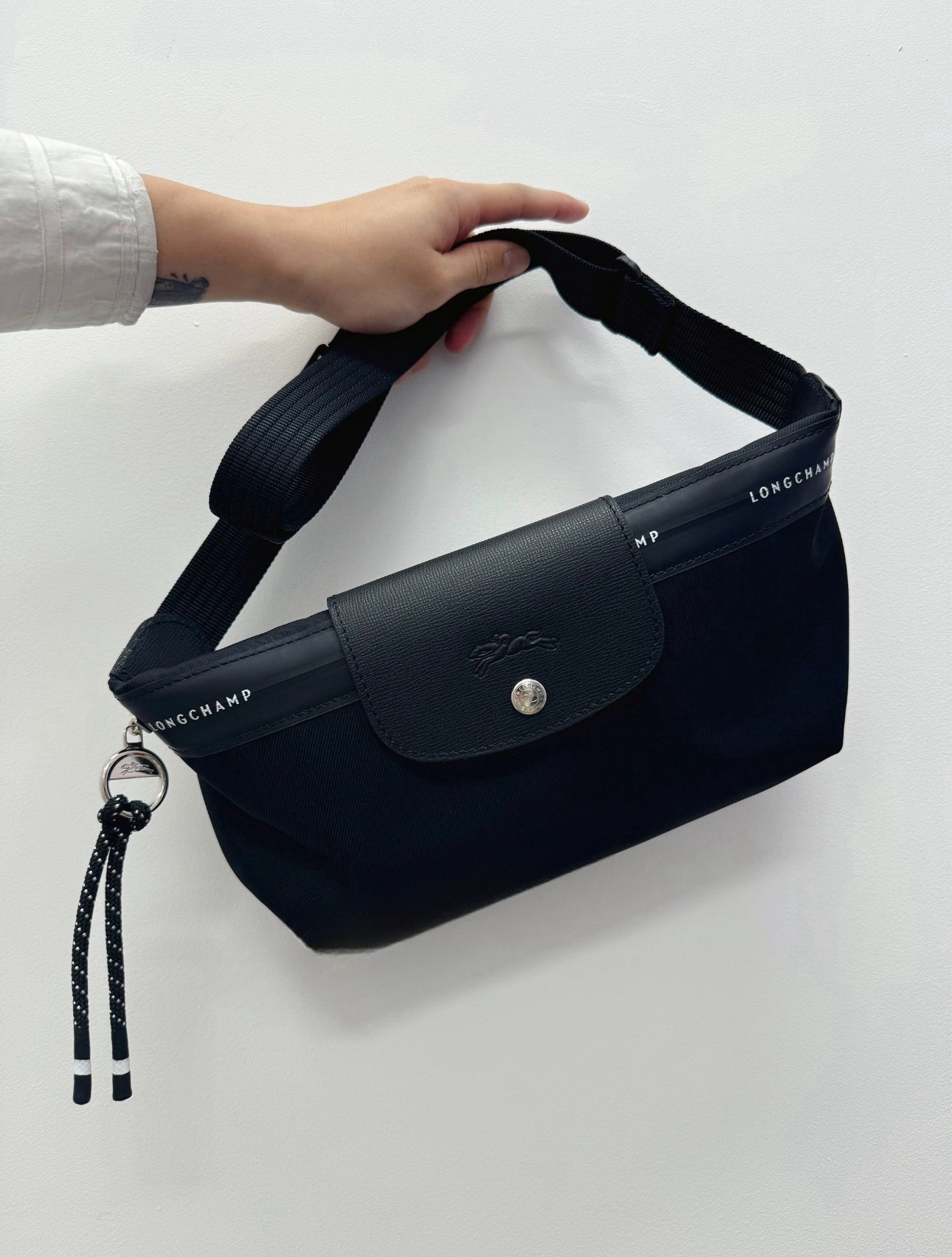 全新腰包𝐄𝐧𝐞𝐫𝐠𝐲,纯色的包身和带有longchamp waist bag 标志的隐形拉链,还有黑白再生绳等细节形成鲜明对比,运动感十足的Longchamp Le Pliage Energy,最新款腰包,男女同款!