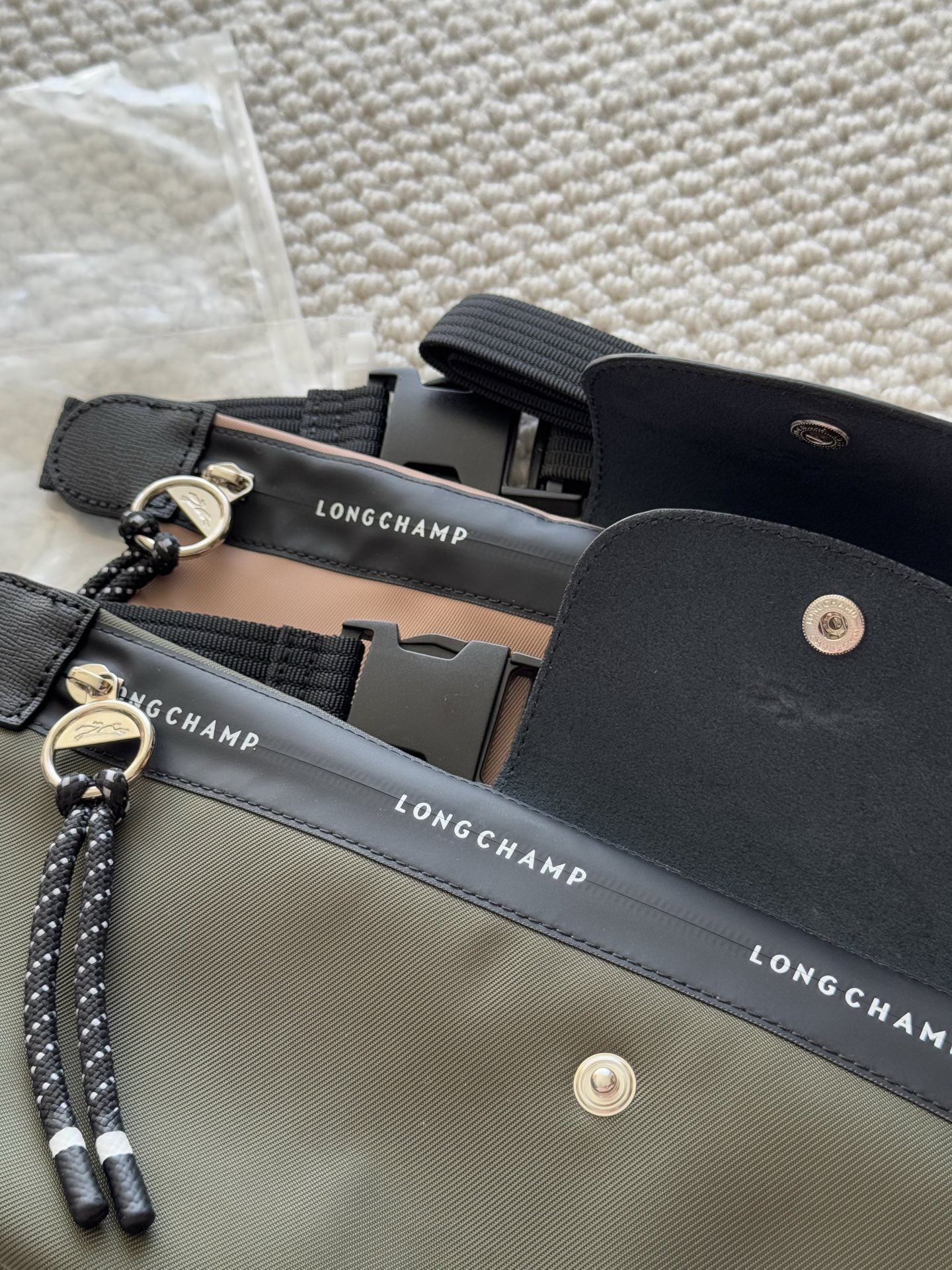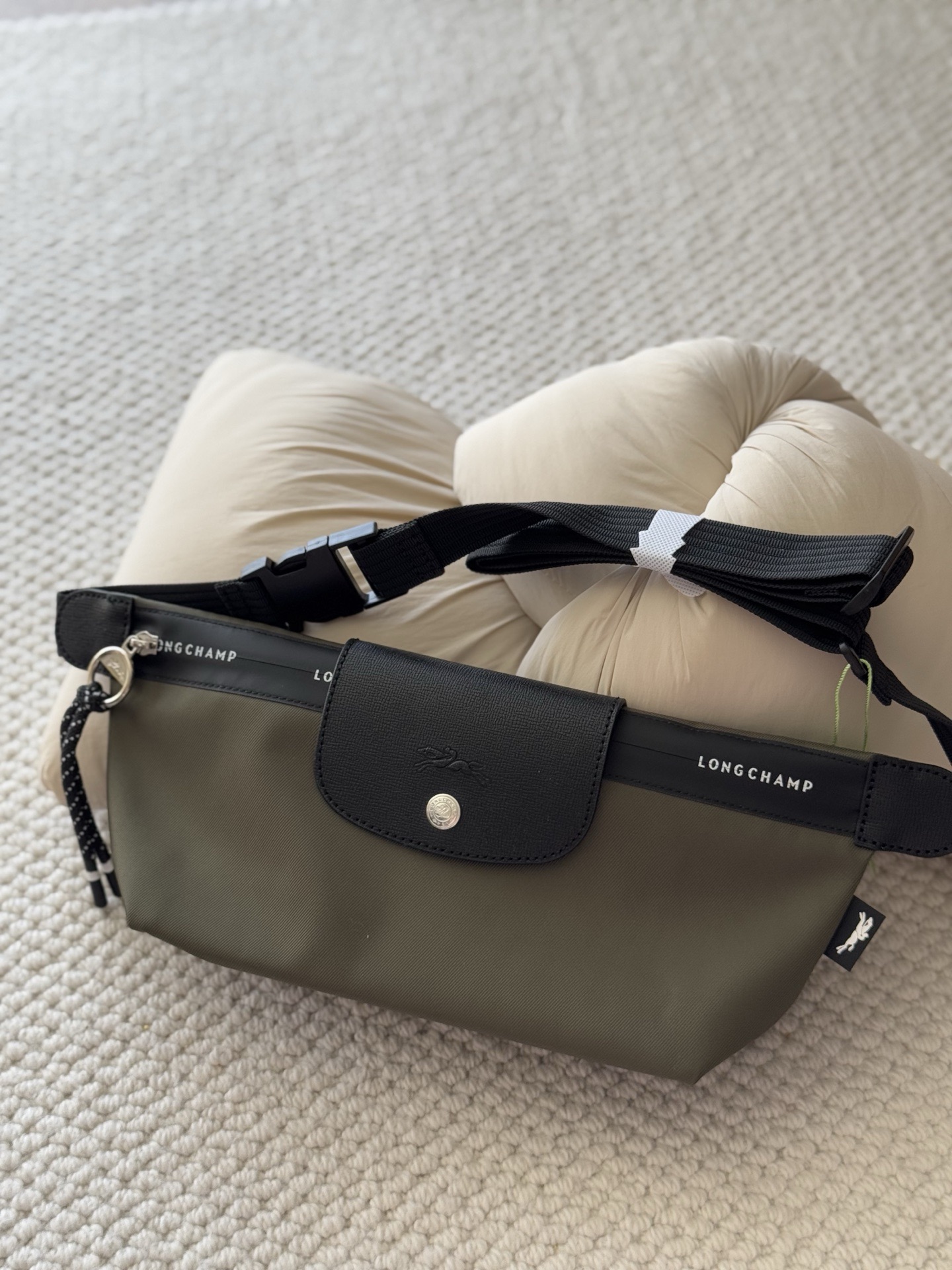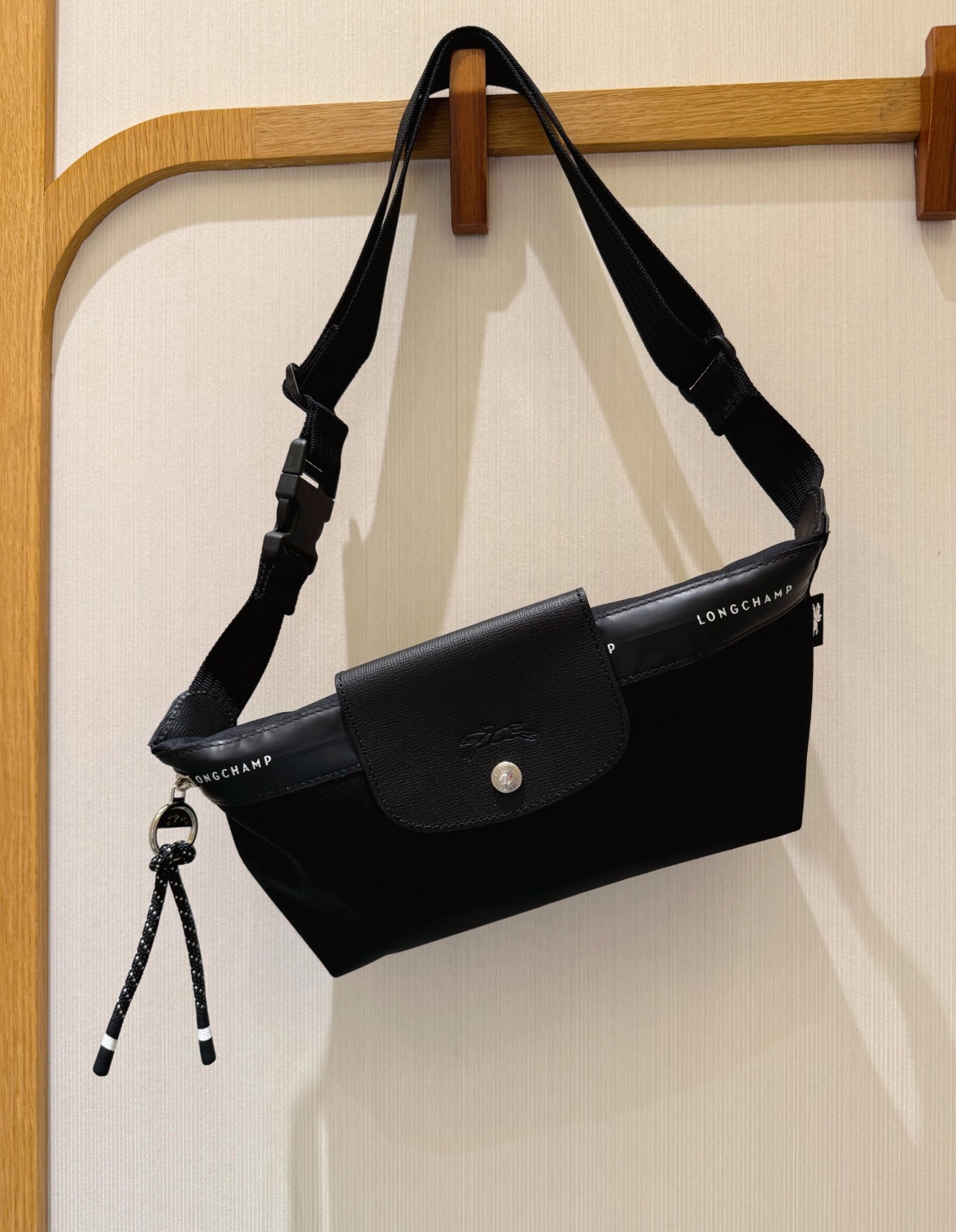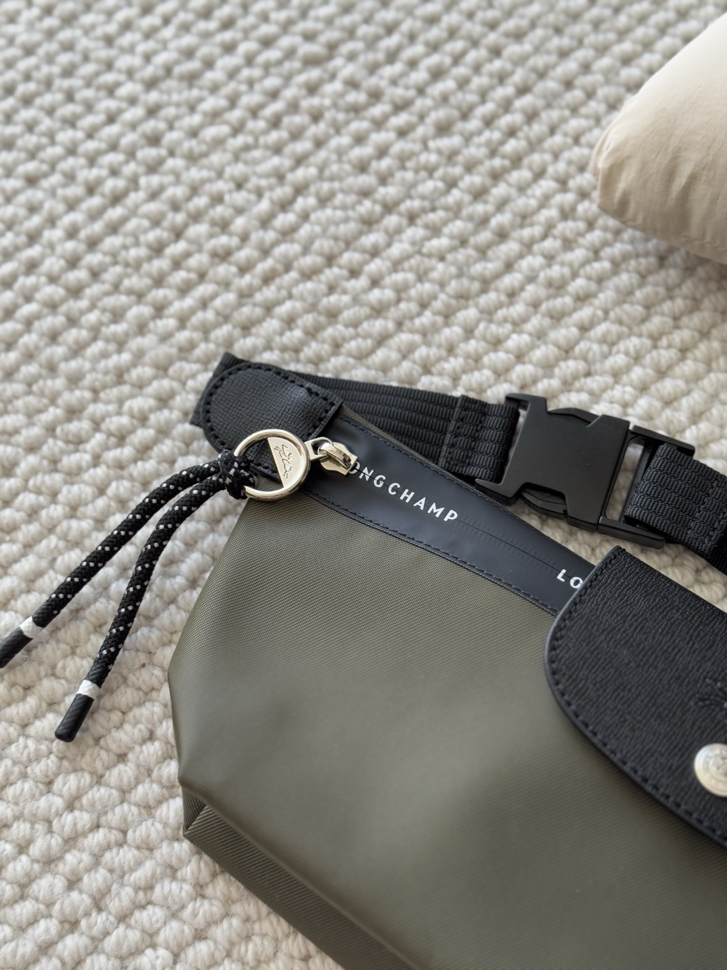 全新腰包𝐄𝐧𝐞𝐫𝐠𝐲,纯色的包身和带有longchamp waist bag 标志的隐形拉链,还有黑白再生绳等细节形成鲜明对比,运动感十足的Longchamp Le Pliage Energy,最新款腰包,男女同款!