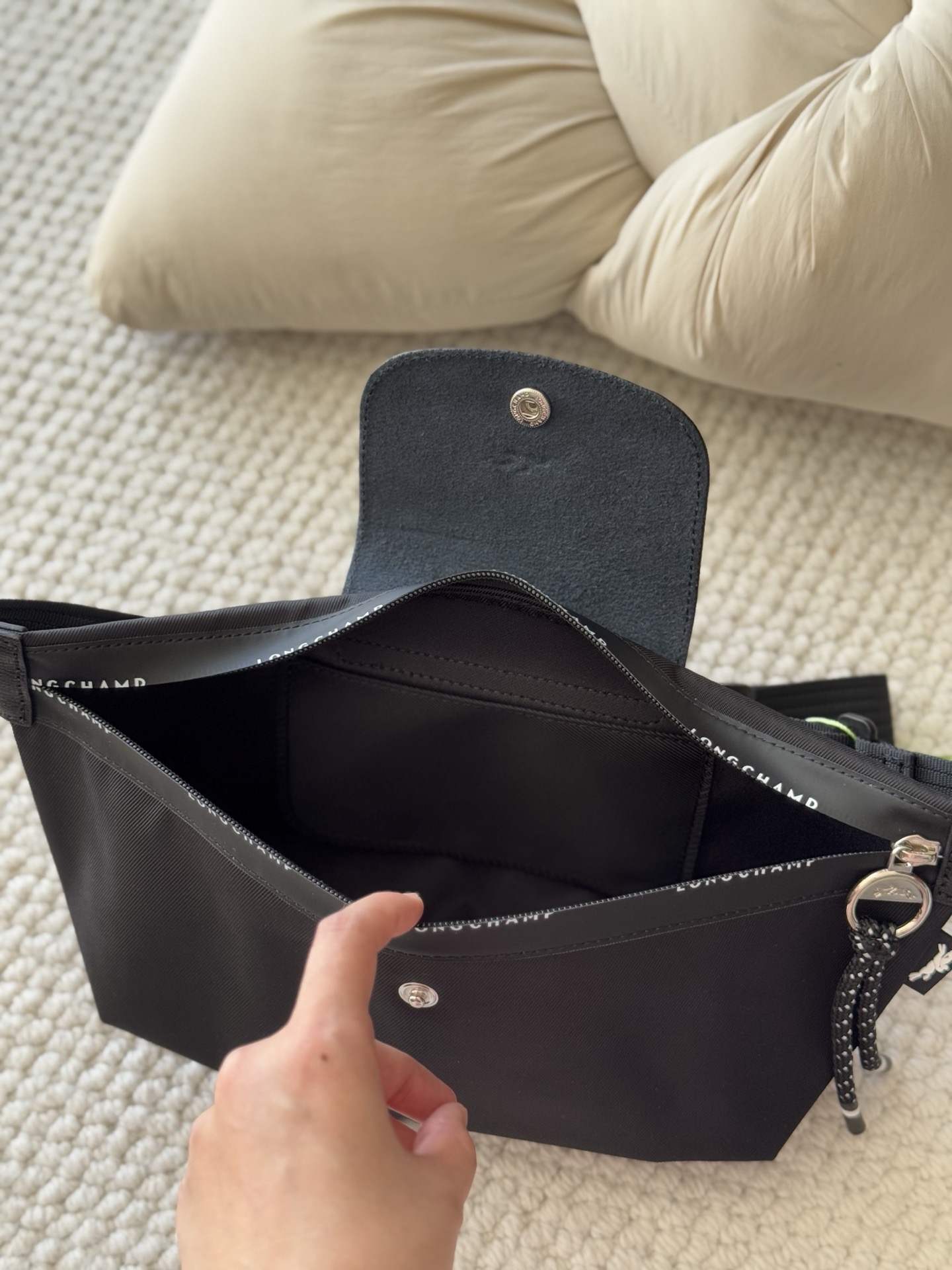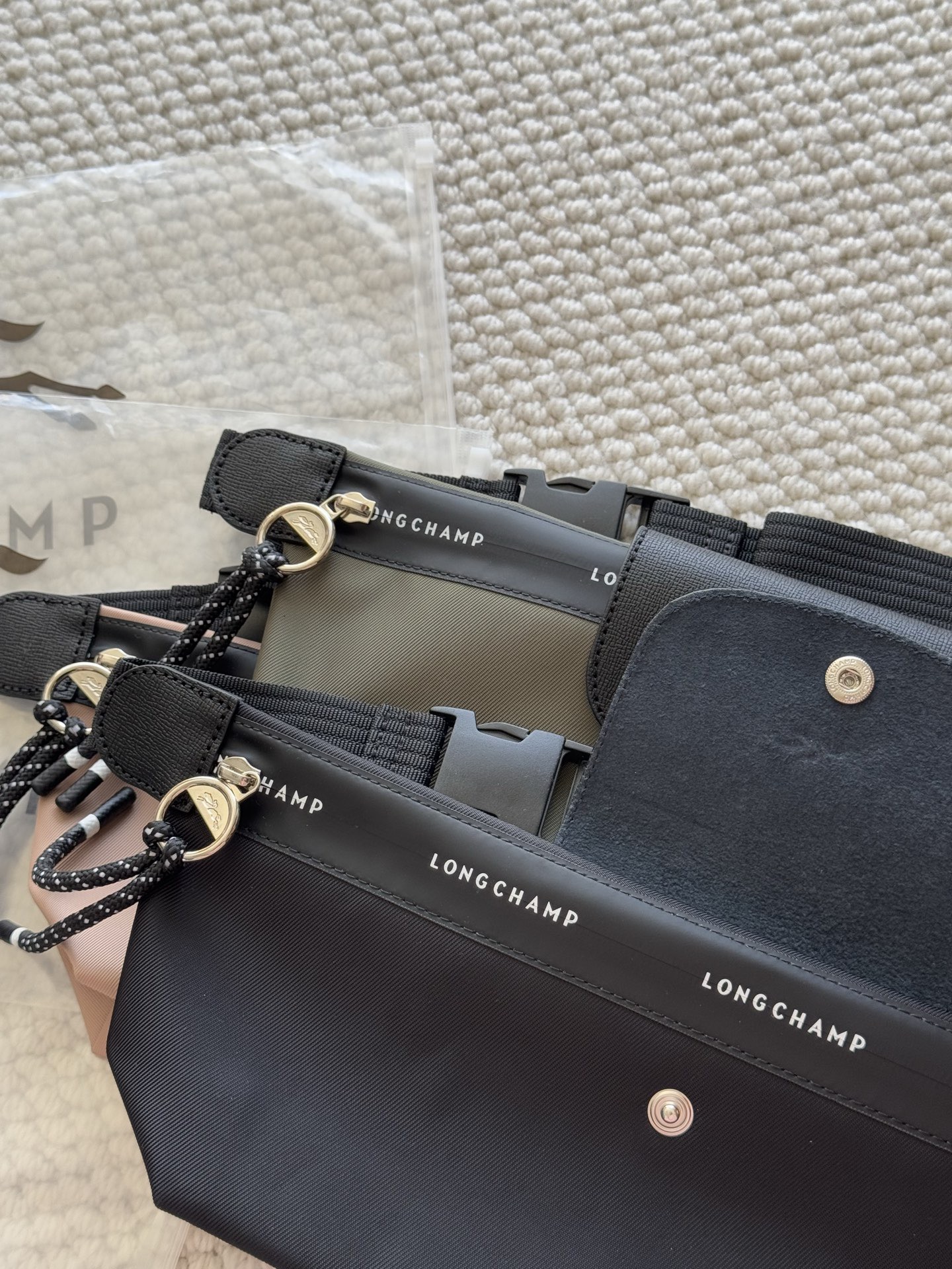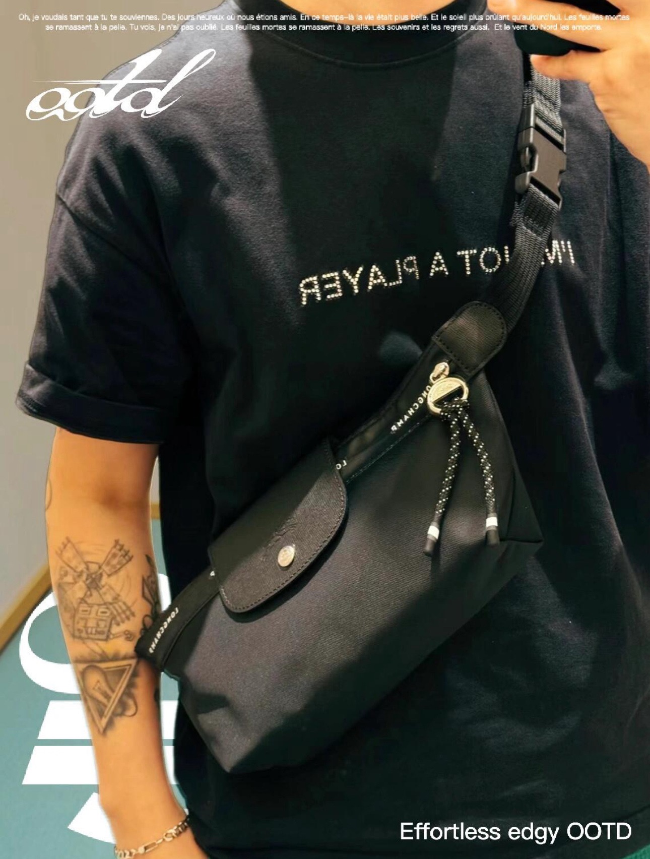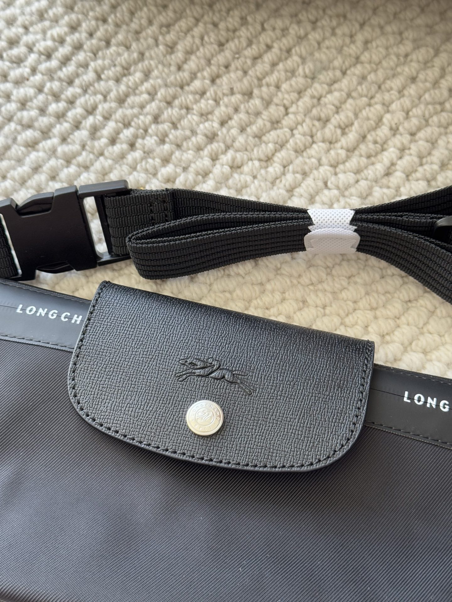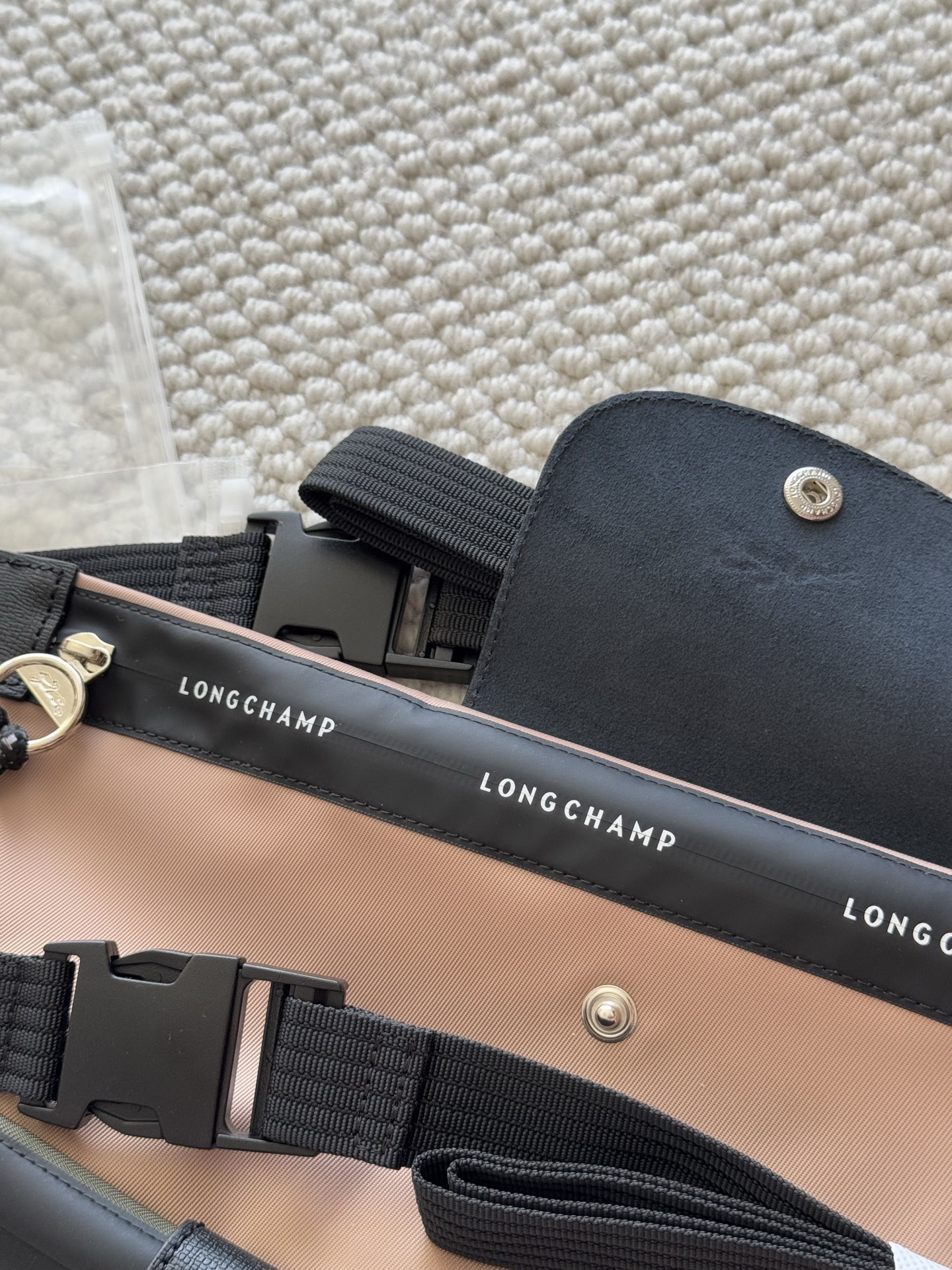 全新腰包𝐄𝐧𝐞𝐫𝐠𝐲,纯色的包身和带有longchamp waist bag 标志的隐形拉链,还有黑白再生绳等细节形成鲜明对比,运动感十足的Longchamp Le Pliage Energy,最新款腰包,男女同款!