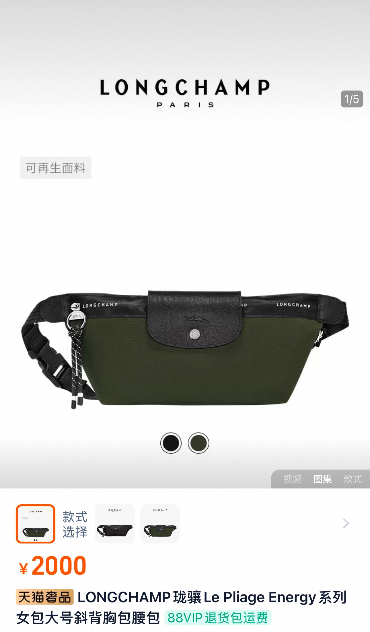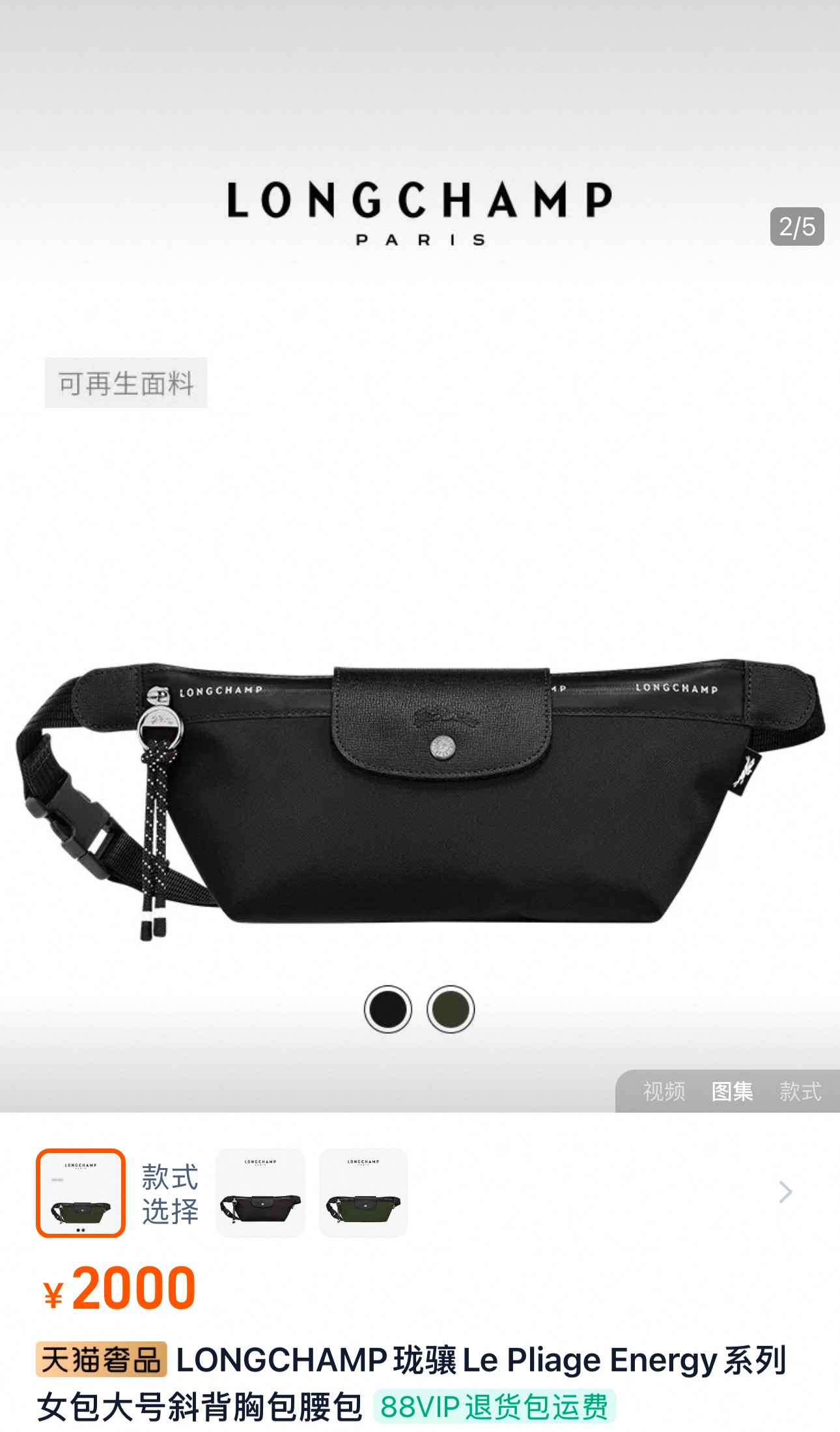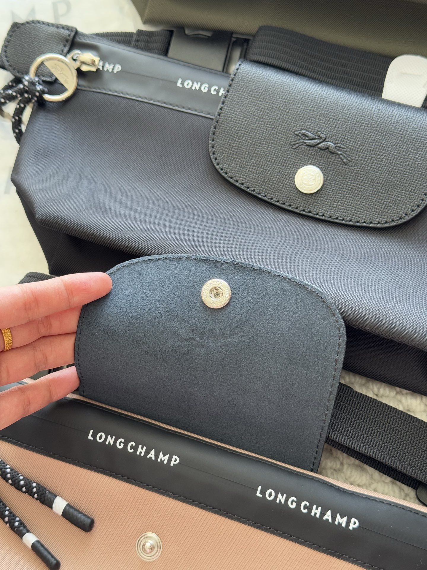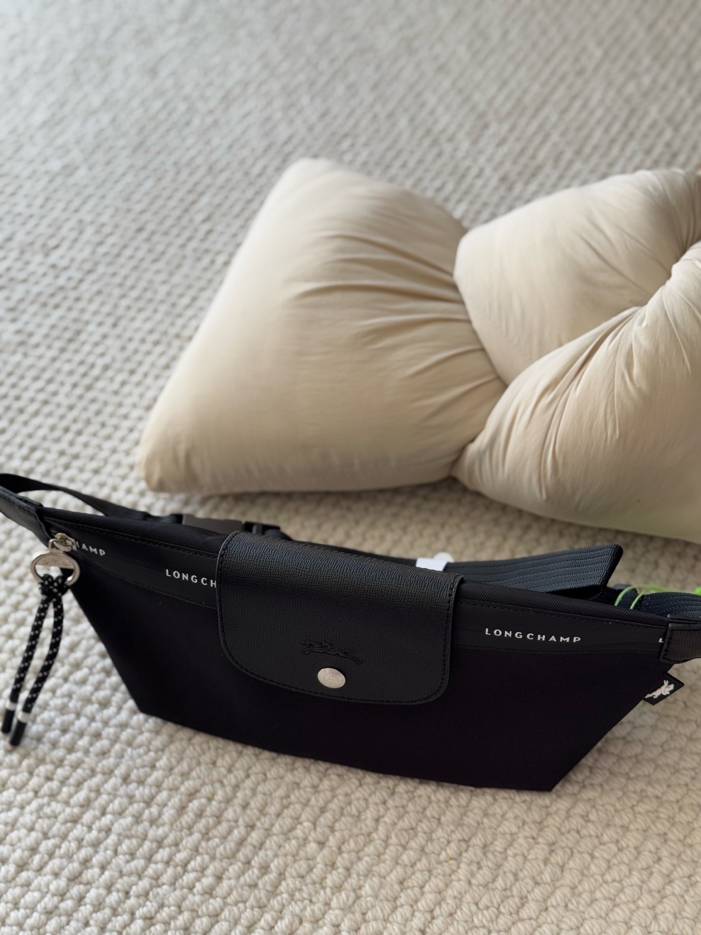 全新腰包𝐄𝐧𝐞𝐫𝐠𝐲,纯色的包身和带有longchamp waist bag 标志的隐形拉链,还有黑白再生绳等细节形成鲜明对比,运动感十足的Longchamp Le Pliage Energy,最新款腰包,男女同款!