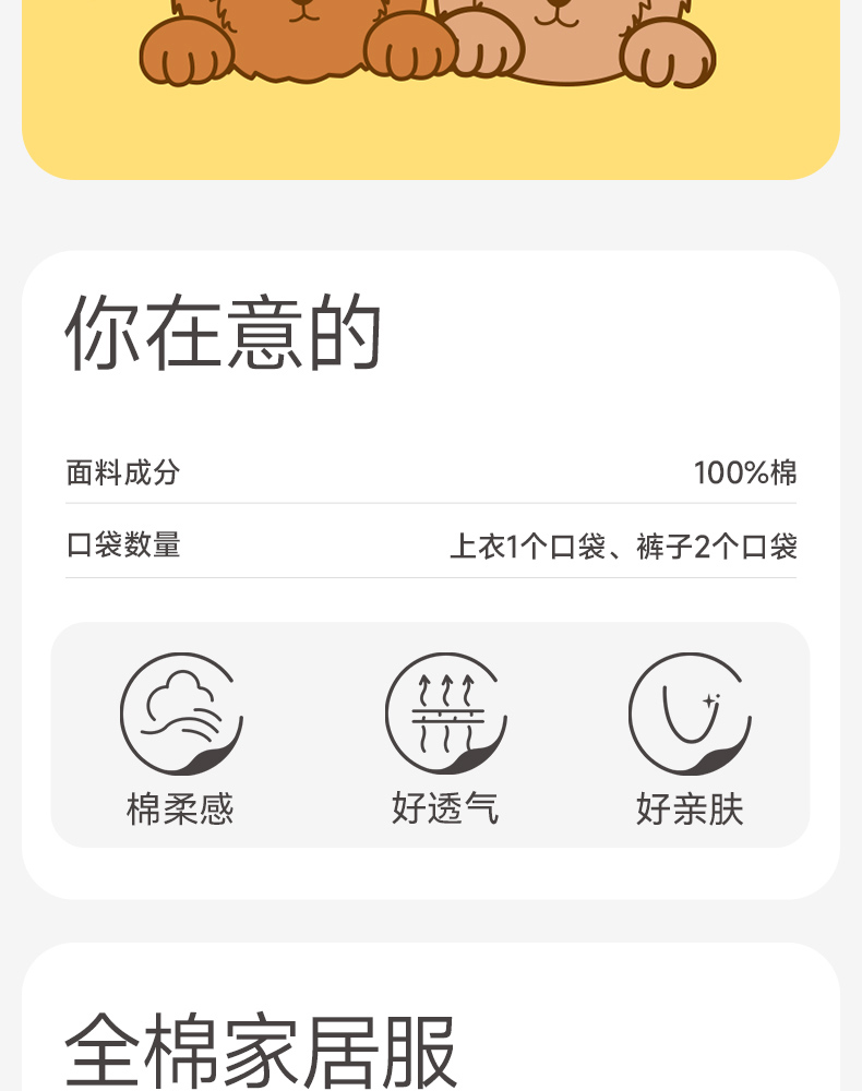 优选 | 芬腾 情侣睡衣套装 多色可选 宽松纯棉圆领透气全棉家居服