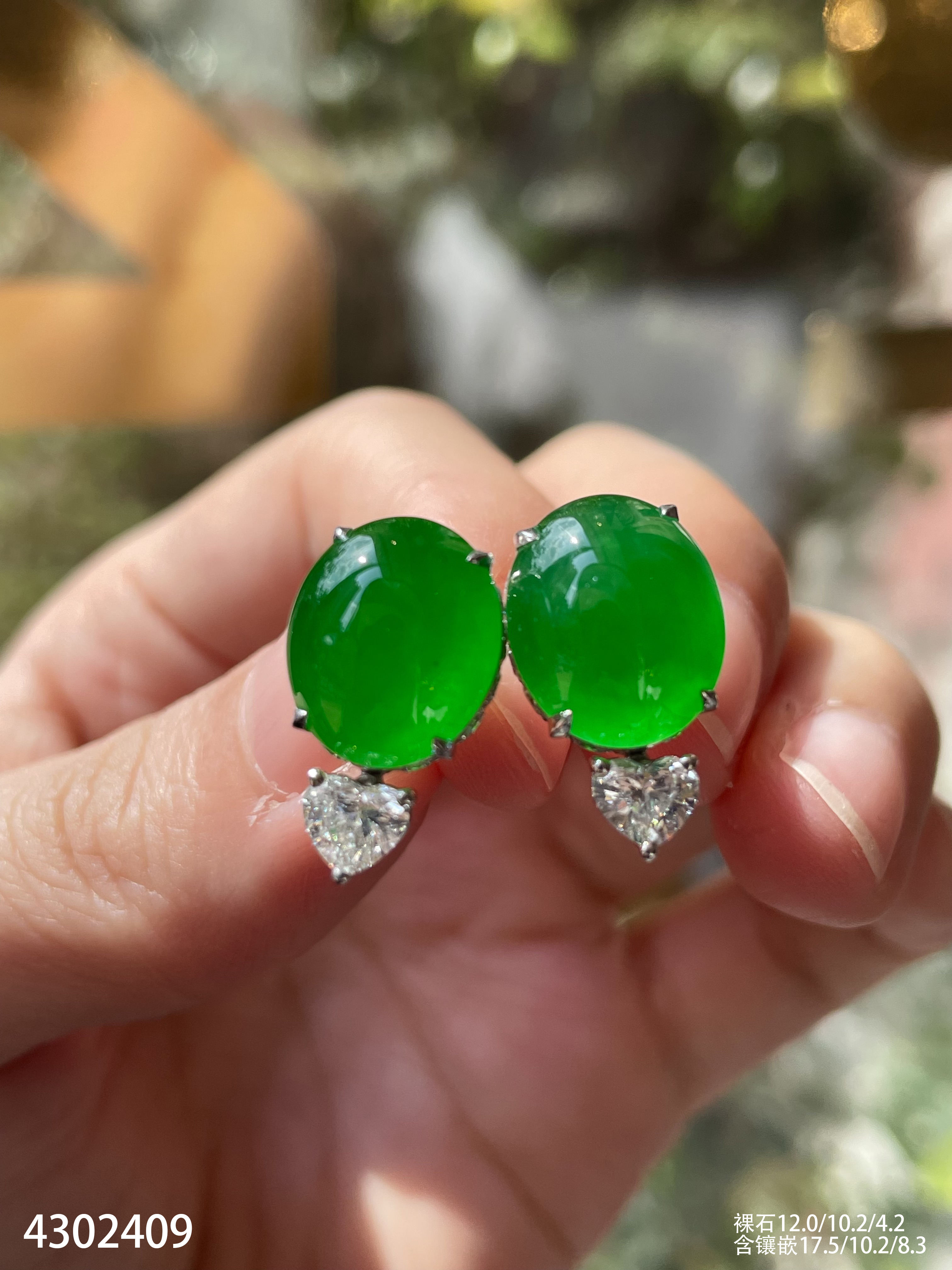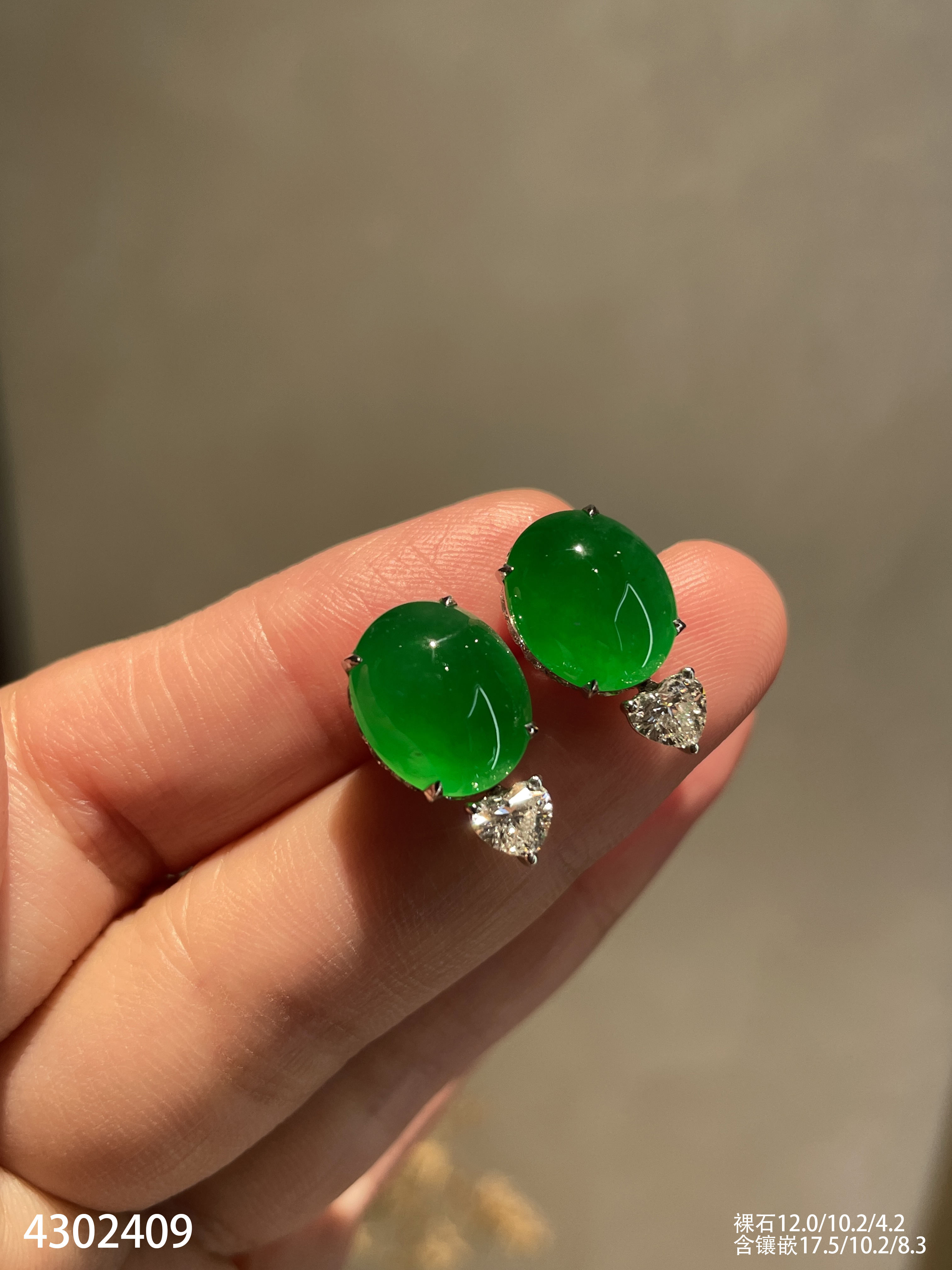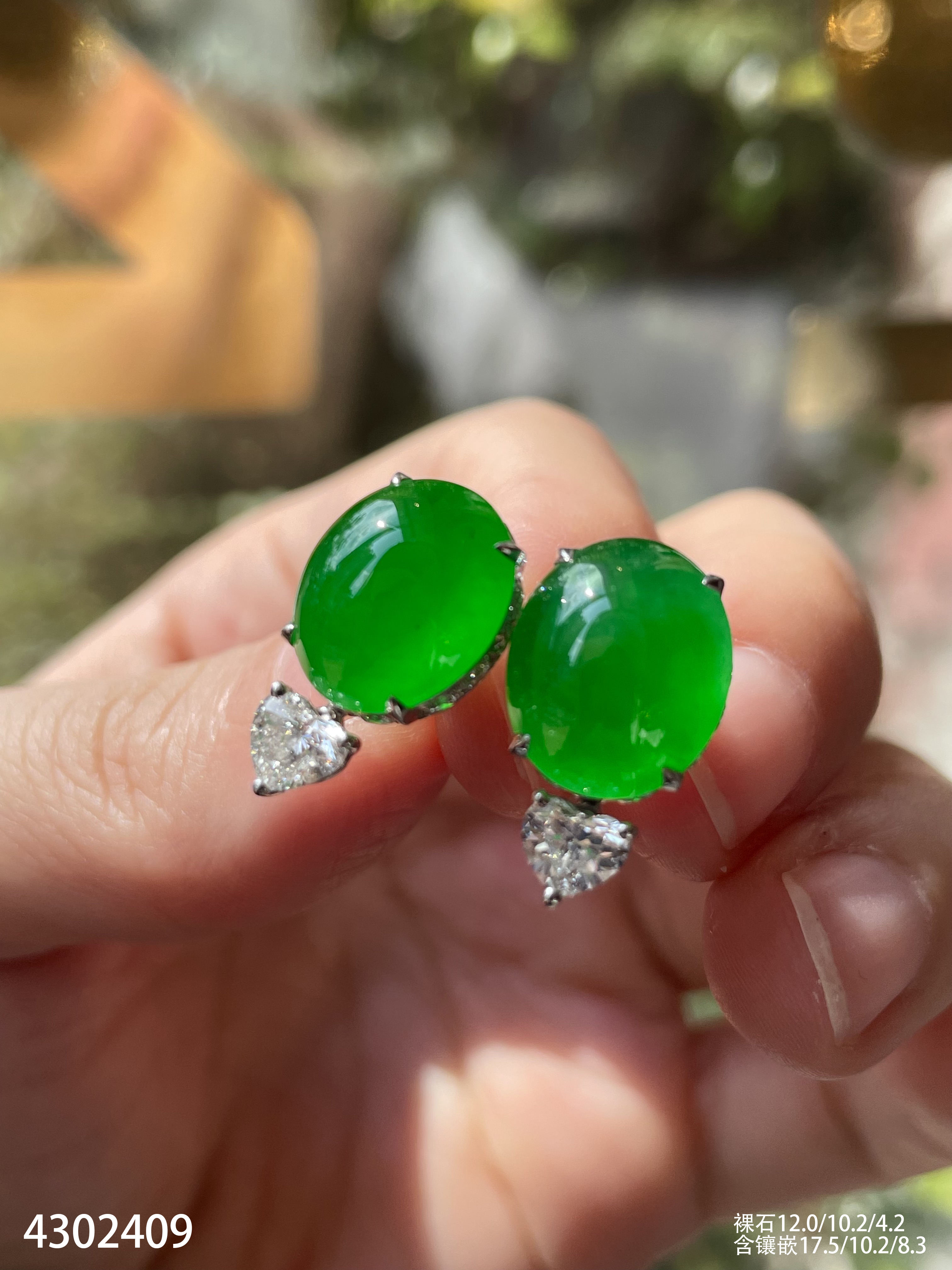 老坑玻璃种帝王绿蛋面耳钉【4302409】具体价格微信咨询