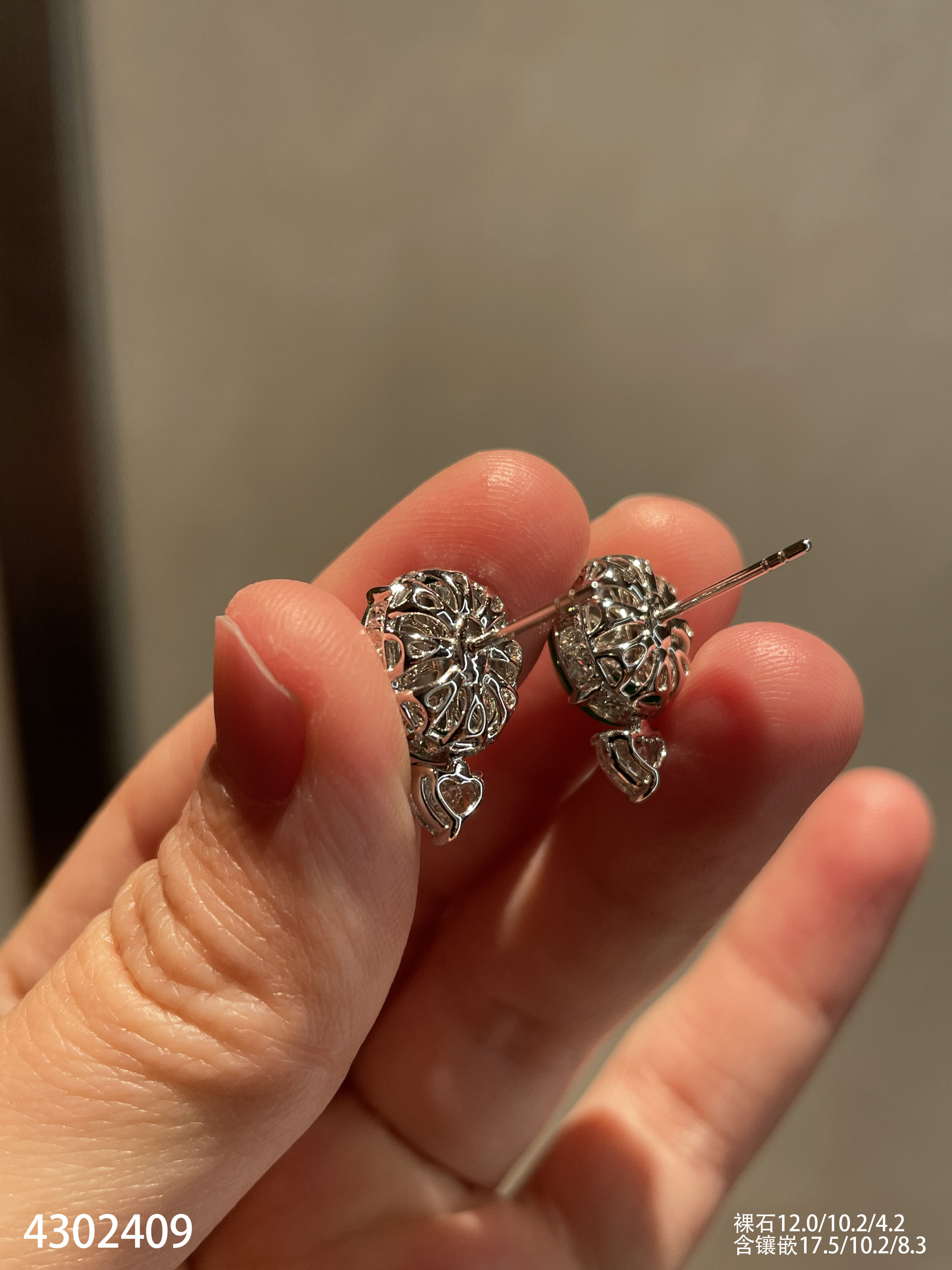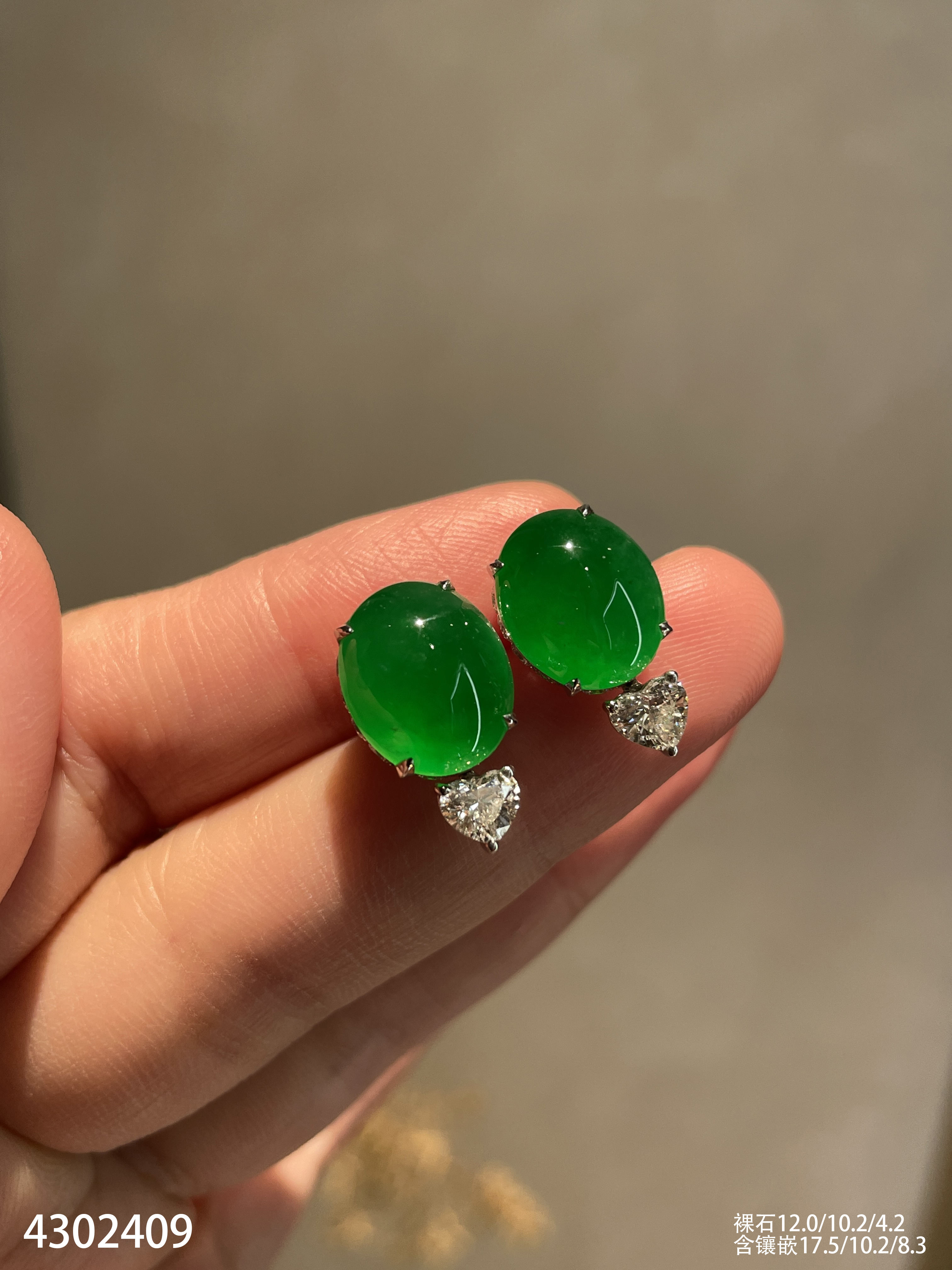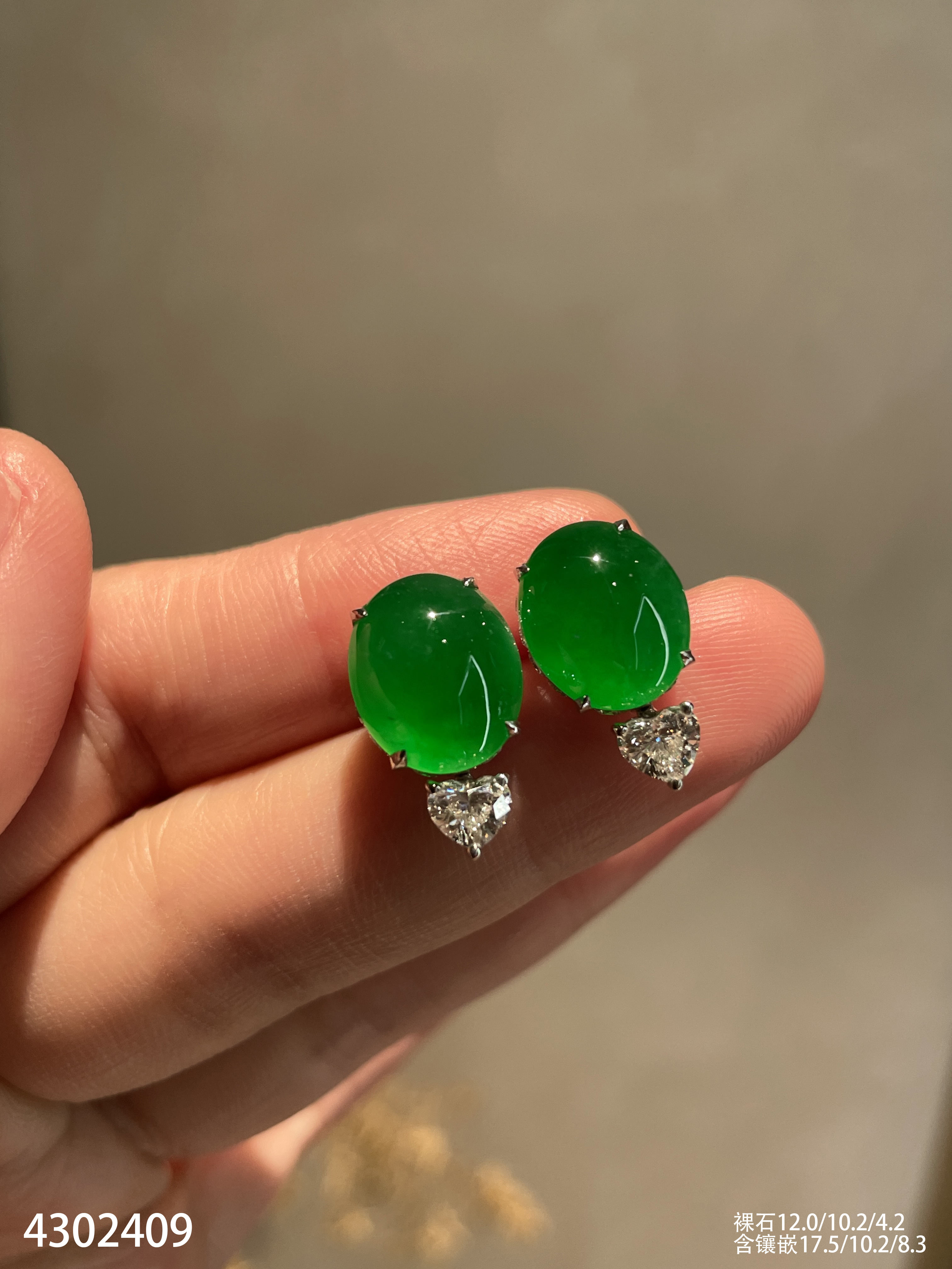 老坑玻璃种帝王绿蛋面耳钉【4302409】具体价格微信咨询