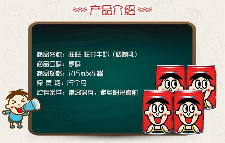 旺旺 旺仔牛奶 儿童牛奶早餐奶 营养健康美味(铁罐装4合1) 原味 145ml*4