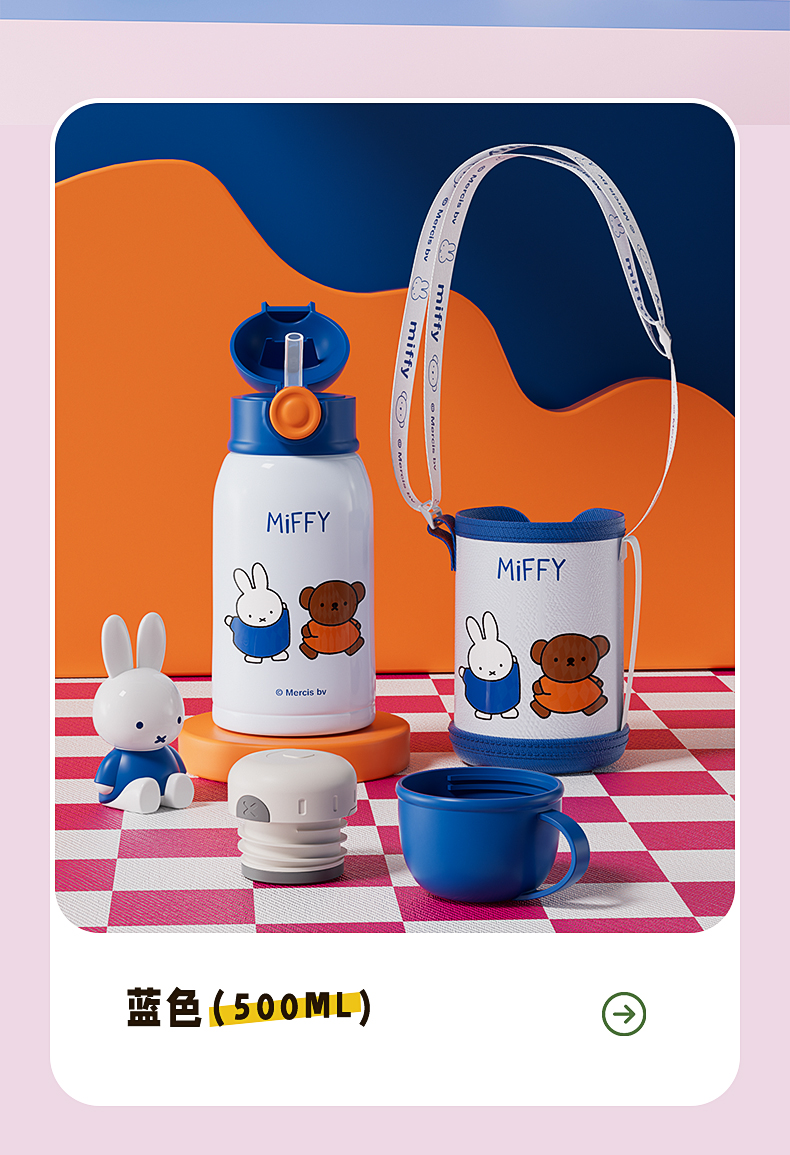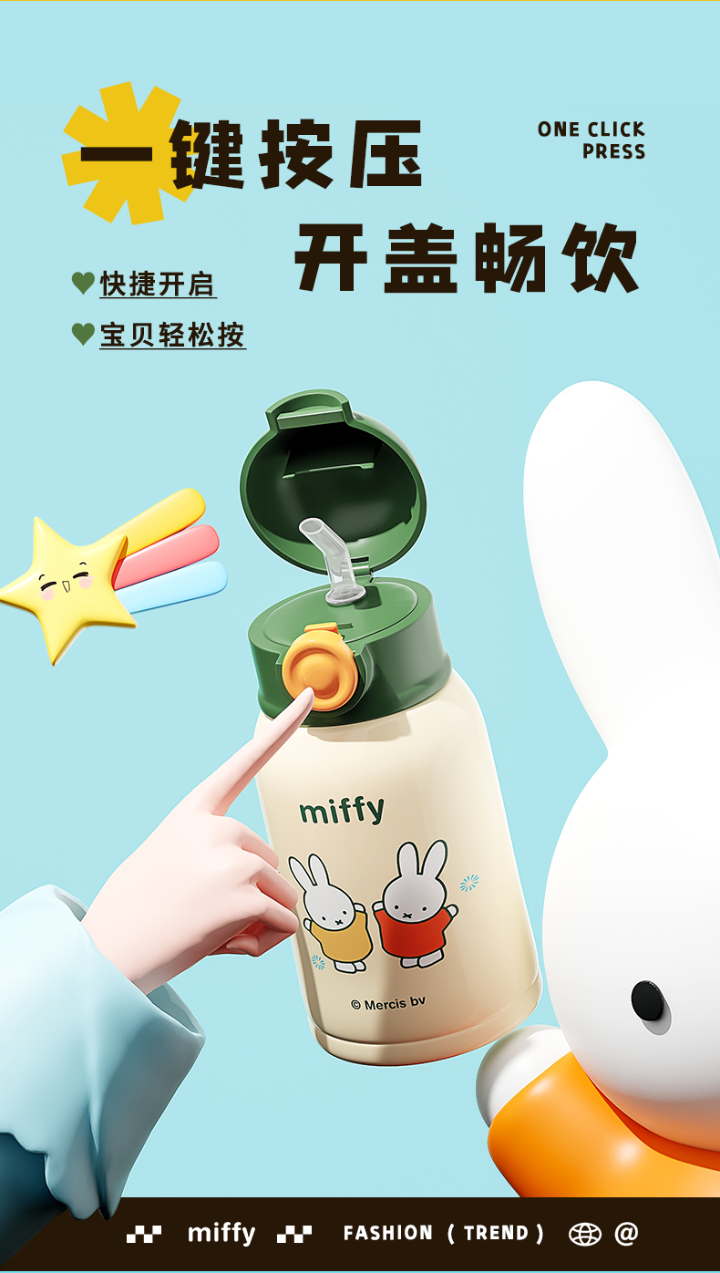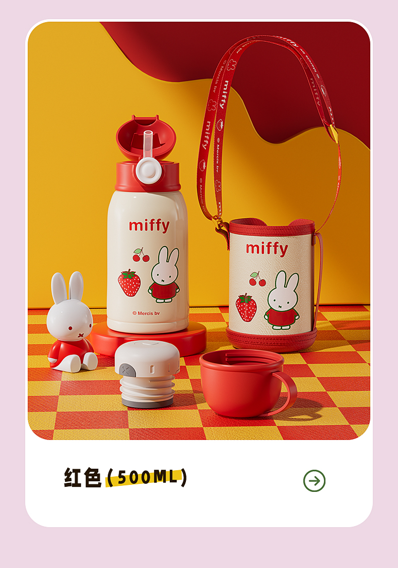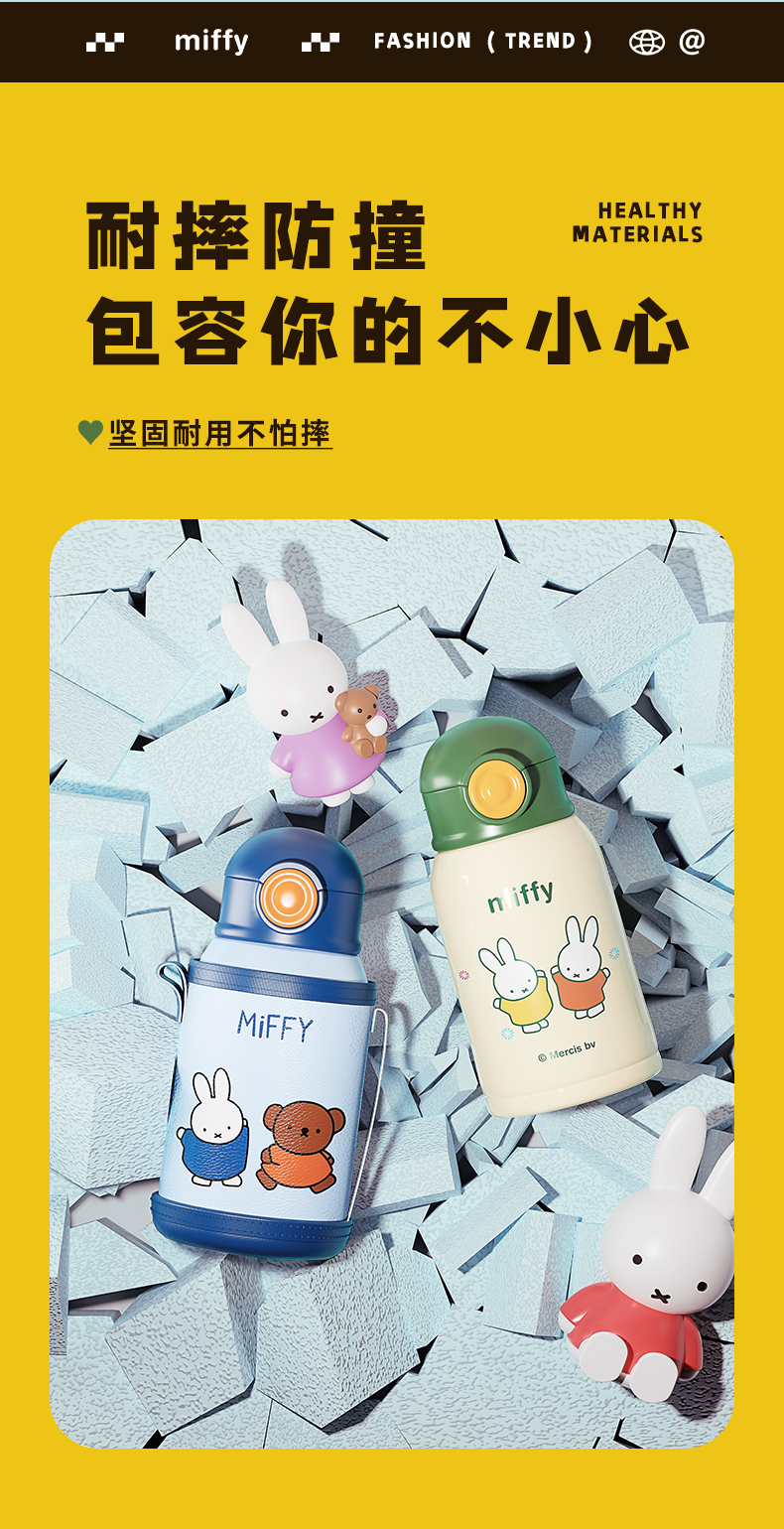 米菲Miffy儿童保温杯316吸管杯一杯三盖男女水杯子幼儿园小学生上学专用保温水壶带杯套