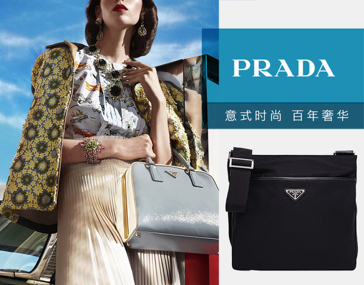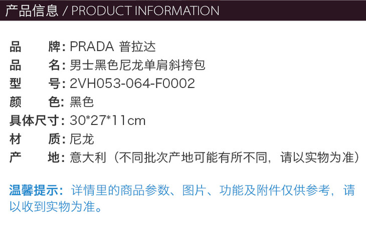 Prada 普拉达 黑色织物男士挎包 2VH053-064-F0002JPY带授权招加盟代理