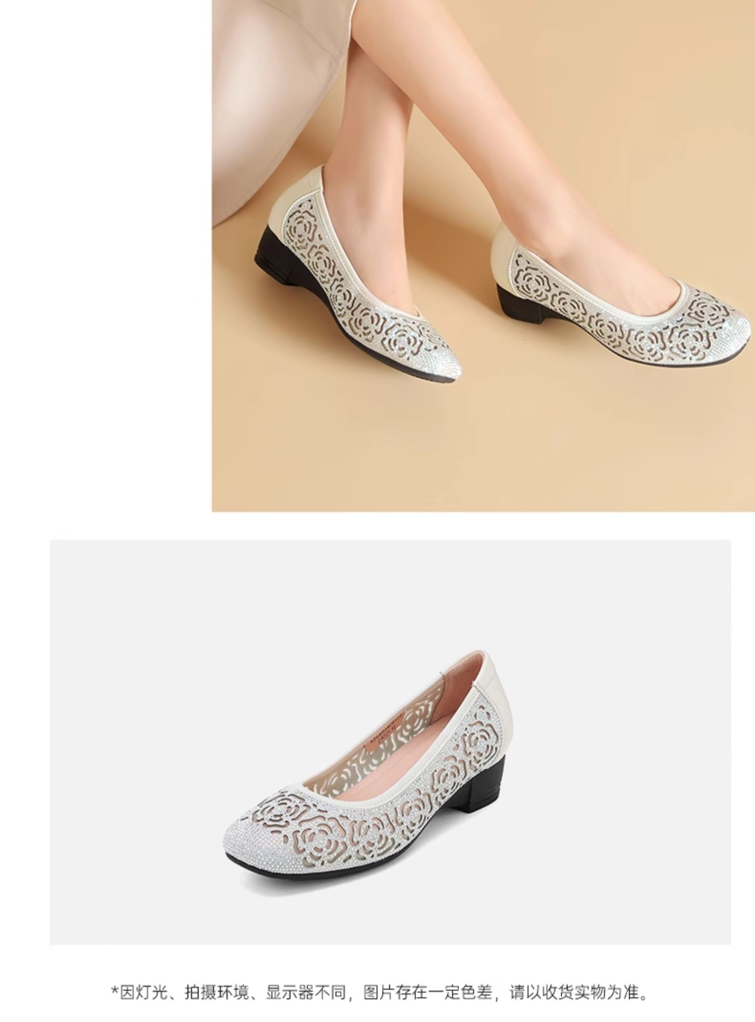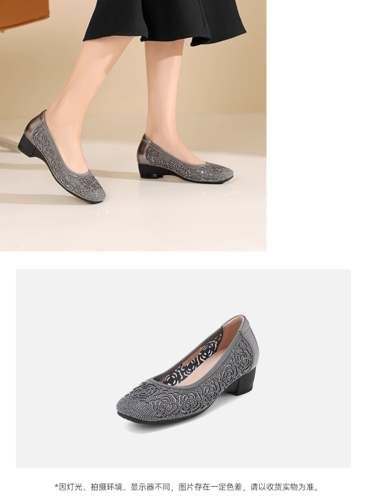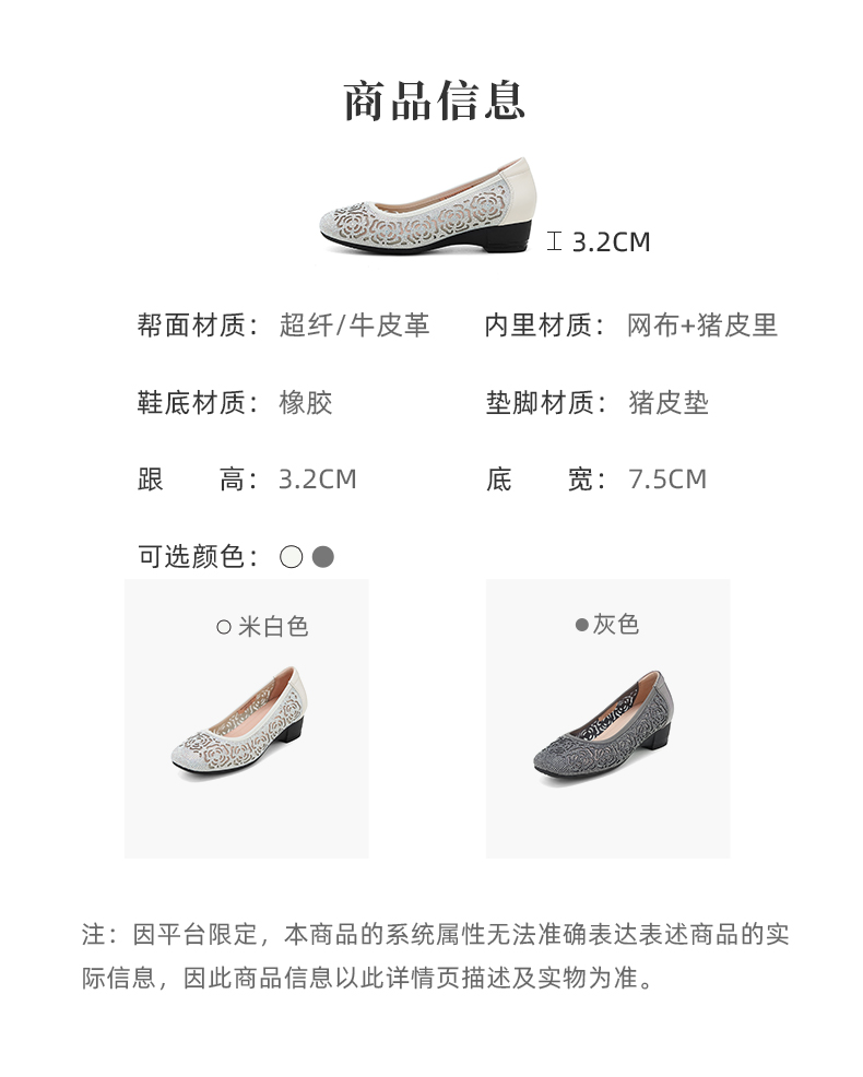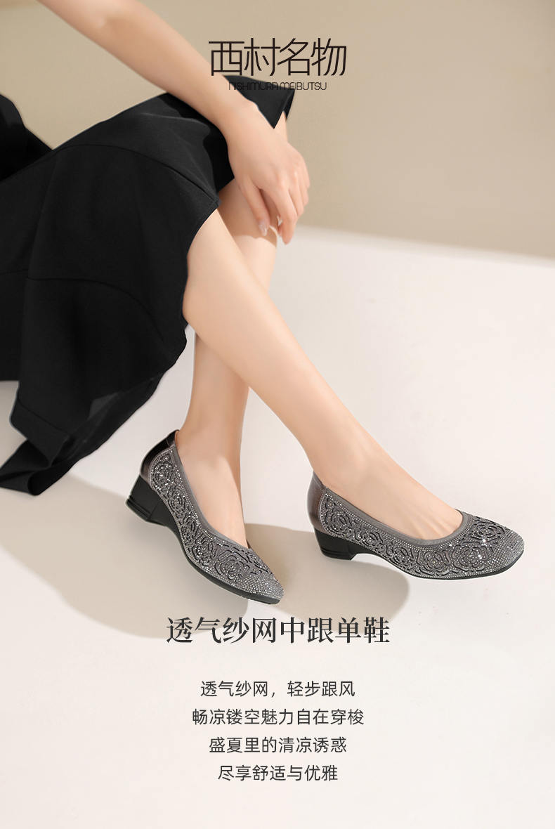 西村名物2024夏季新品透气纱网中跟软底牛皮浅口单鞋女鞋休闲鞋X24AH14061
