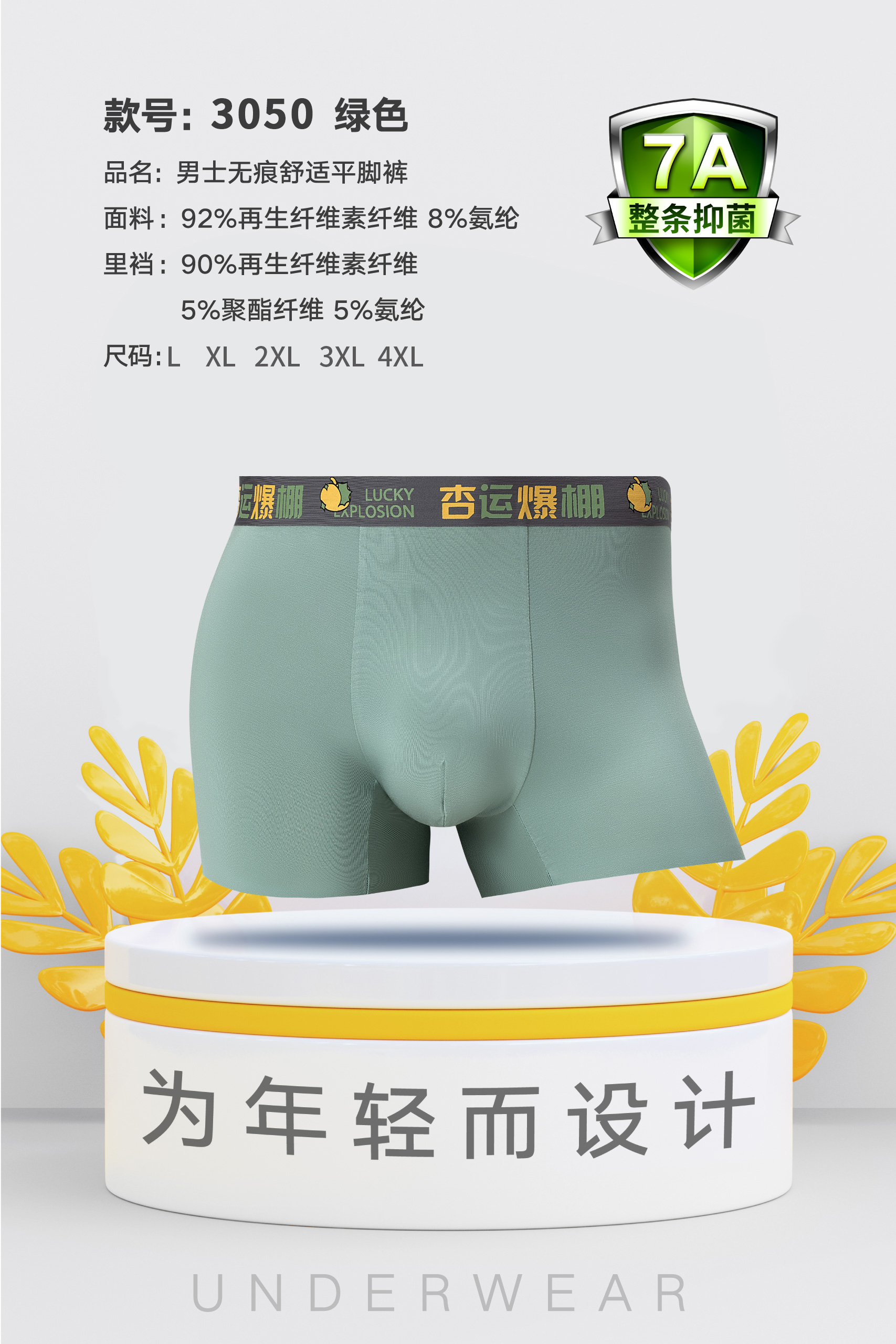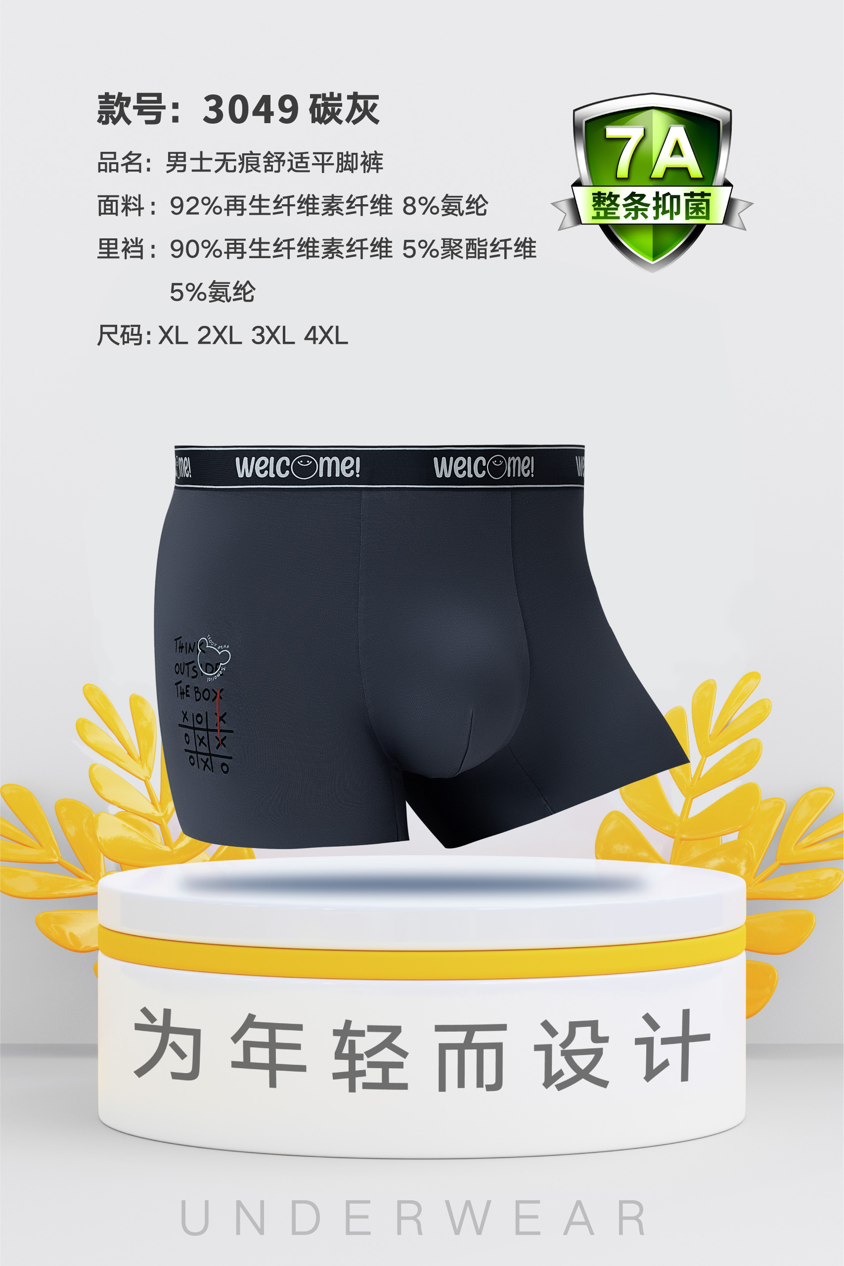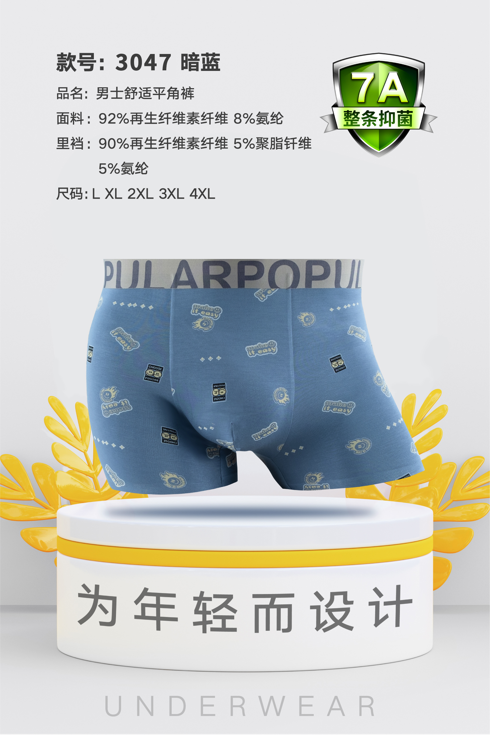 男士莫代尔腰头撞色无痕内裤时尚舒适3044/3045/3046/3047/3048/3049/3050
