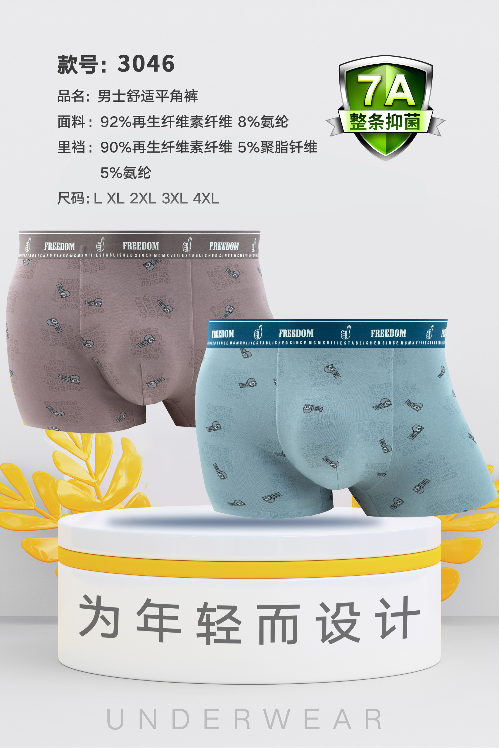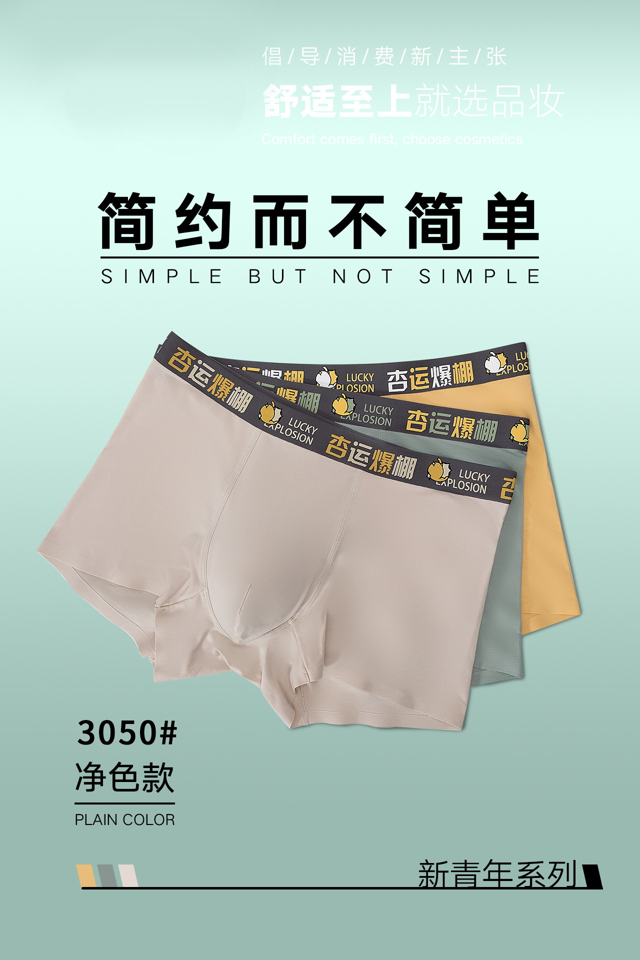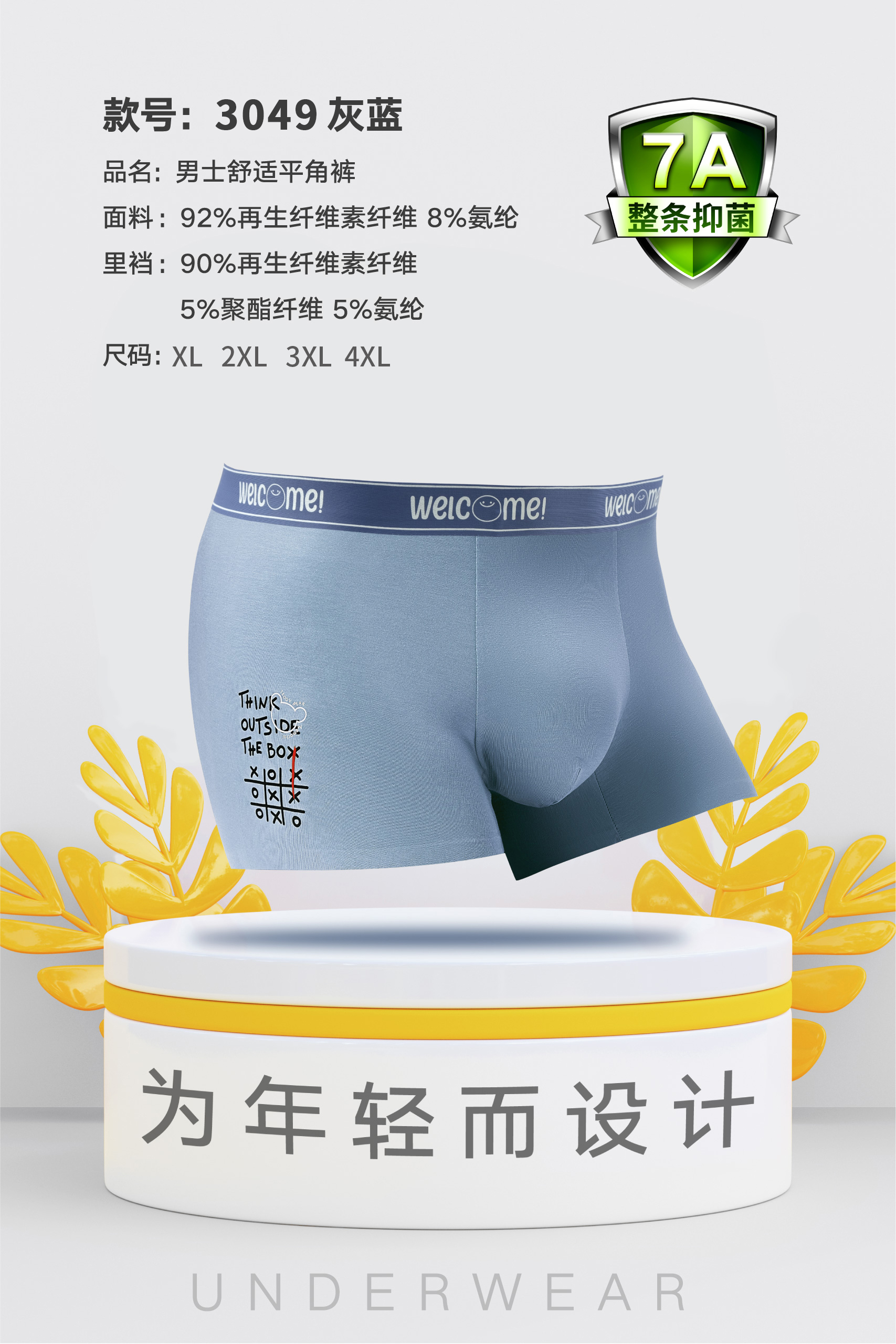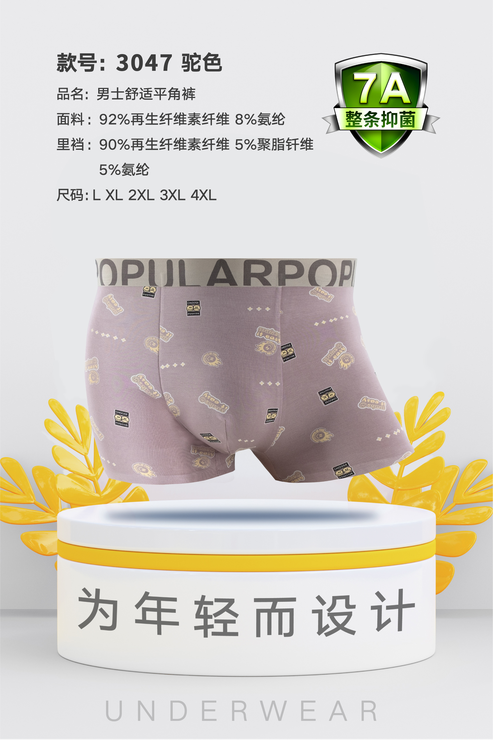 男士莫代尔腰头撞色无痕内裤时尚舒适3044/3045/3046/3047/3048/3049/3050