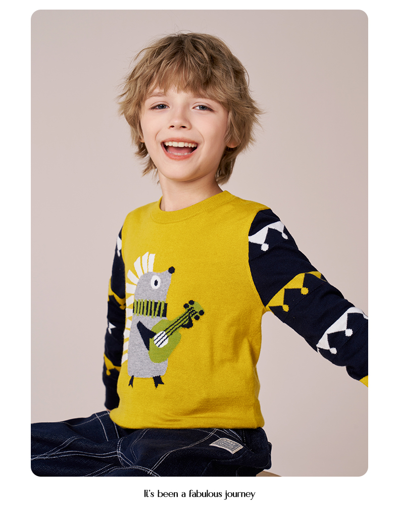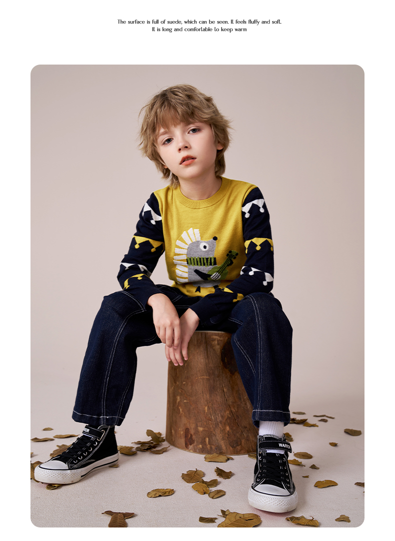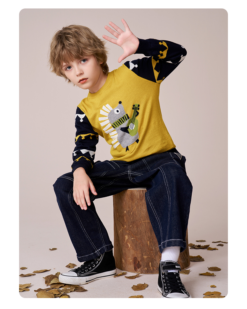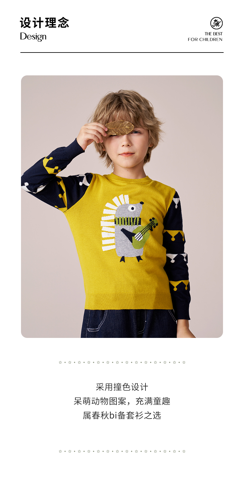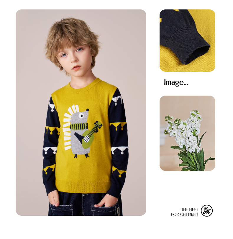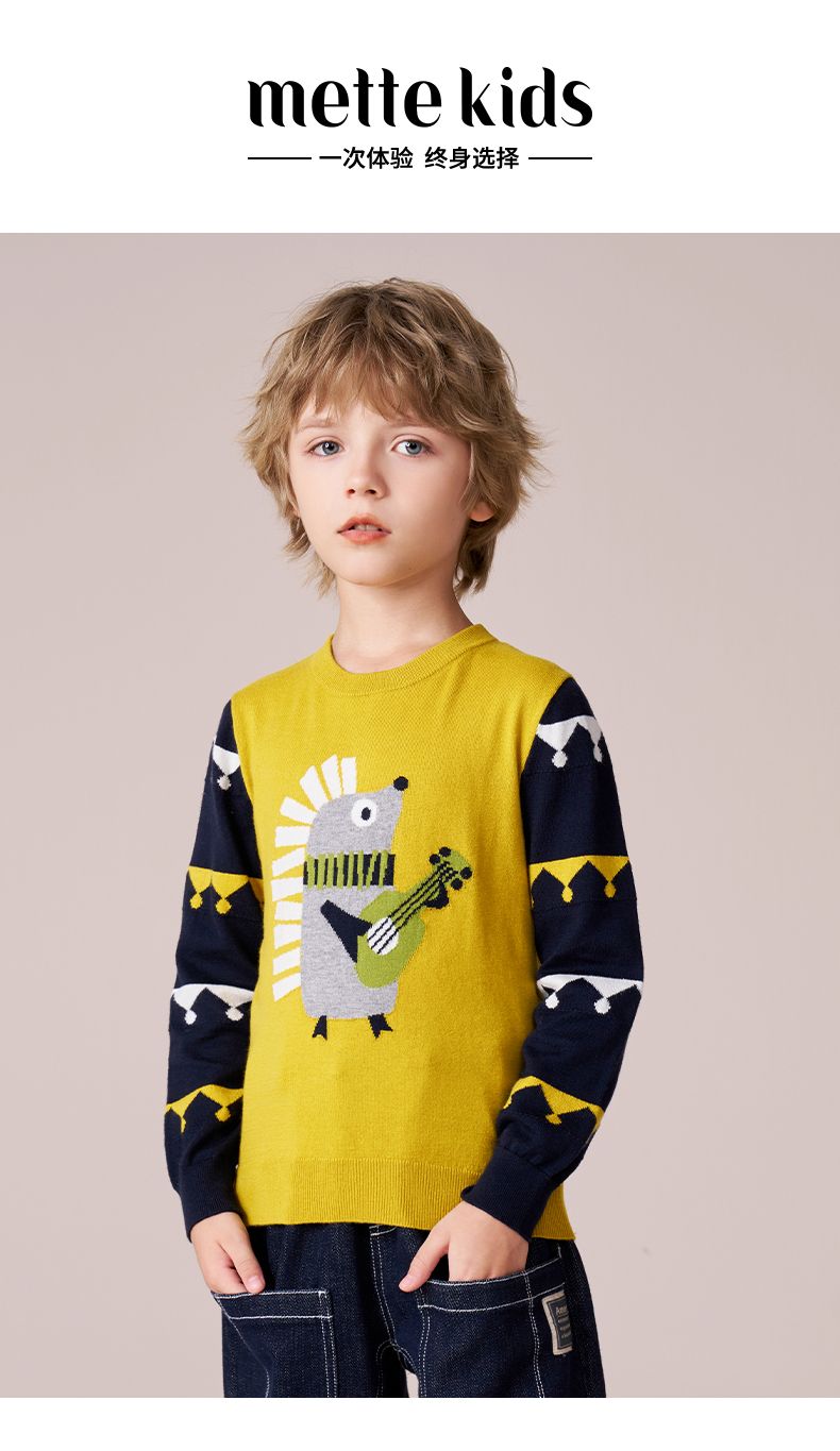 mettekids男童针织衫秋冬新款卡通打底衫儿童休闲圆领棉羊绒毛衣