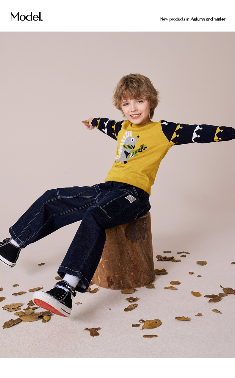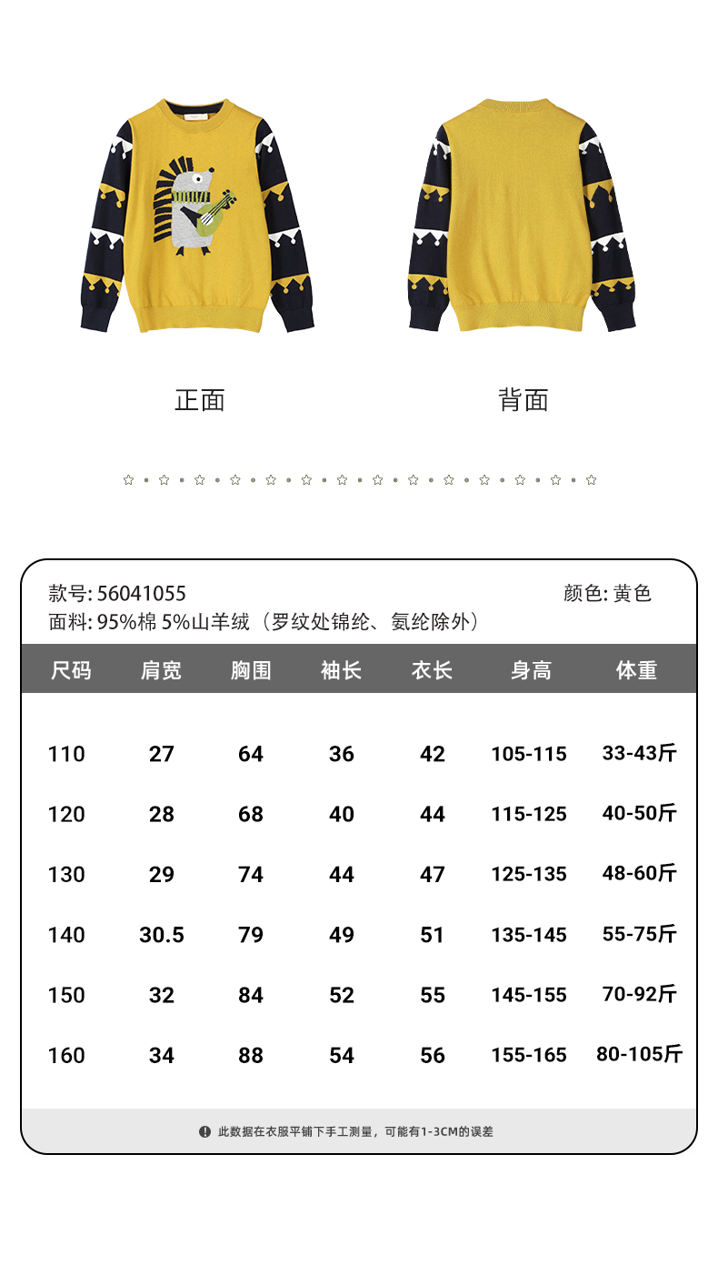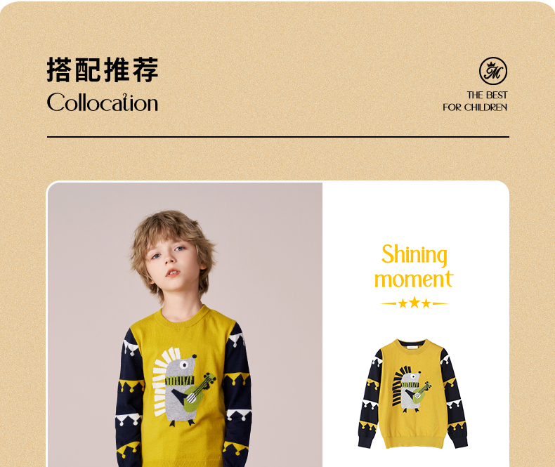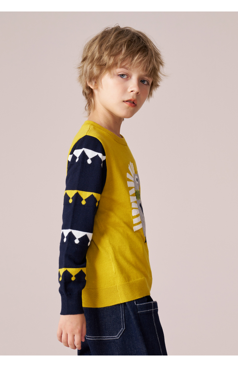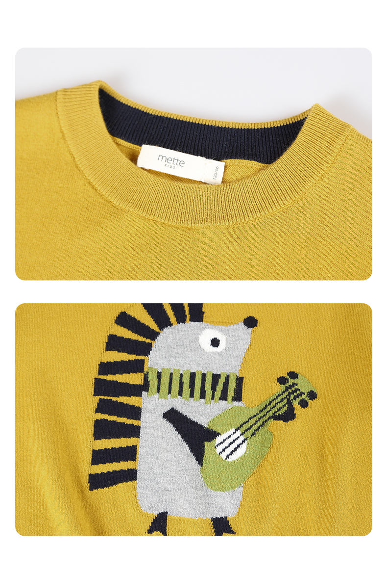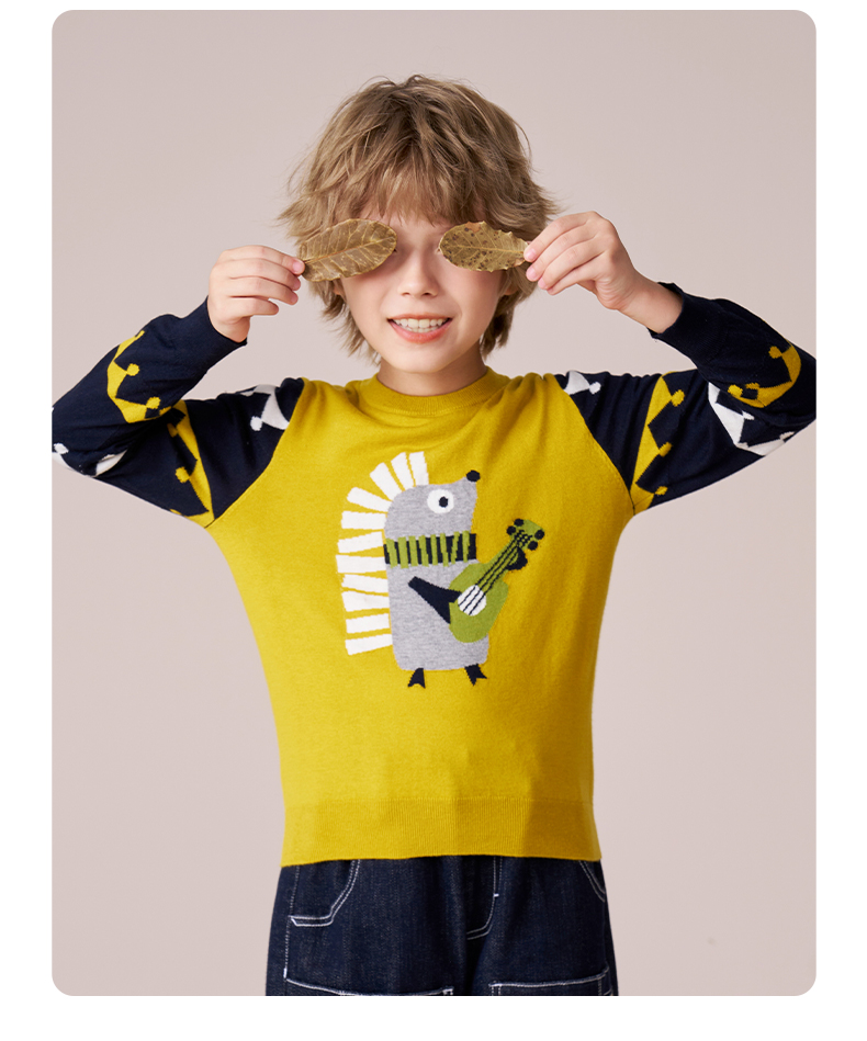 mettekids男童针织衫秋冬新款卡通打底衫儿童休闲圆领棉羊绒毛衣