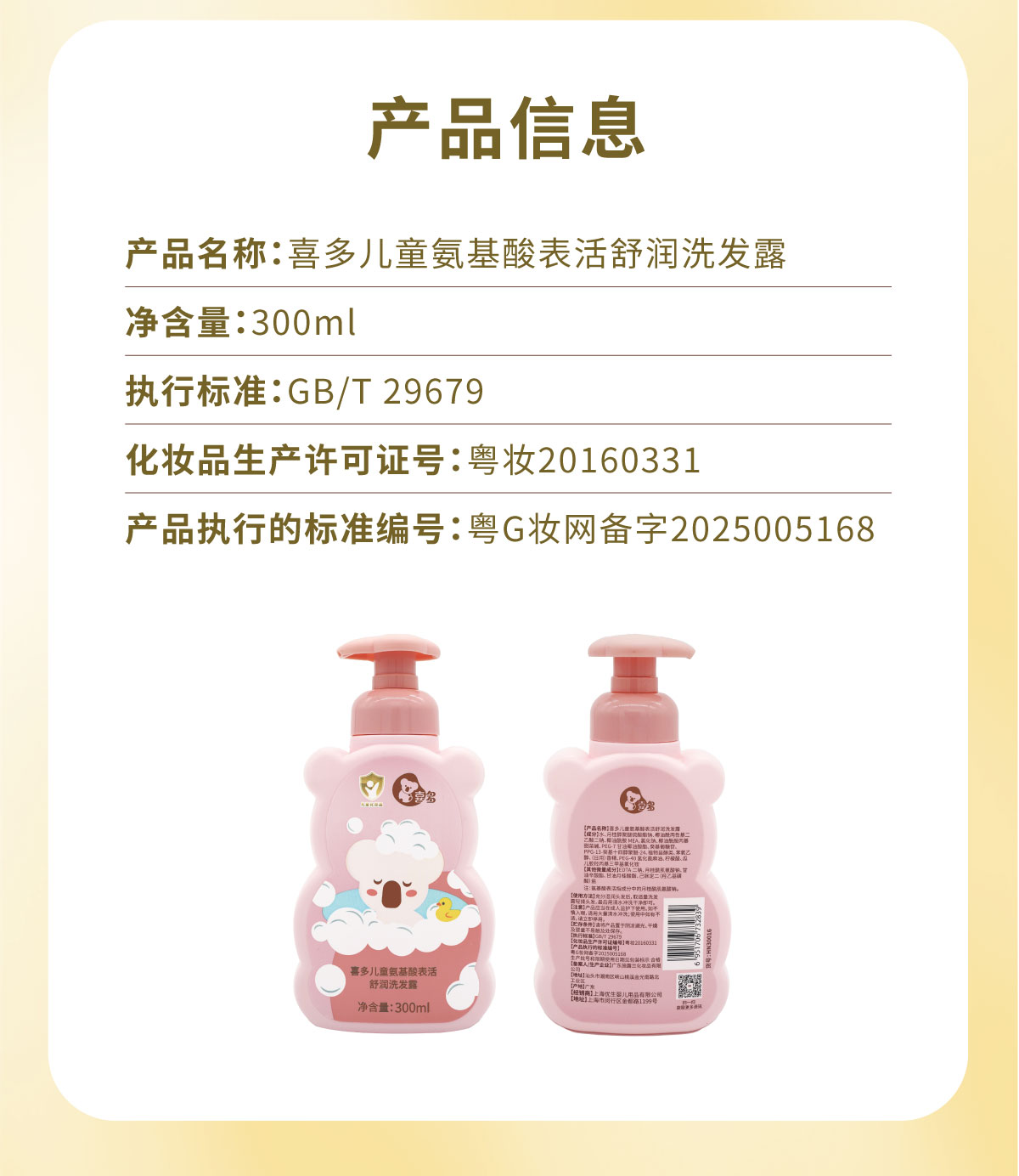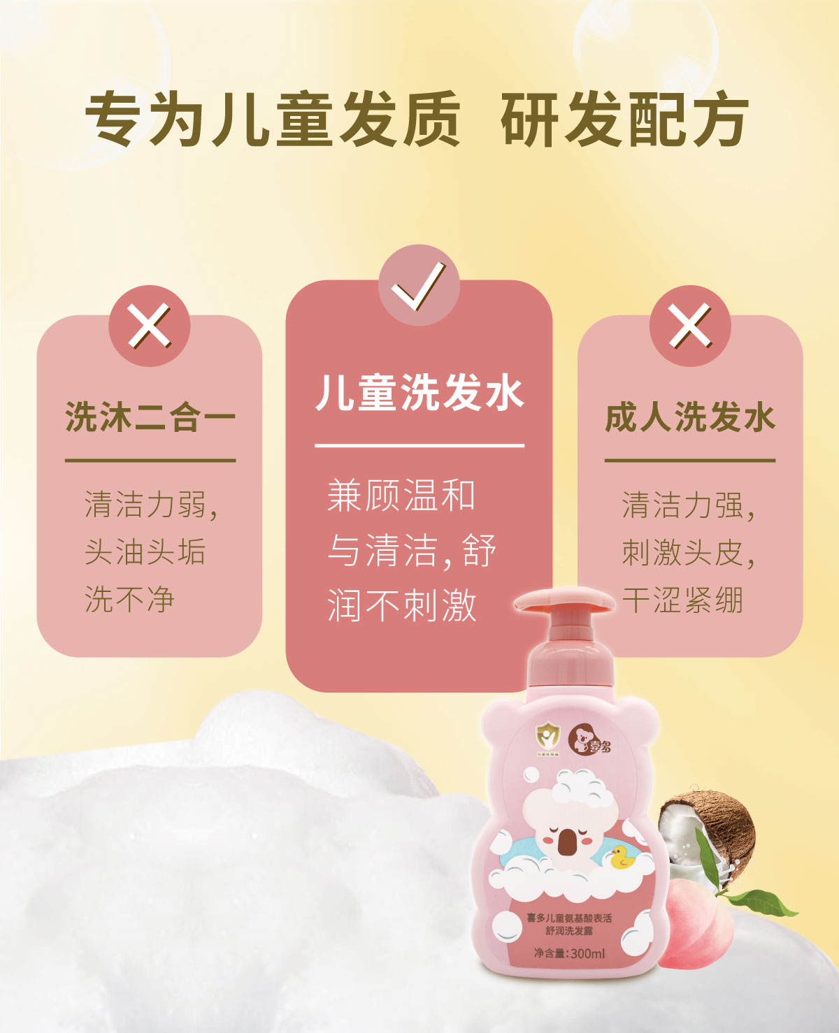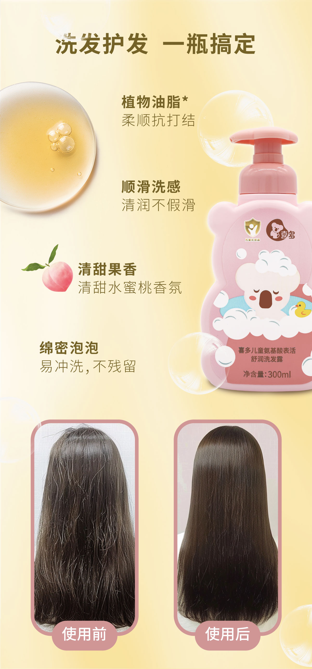 【喜多】儿童氨基酸表活舒润洗发露300ml