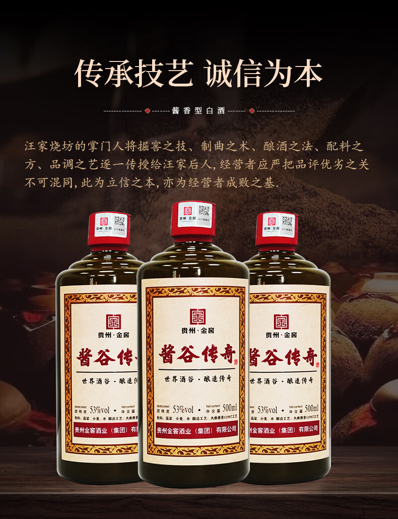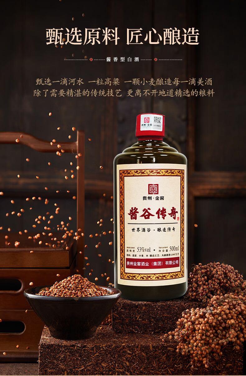 53度金窖酱谷传奇V6(光瓶)酱香型白酒1*6*500ML