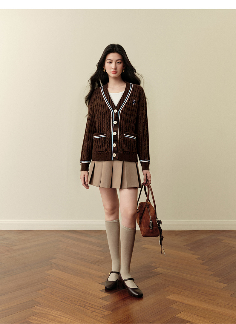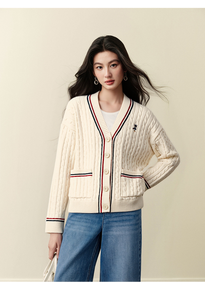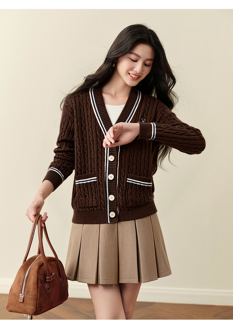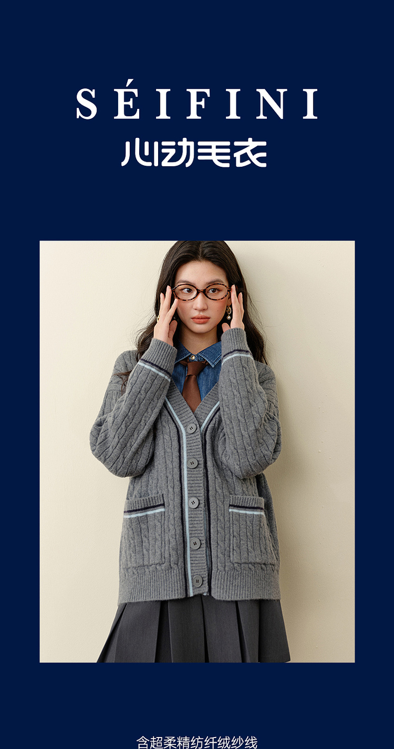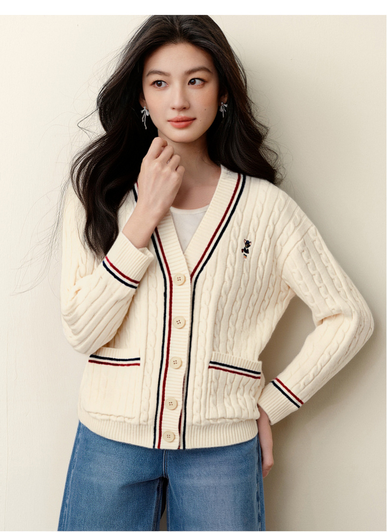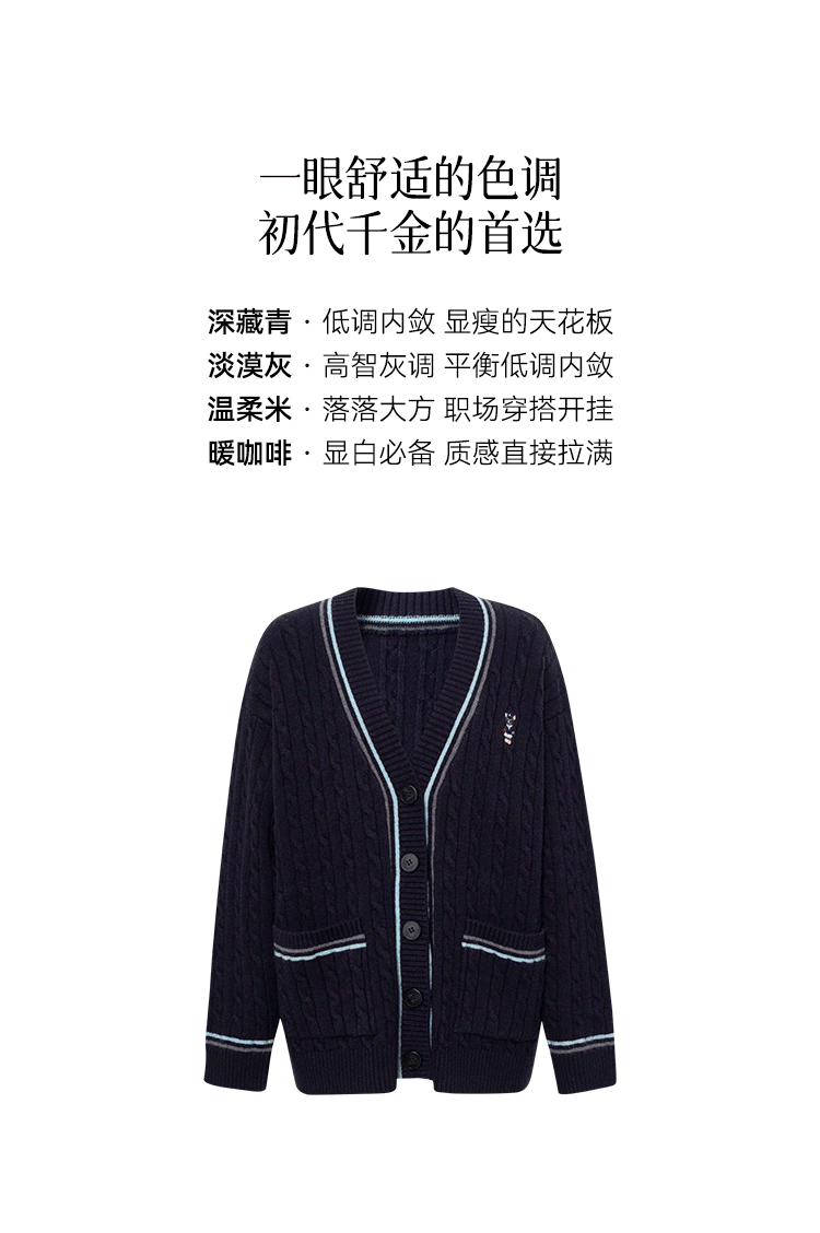 【严选】孟子义代言诗凡黎学院风V领针织开衫2025冬新款刺绣绞花毛衣外套7G9333101