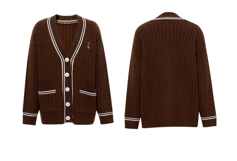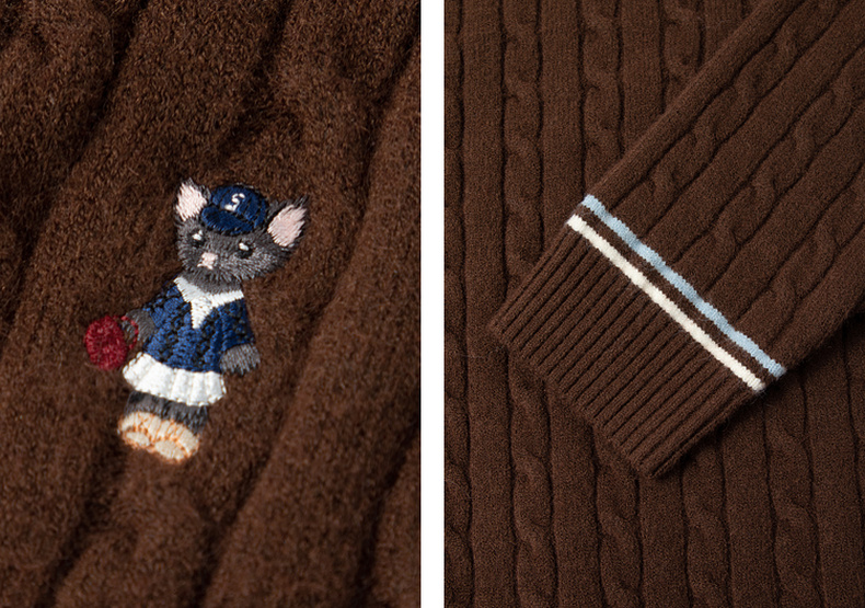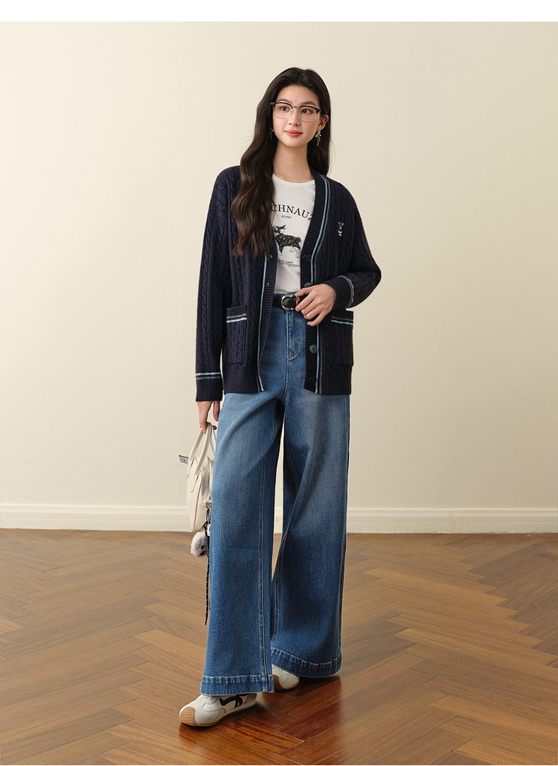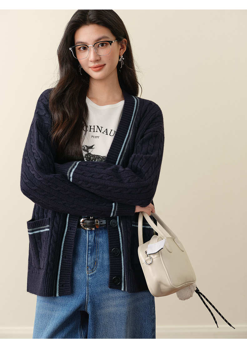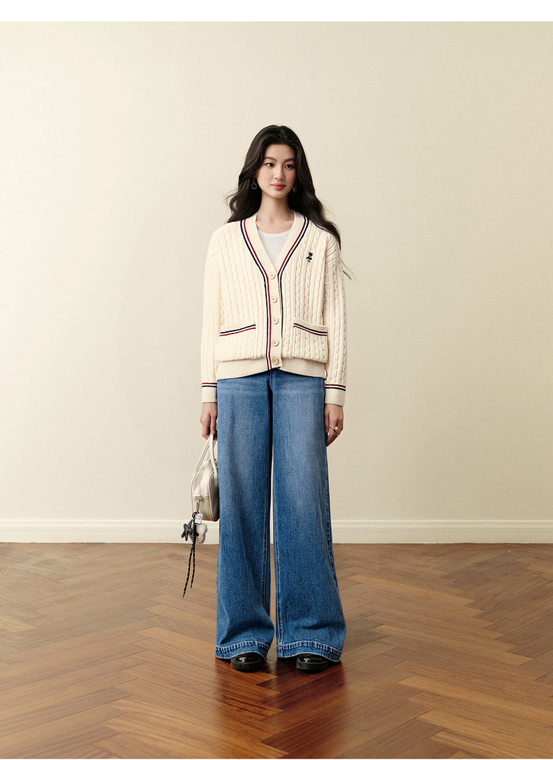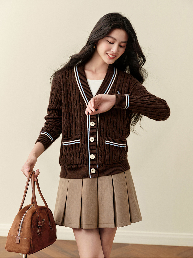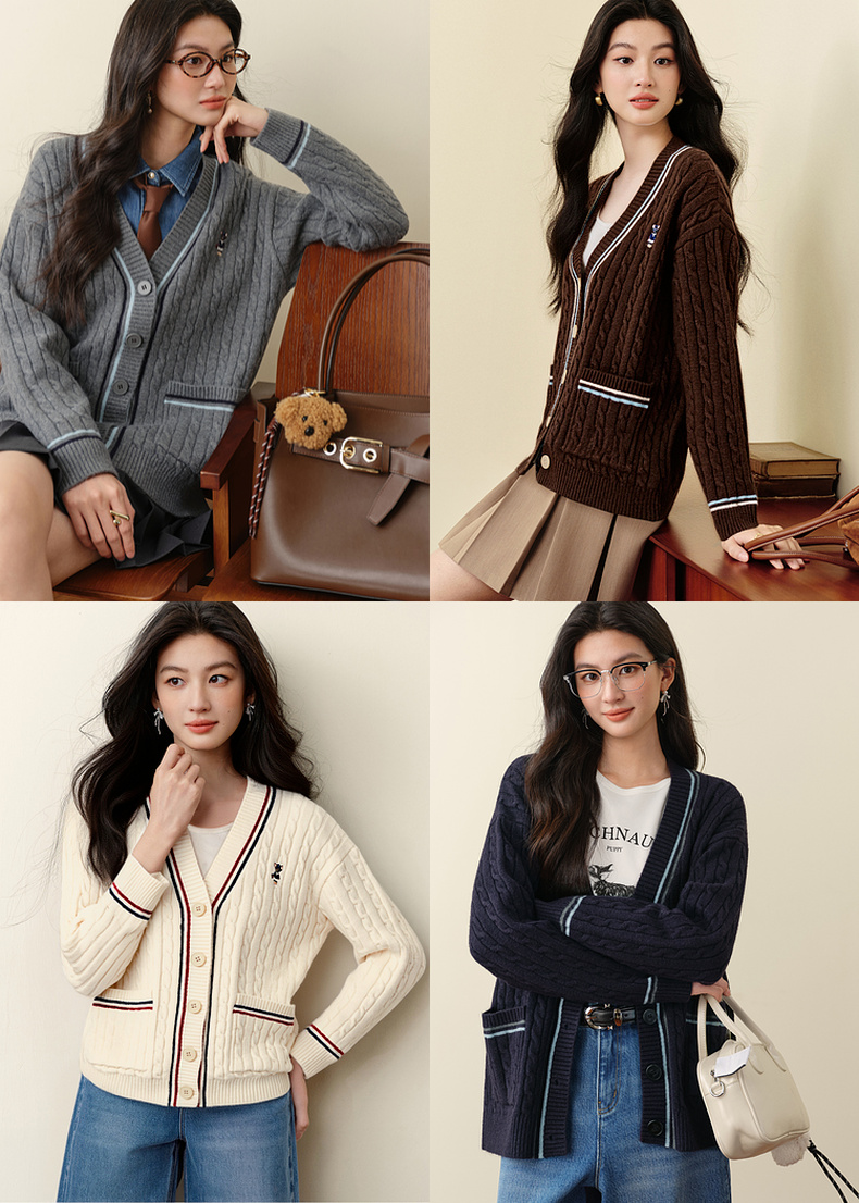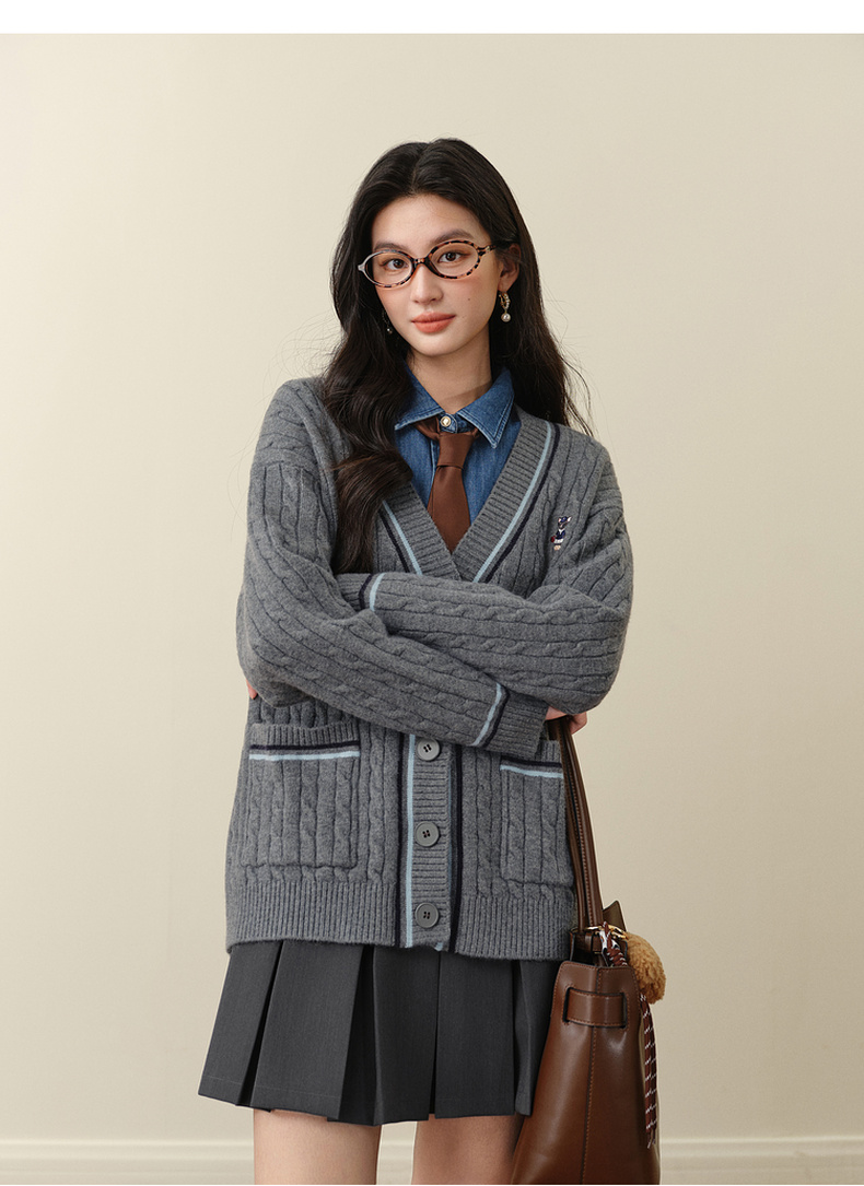 【严选】孟子义代言诗凡黎学院风V领针织开衫2025冬新款刺绣绞花毛衣外套7G9333101