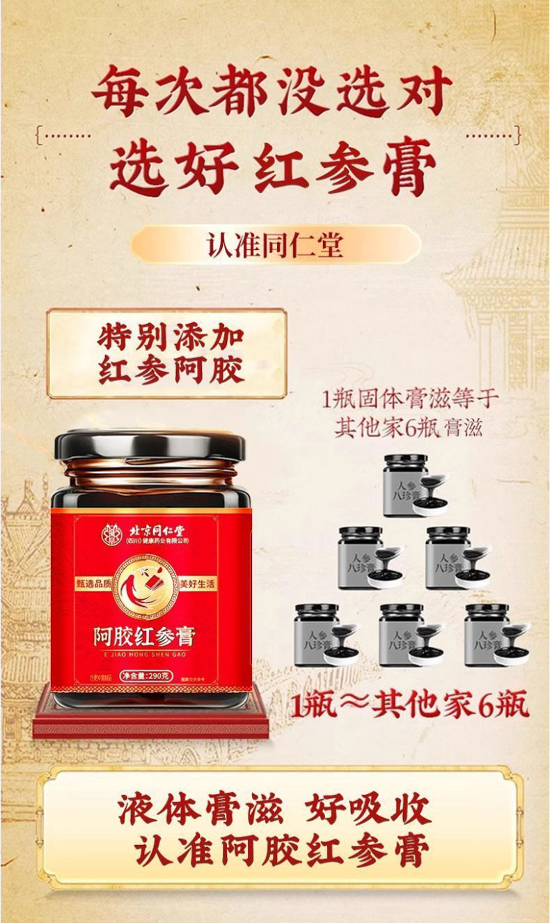 红参膏 北京同仁堂红参膏女性滋补养生膏面若桃花喝出来高浓缩红参