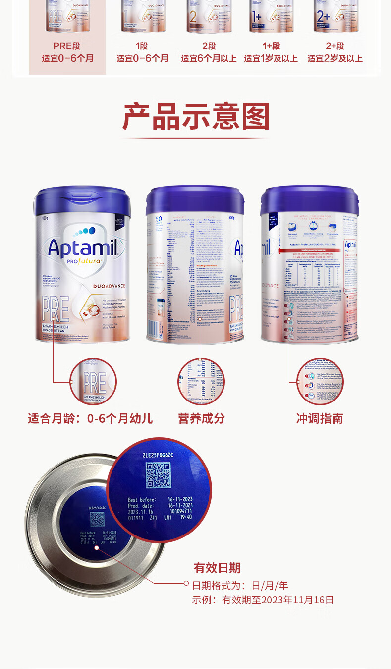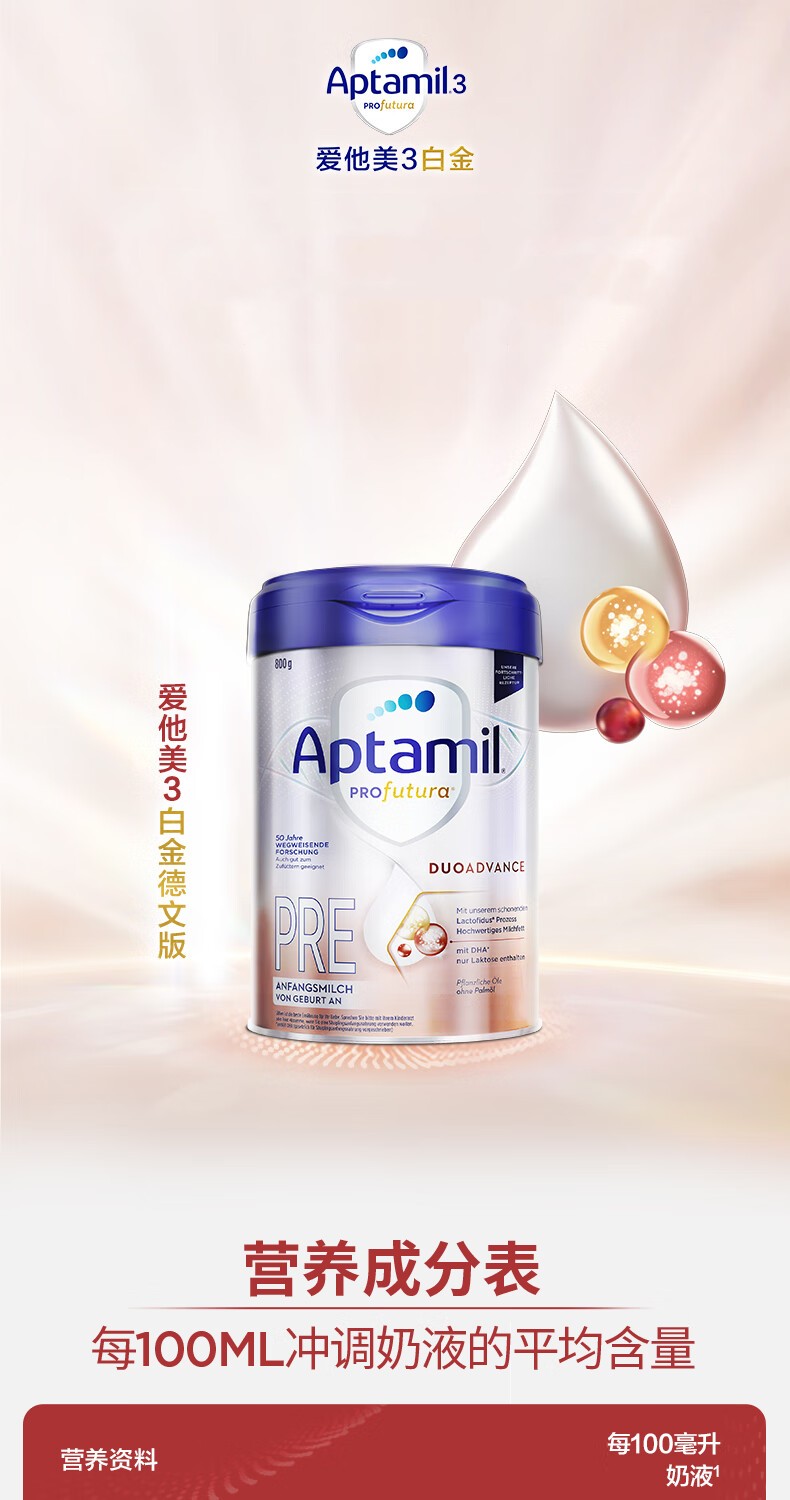 【跨境商品】(温州仓发)德国Aptamil爱他美婴儿配方奶粉白金版Pre段800g0-6个月()超过6罐分开下单) | 报关后不支持退换货,介意慎拍
