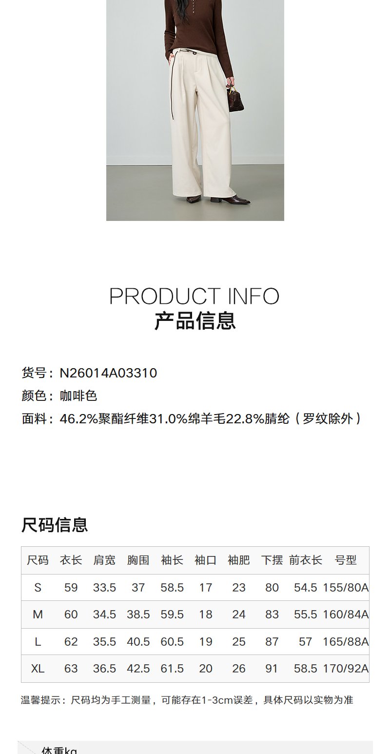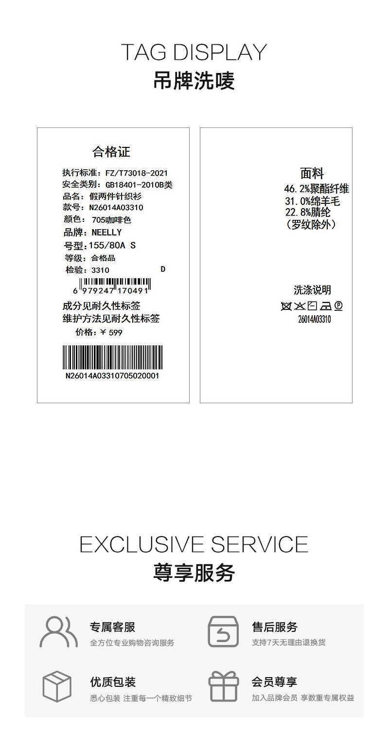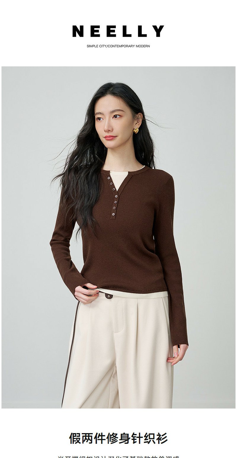 NEELLY纳俪商场同款春季新款时尚修身假两件针织衫女显瘦休闲上衣N26014A03310