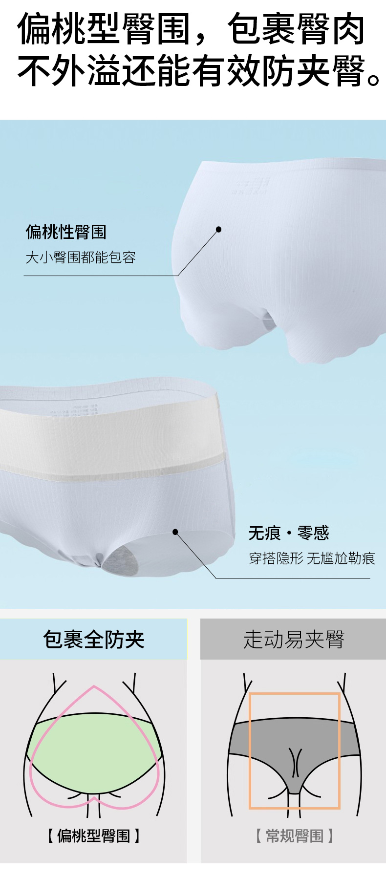 爱帝3条装无痕女士内裤隐形透气包臀蝴蝶裤
